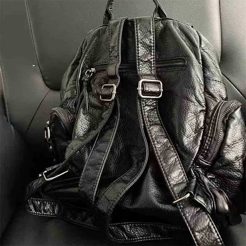 Kylethomasw Vintage Cross Y2k Backpack Women Retro Gothic Pu Leather Casual Black Backpacks Ladies Harajuku Large Capacity Mochila