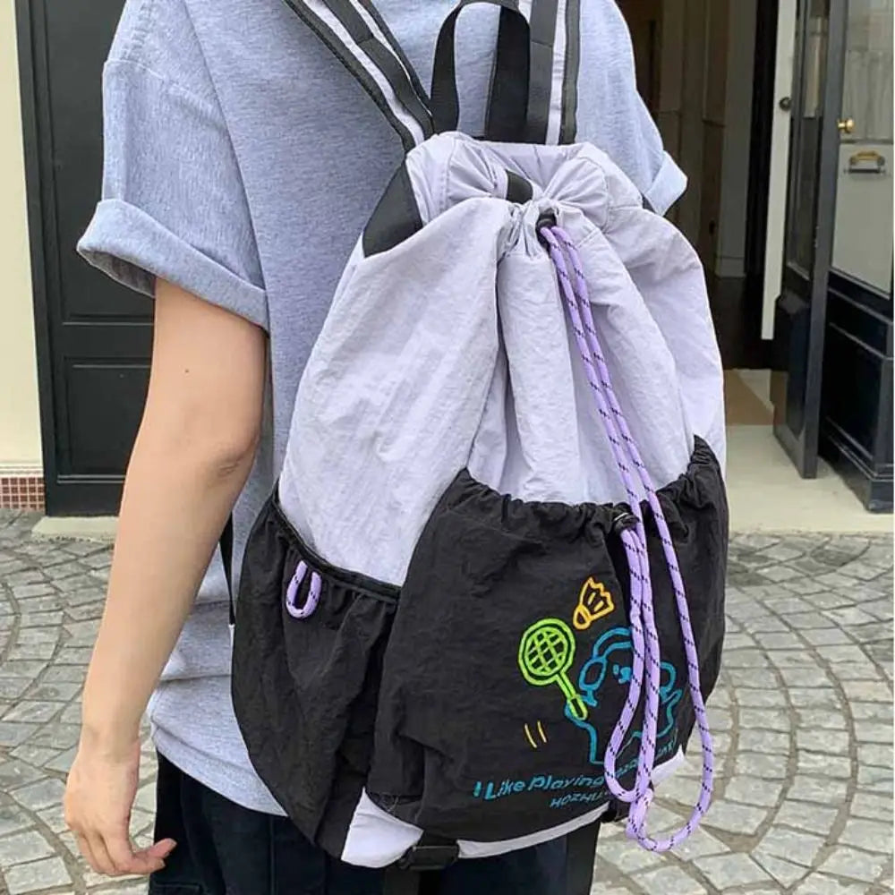 KYLETHOMASW - Cartoon Puppy Sport Racket Storage Backpack Lightweight Large Capacity Fitness Shoulder Bag Tennis Nylon Drawstring Fitness Bag