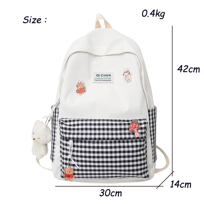 Kylethomasw Fashion Women Cute School Bag New Trendy Female College Plaid Backpack Lady Lattice Laptop Travel Backpack Book Girl Student Bag