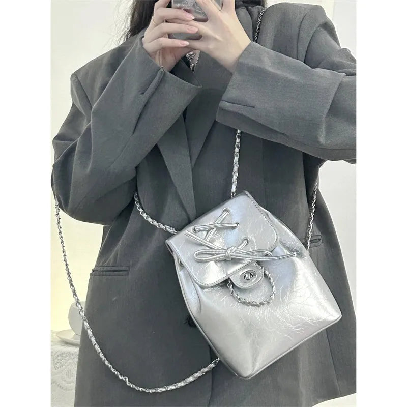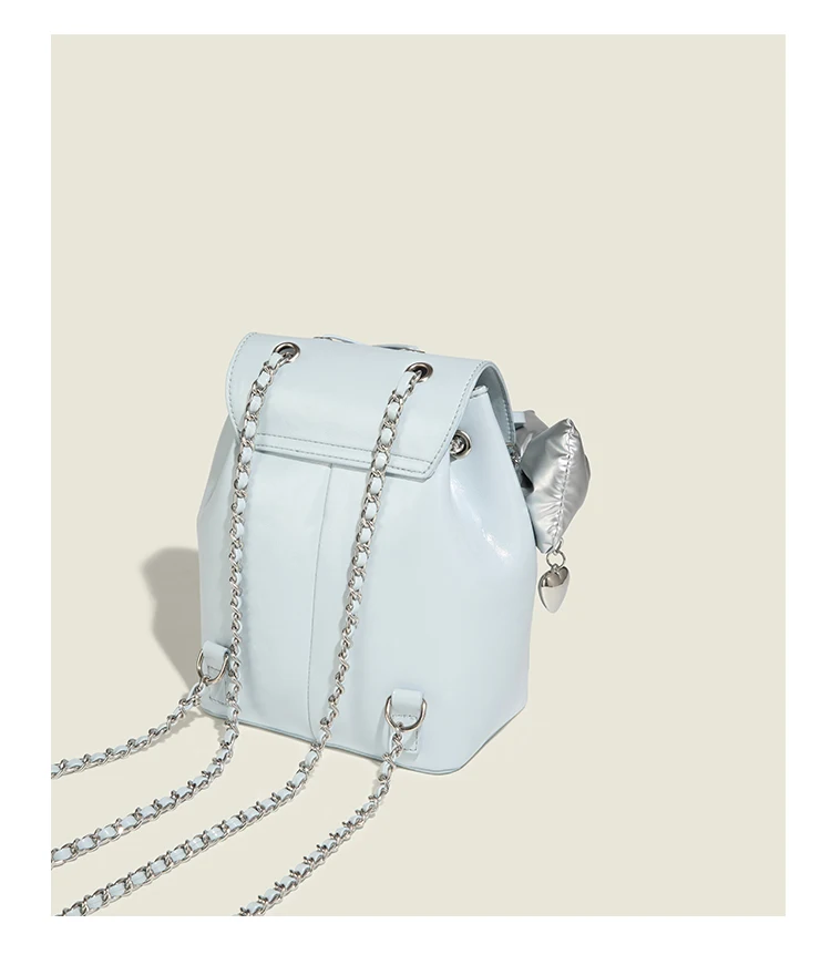 KYLETHOMASW - Harajuku Blue Mochila Women 2025 Vintage Leather Chain Bow Mini Backpacks Hot Girls Retro Fashionable Backpack Aesthetic