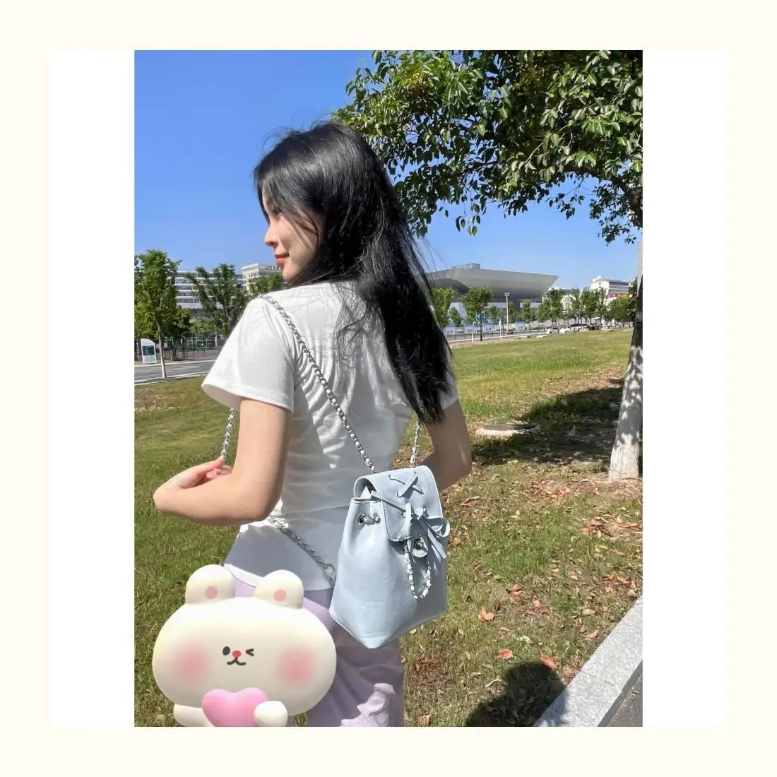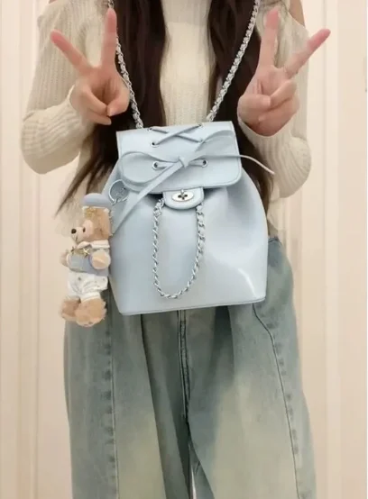 KYLETHOMASW  -  Harajuku Blue Mochila Women 2025 Vintage Leather Chain Bow Mini Backpacks Hot Girls Retro Fashionable Backpack Aesthetic