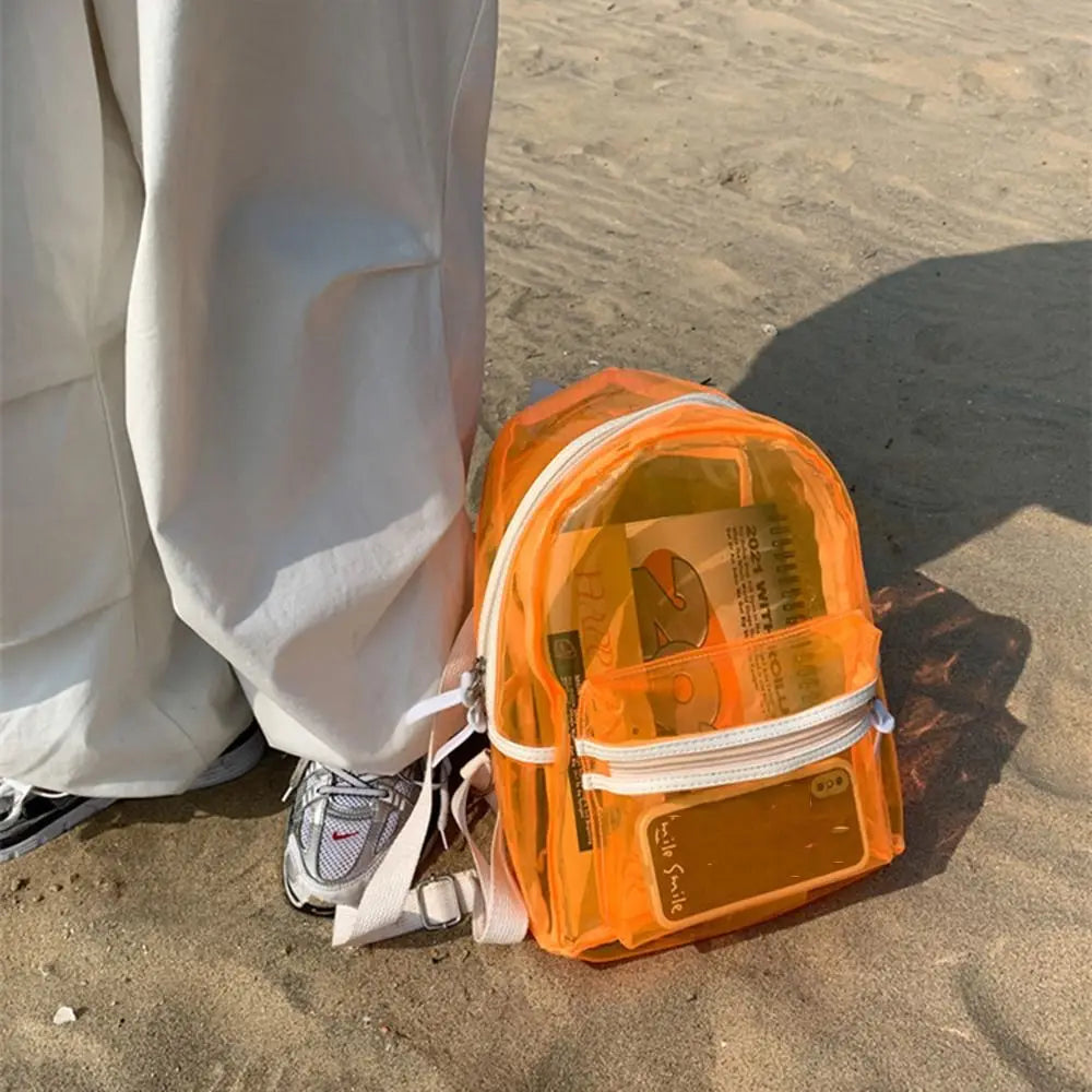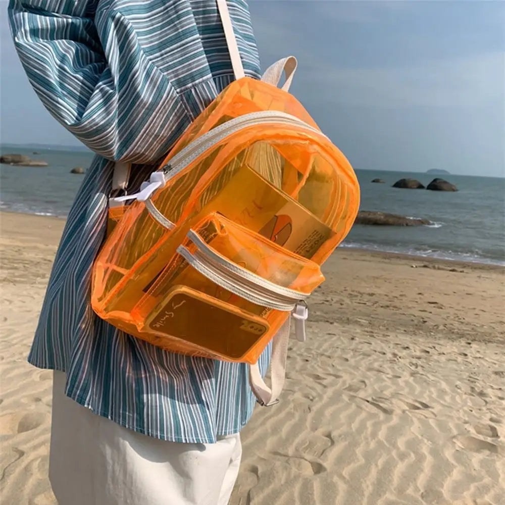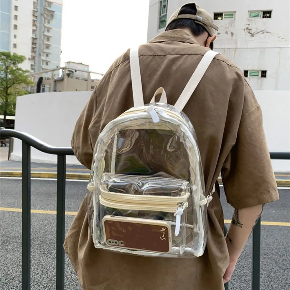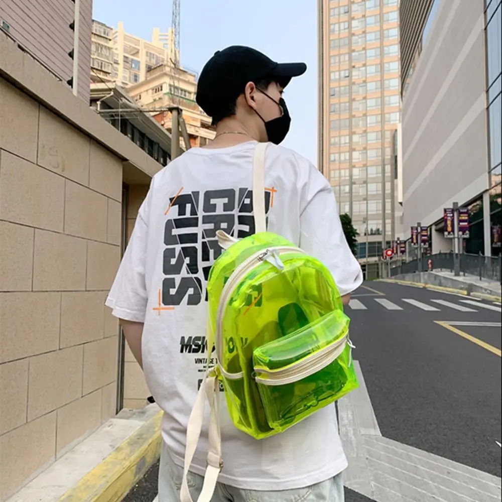 KYLETHOMASW - Large Capacity LED Lights Schoolbag Adjustable Straps Waterproof PVC Transparent Backpack Visible Multi-functional