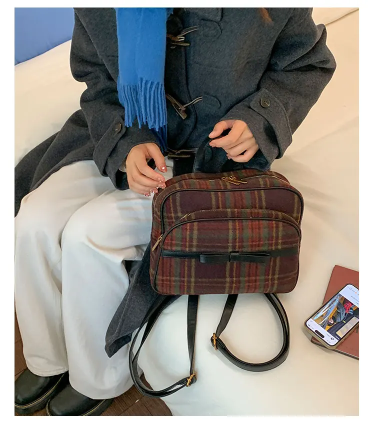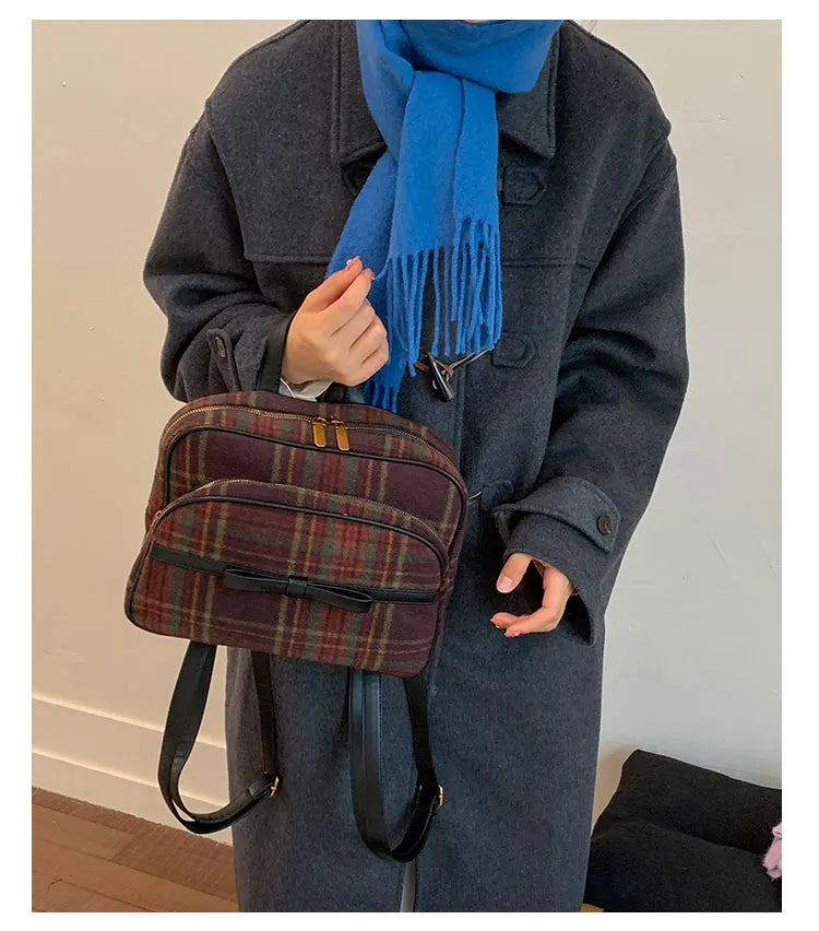 KYLETHOMASW - Luxury Design Casual All Match Mini Handbags Women Sweet Y2k Aesthetic Plaid Backpacks Japanese Girls Fashion Vintage Schoolbags