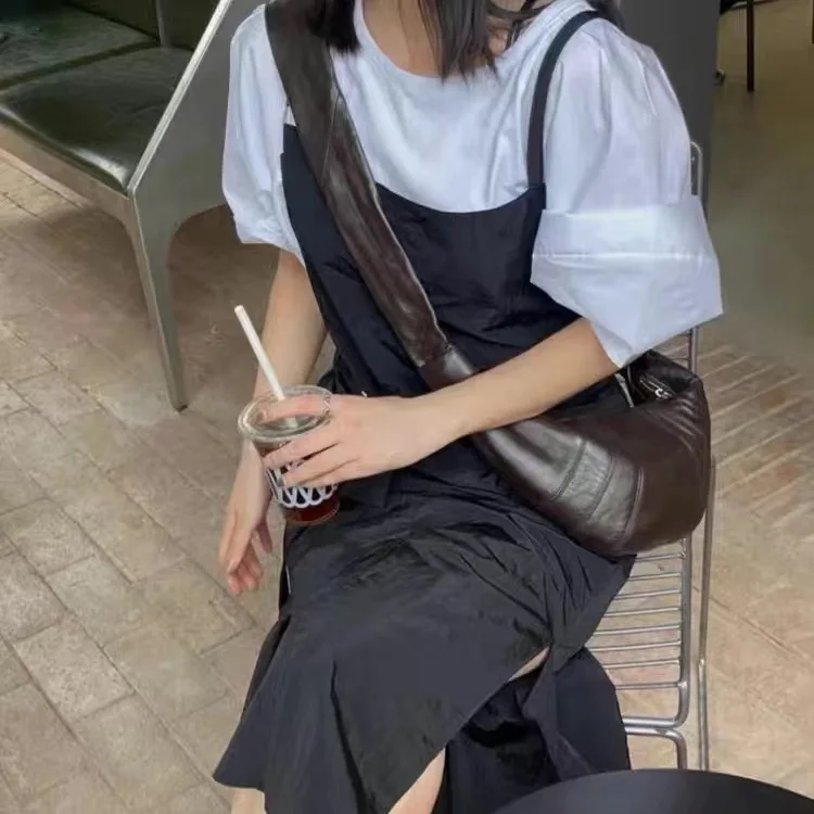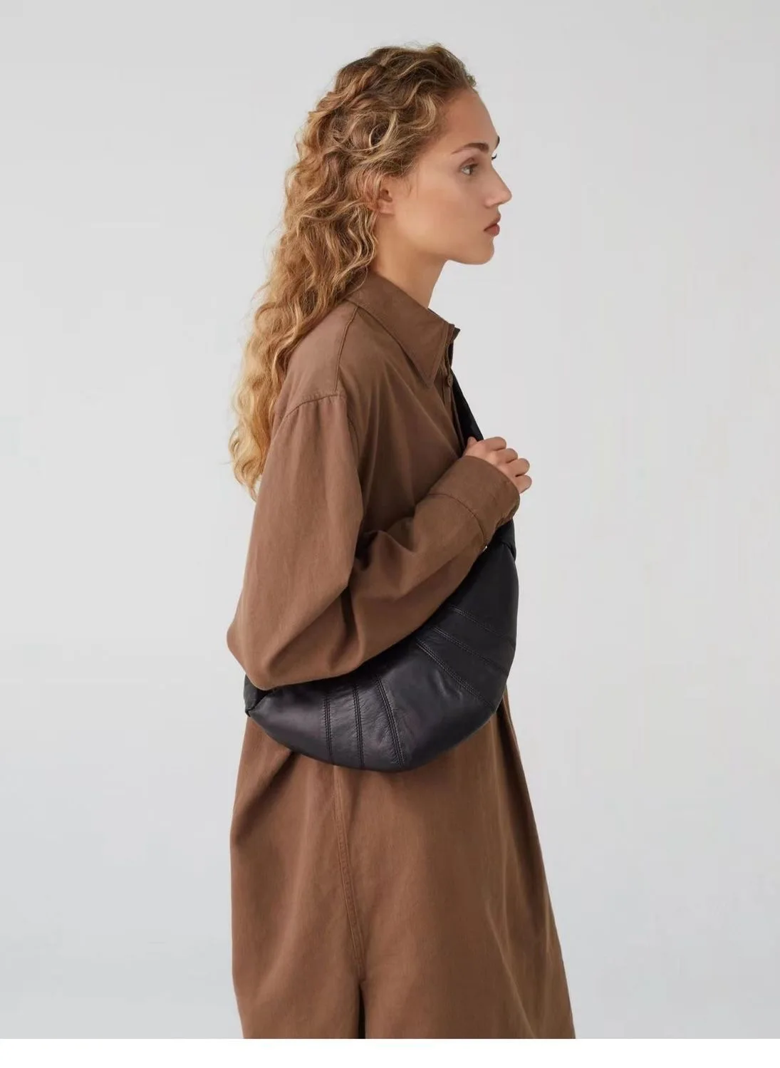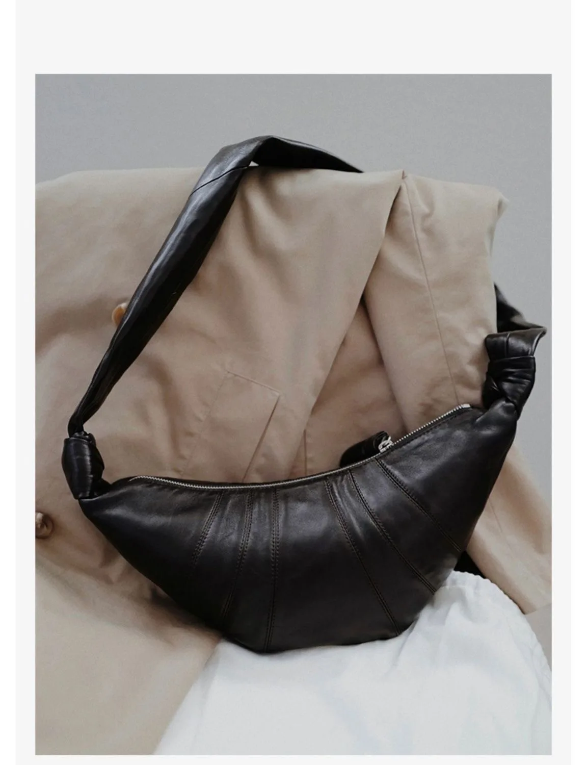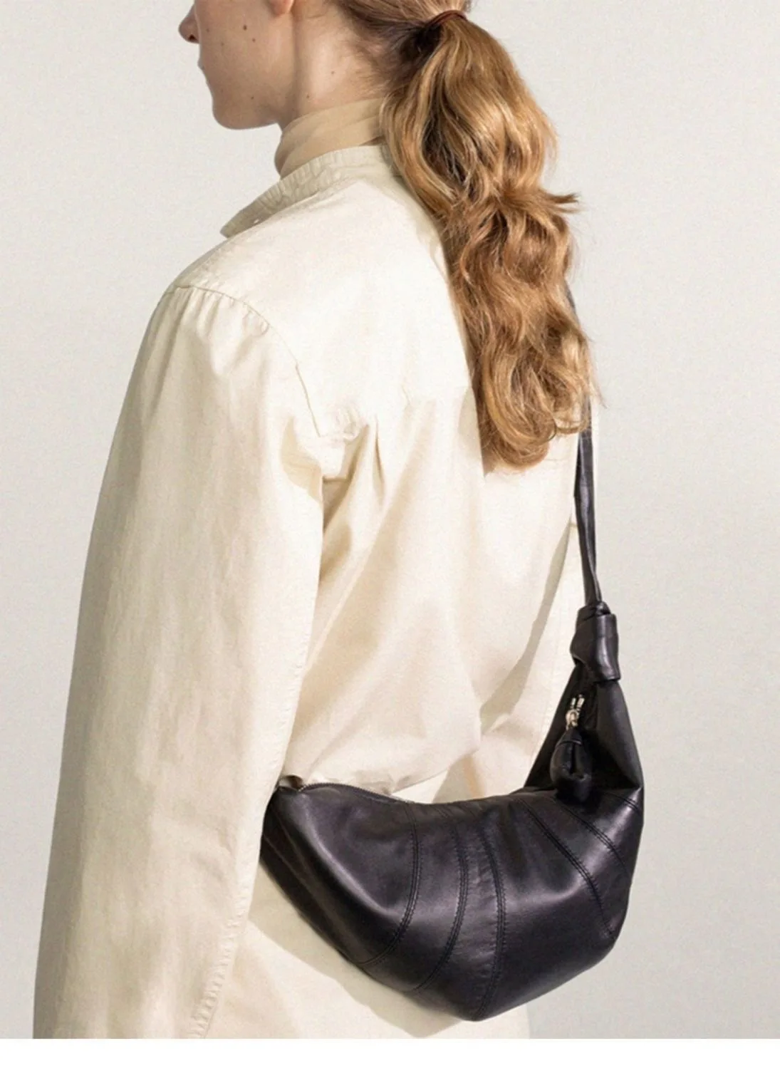 Kylethomasw Ox Horn Bag New Leather Niche Commuting Versatile Diagonal Cross Dumpling Bag, Simple and Casual Large Capacity Praiseworthy Bag