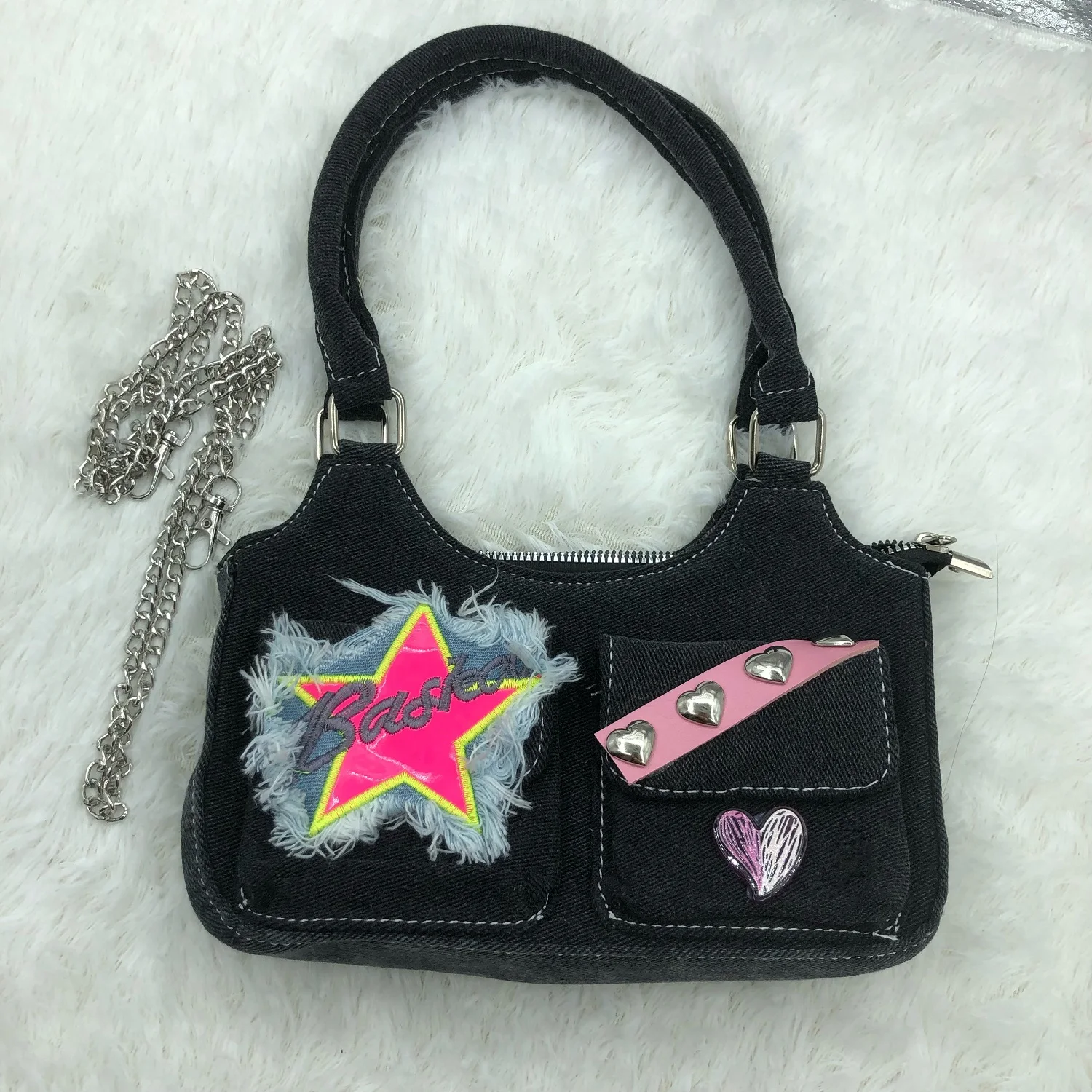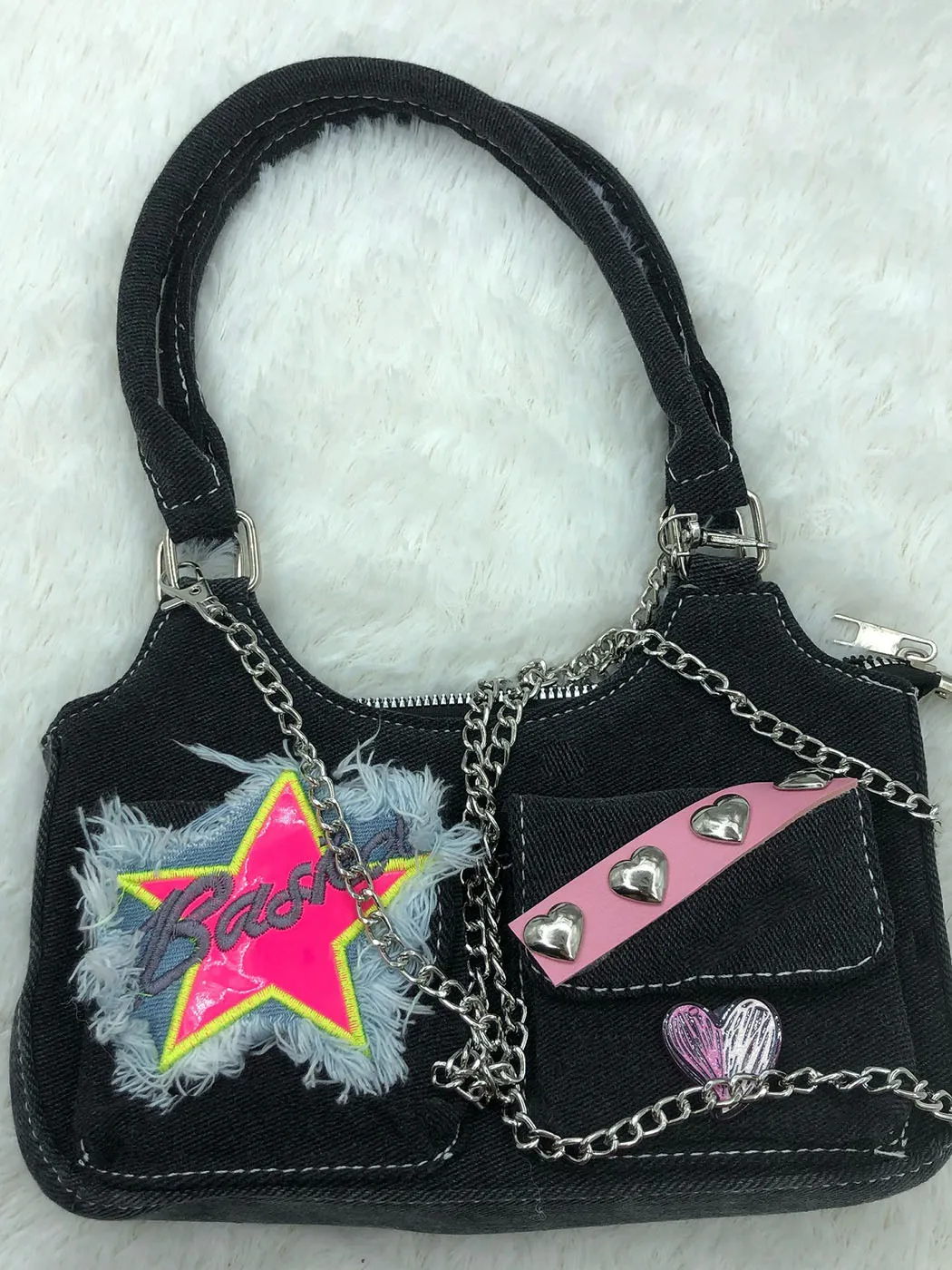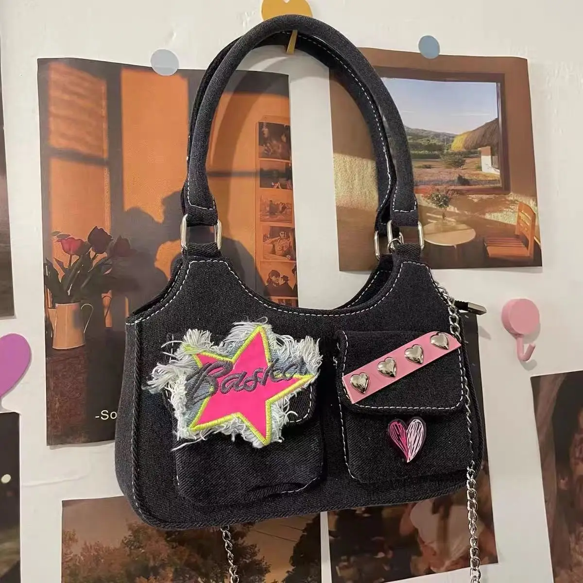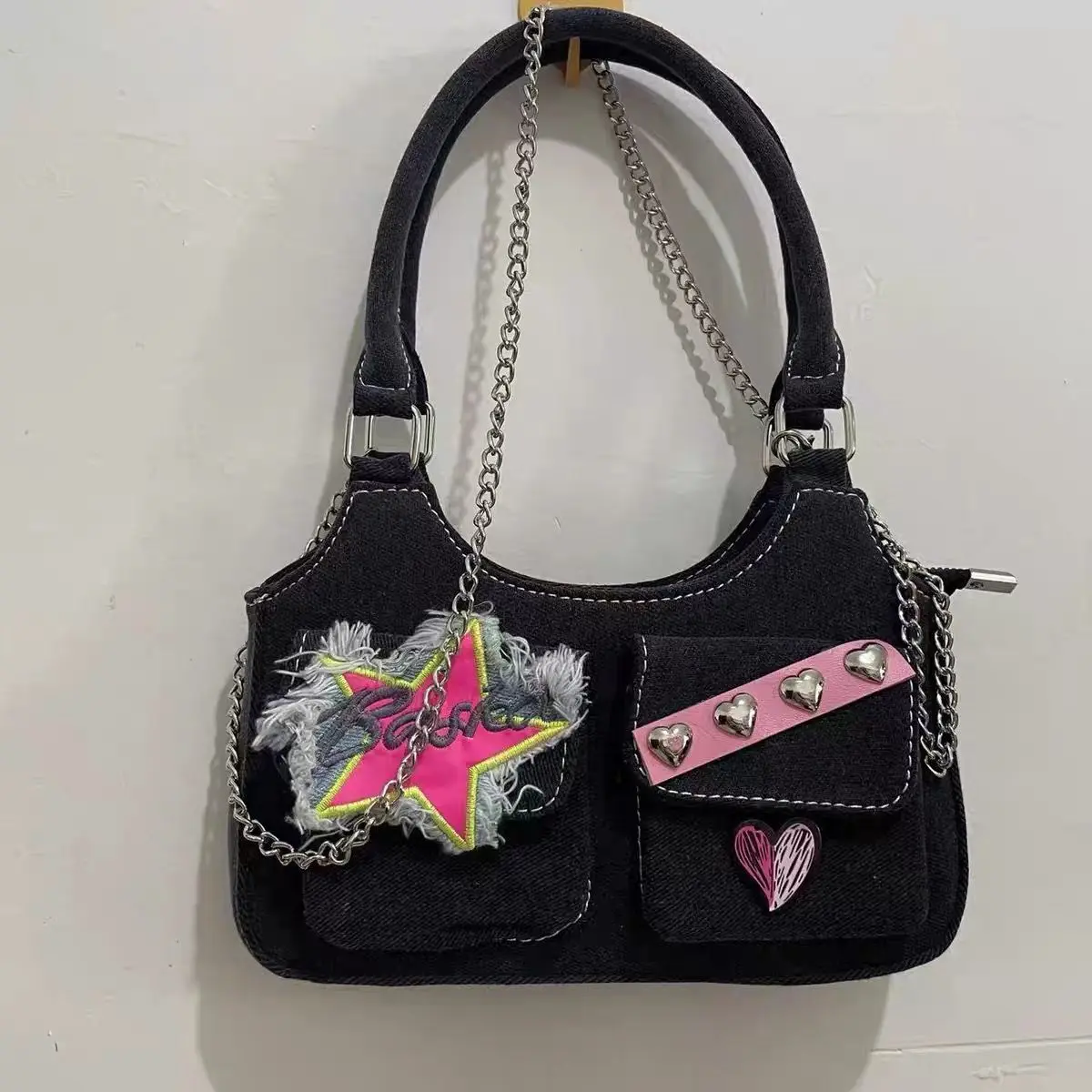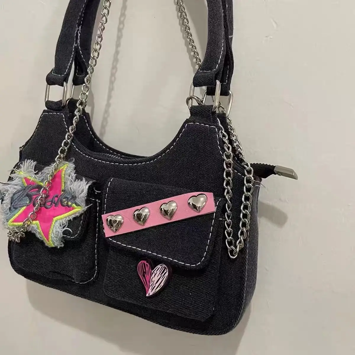 Kylethomasw Star Heart Denim Y2k Handbags Women Spring Pockets Luxury Designer Handbag Female Harajuku Aesthetic Shoulder Bags