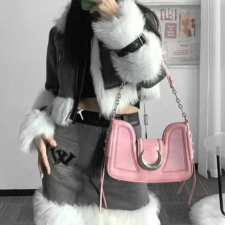 Kylethomasw Vintage Y2k Handbags Women 2024 Sweet Cool Girls Chains Moon Cute Shoulder Bags Female Harajuku Aesthetic Cute Bag New