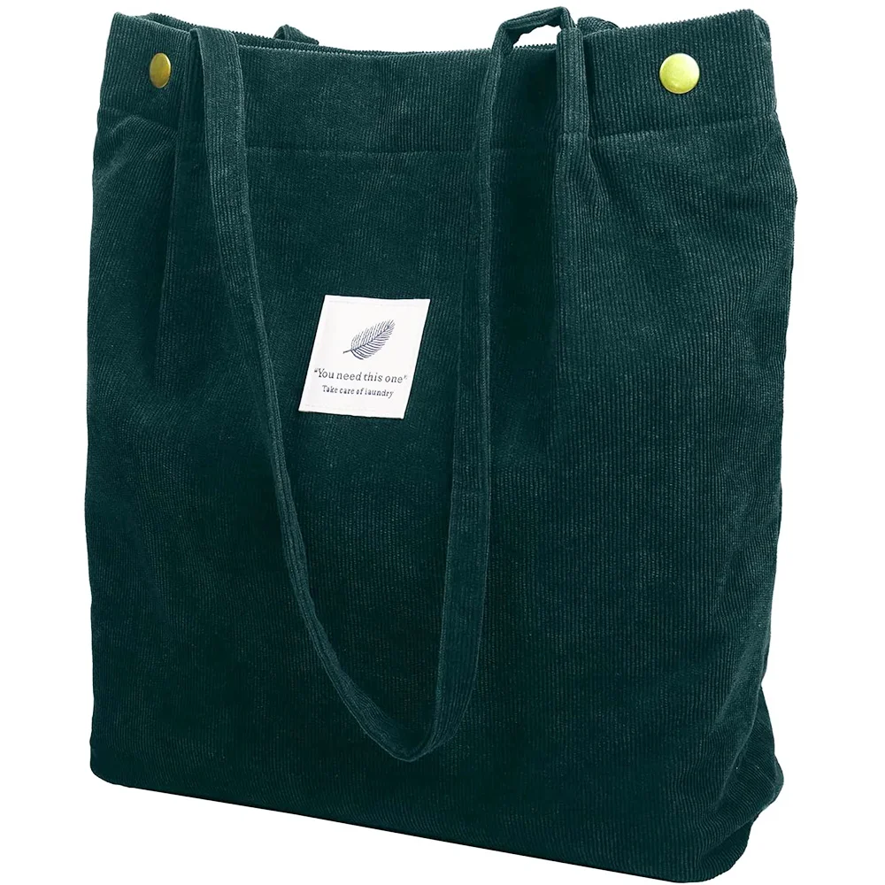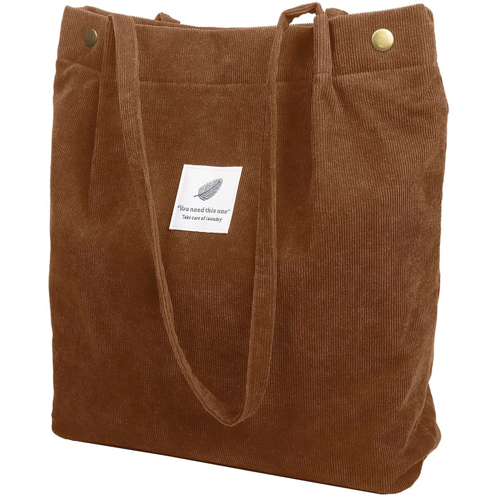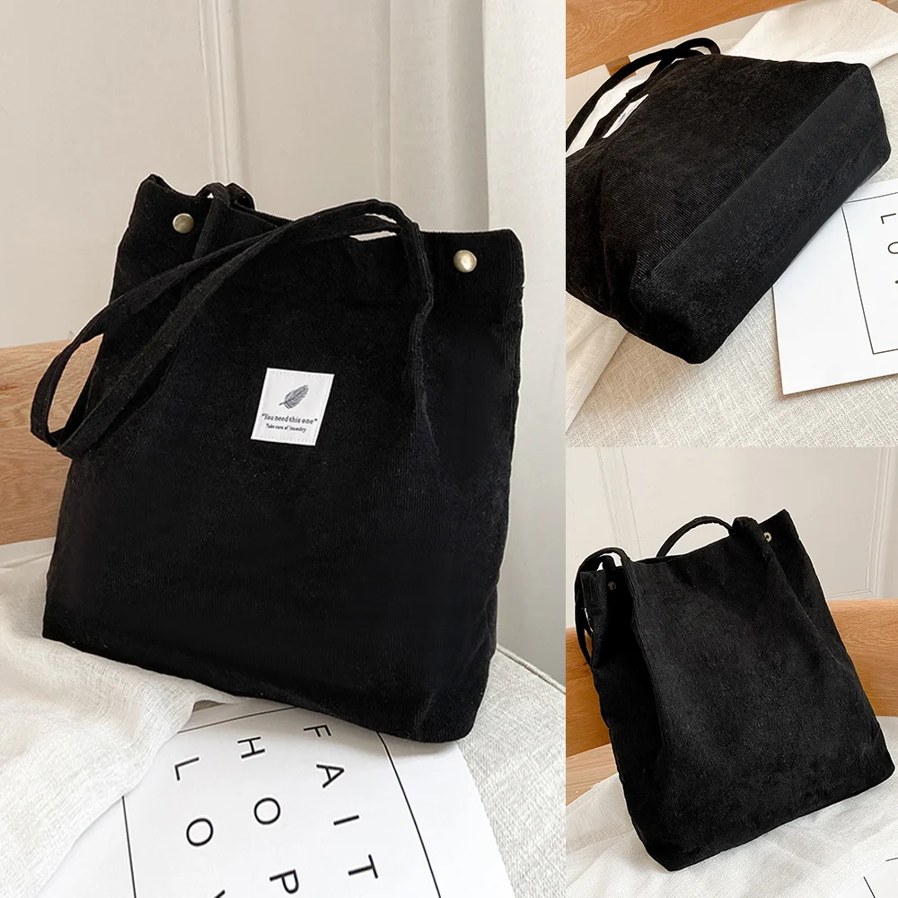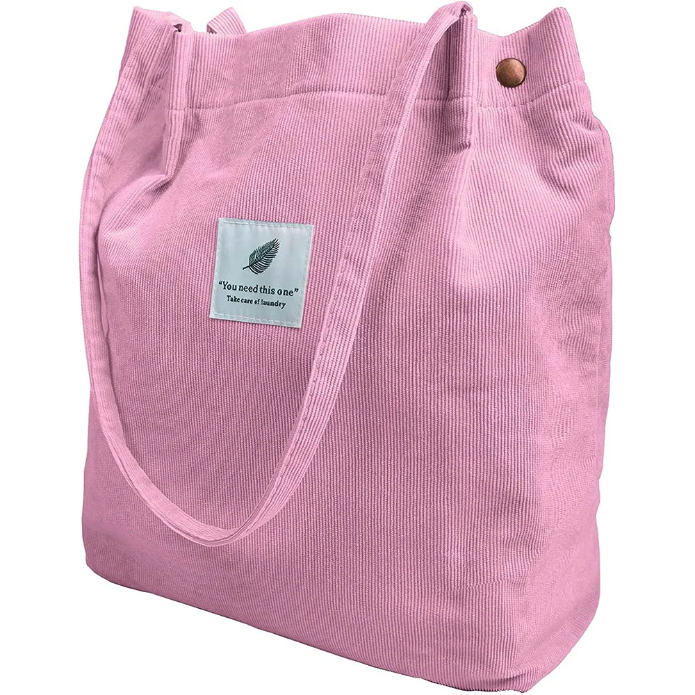 Kylethomasw Women Corduroy Shopping Bag Girl Canvas Cloth Shoulder Bag Environmental Storage Handbag Reusable Foldable Eco Grocery Totes