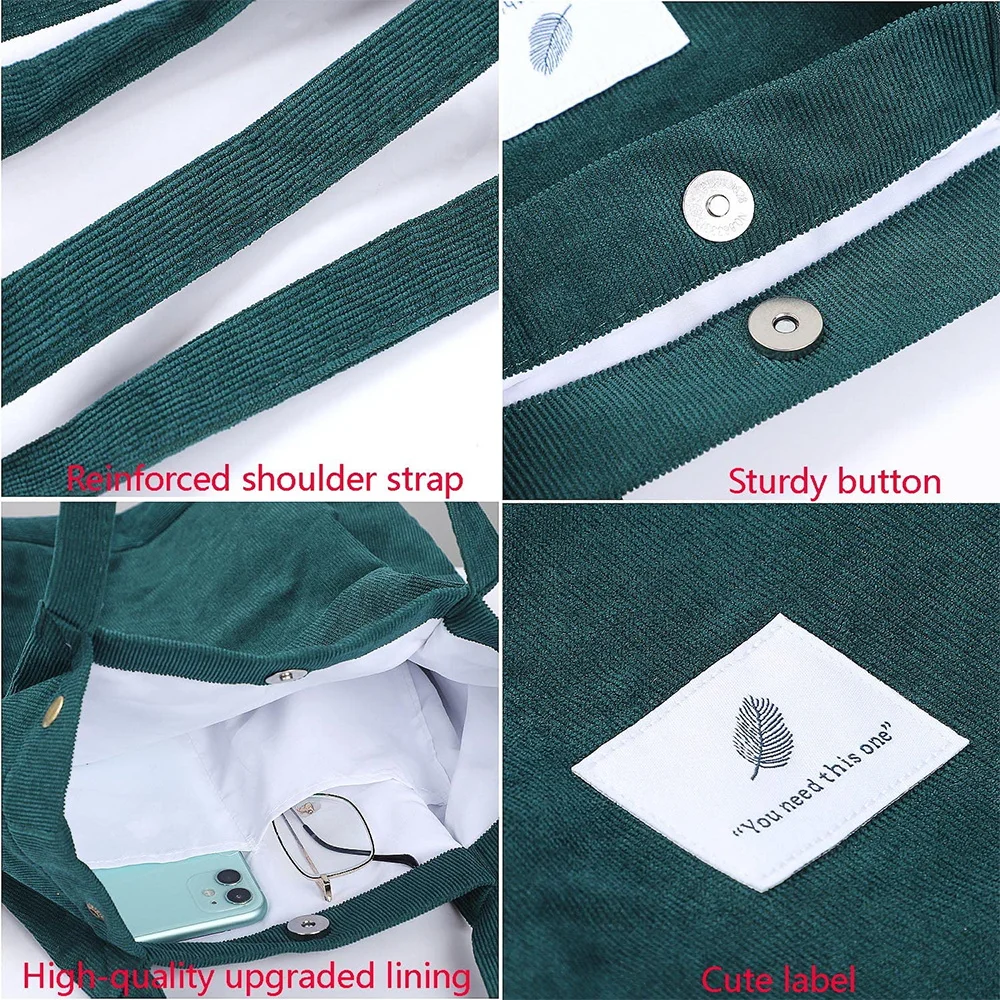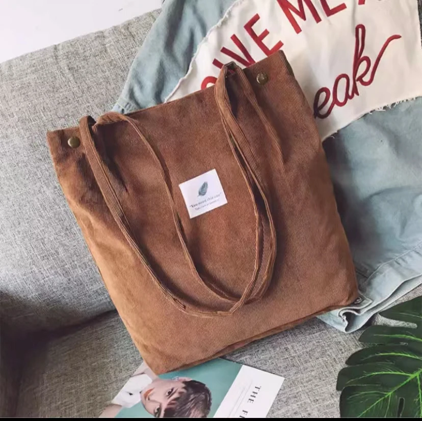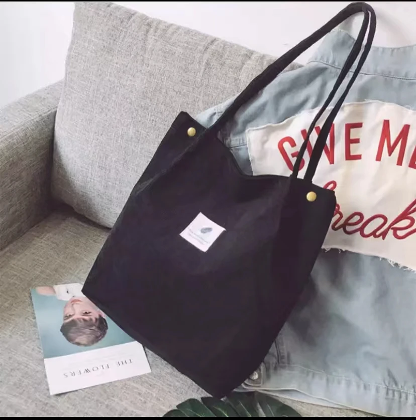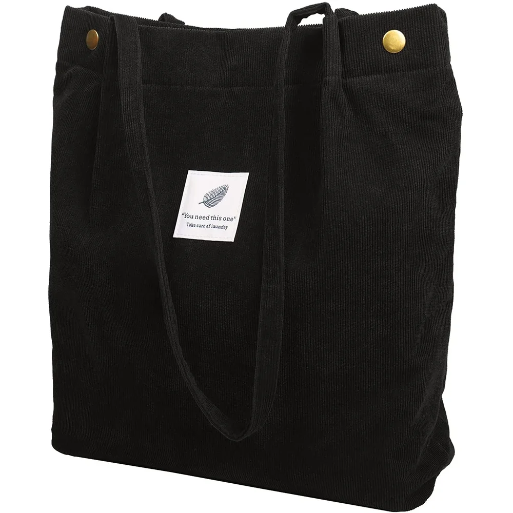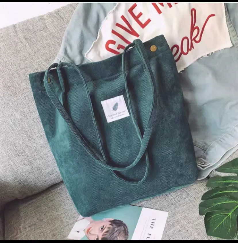 Kylethomasw Women Corduroy Shopping Bag Girl Canvas Cloth Shoulder Bag Environmental Storage Handbag Reusable Foldable Eco Grocery Totes