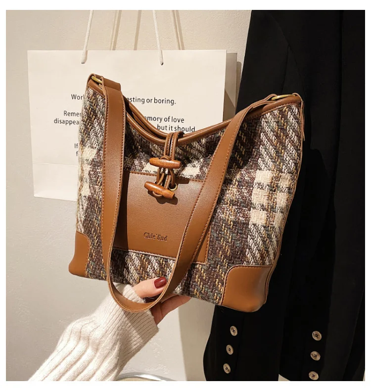Kylethomasw Autumn And Winter Large Bag Bag New Fashion Woolen Cloth Large Capacity Single Shoulder Bag Versatile Messenger Women's Bag
