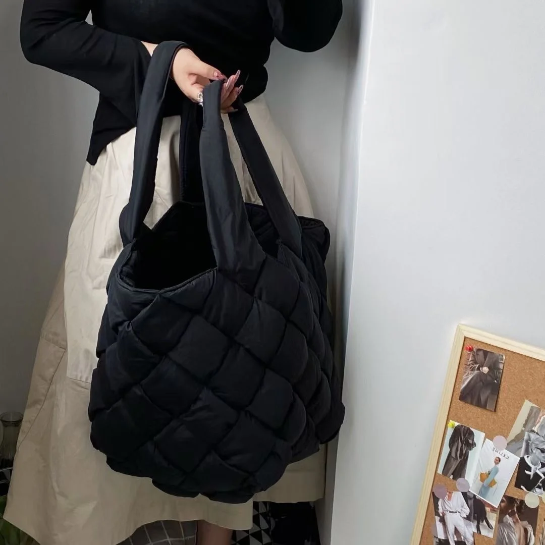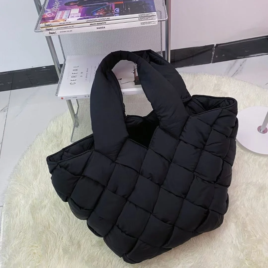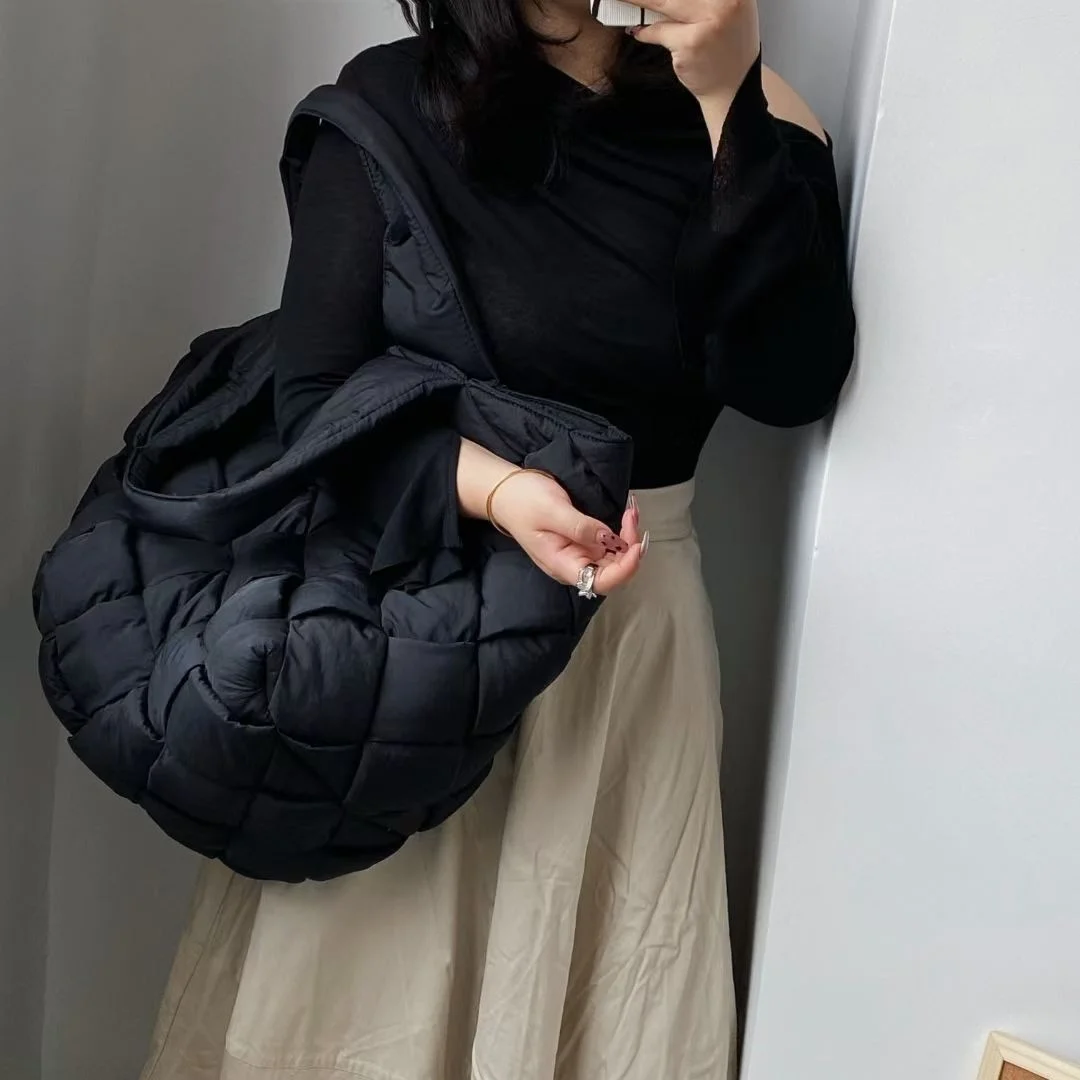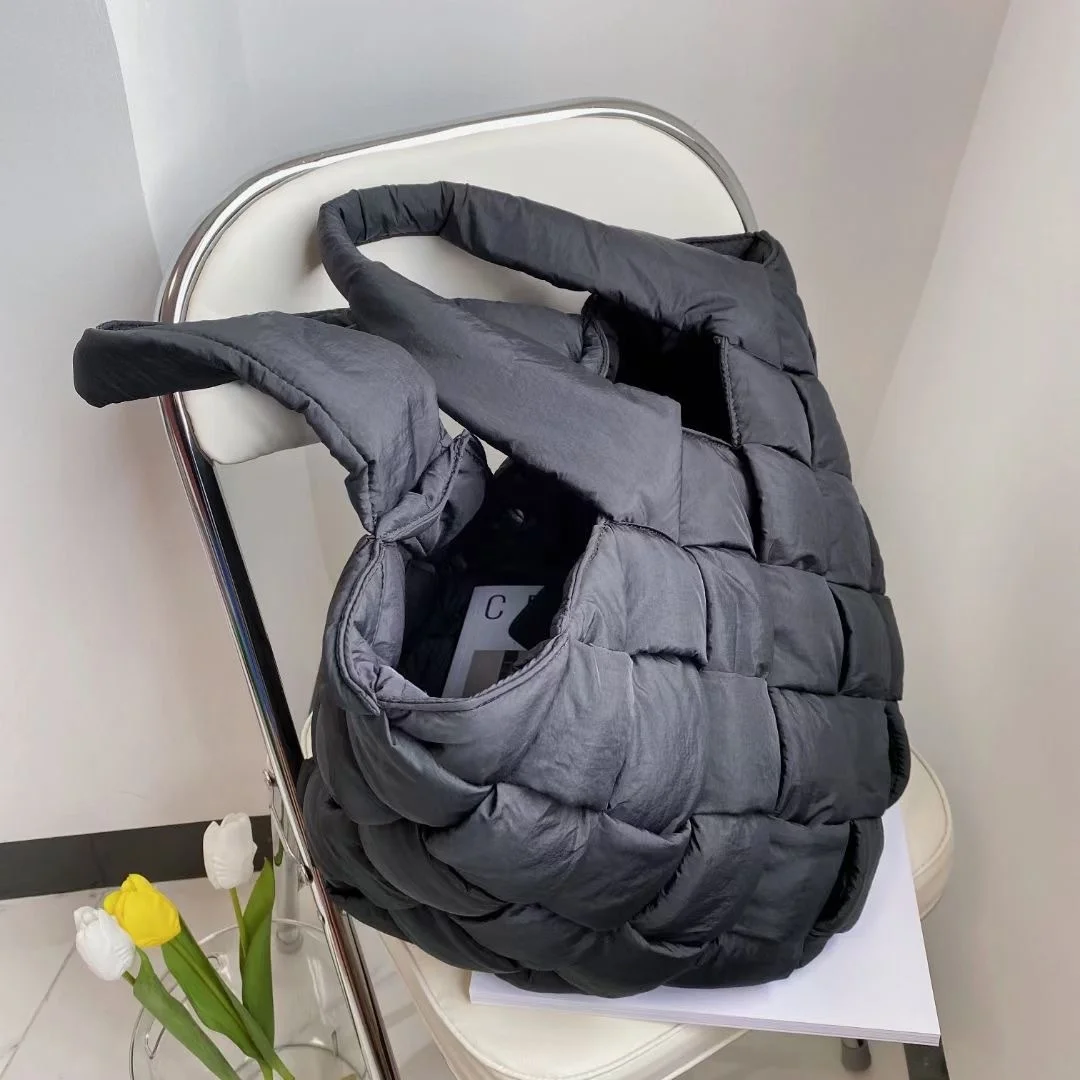 Kylethomasw Autumn And Winter New Down Filled Woven One Shoulder High Capacity Stitching Tote Minority Design Women's Nylon Bag