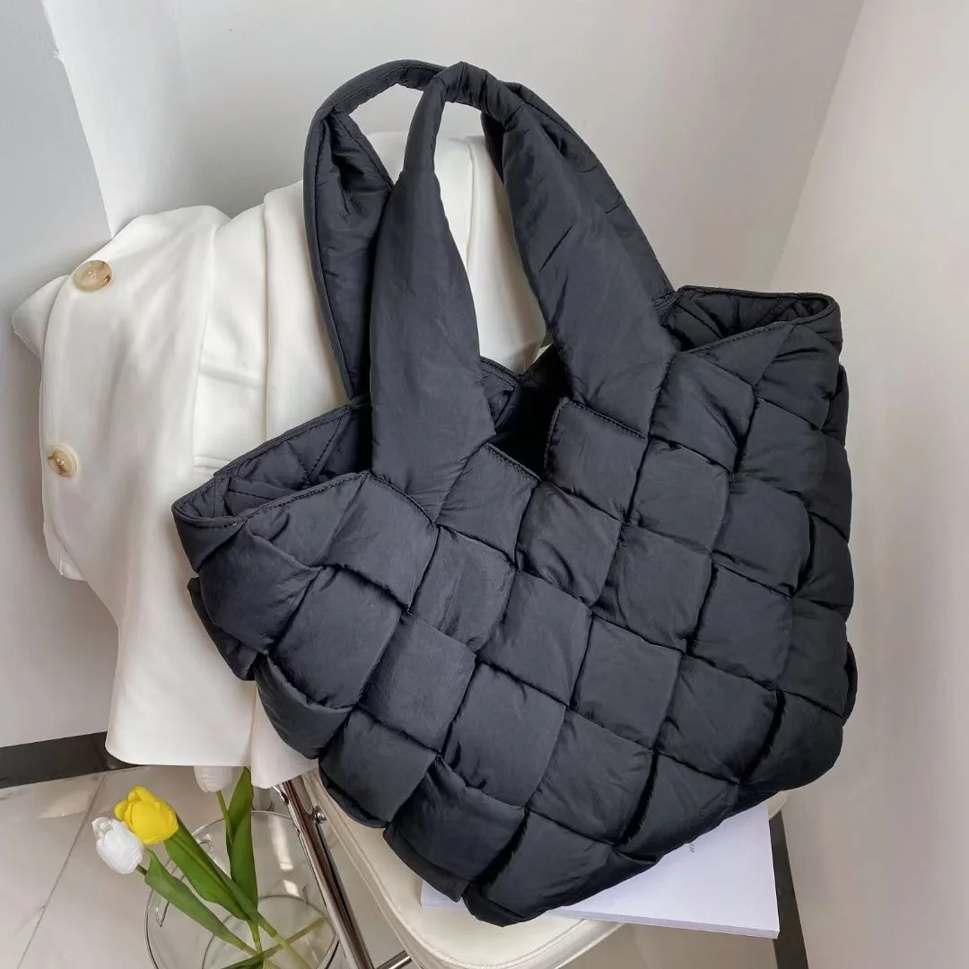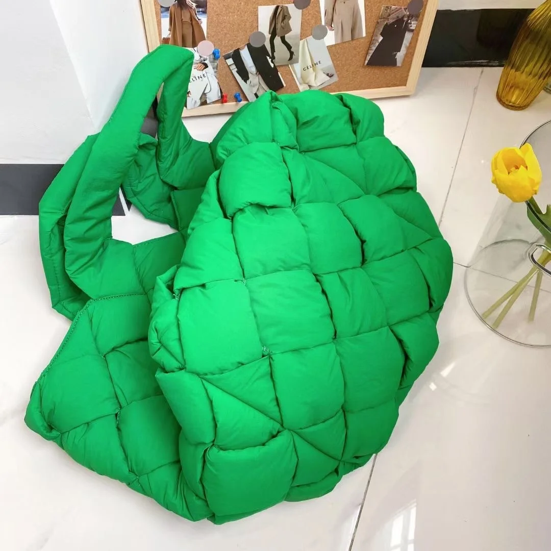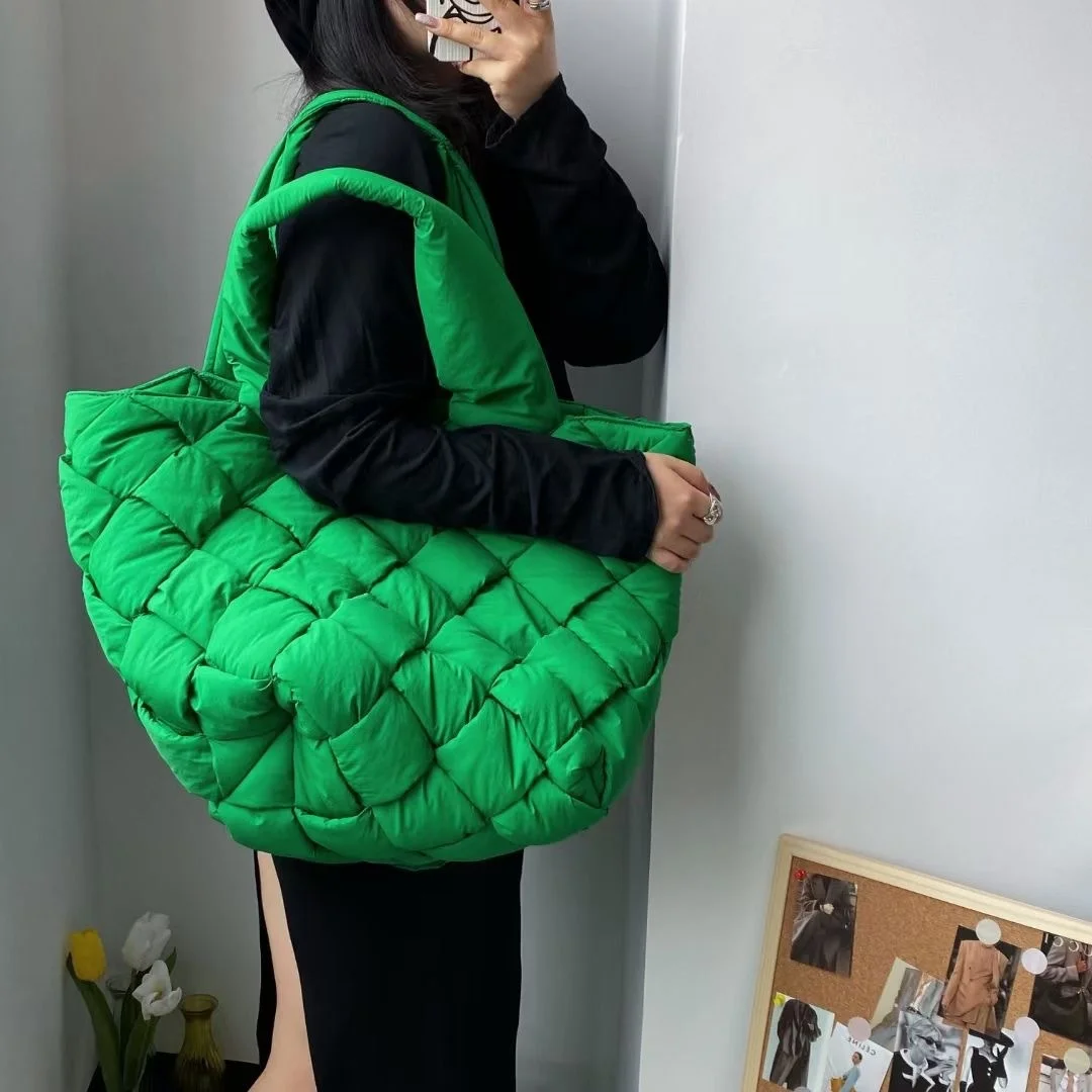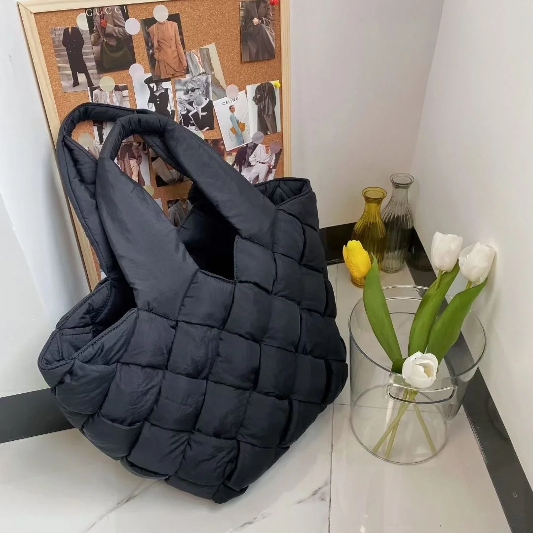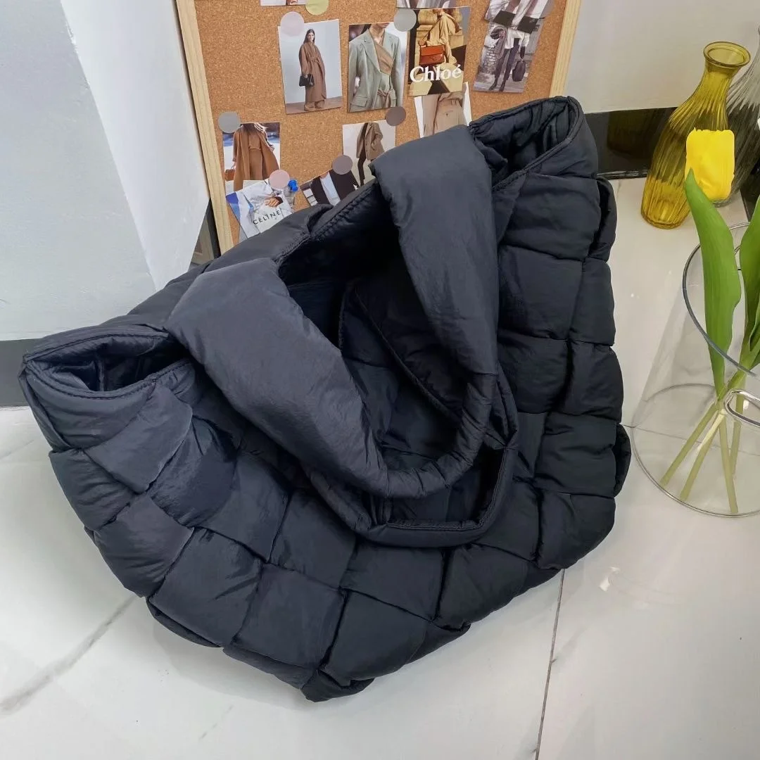 Kylethomasw Autumn And Winter New Down Filled Woven One Shoulder High Capacity Stitching Tote Minority Design Women's Nylon Bag