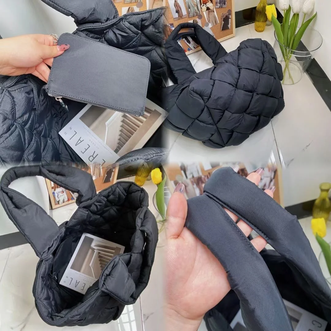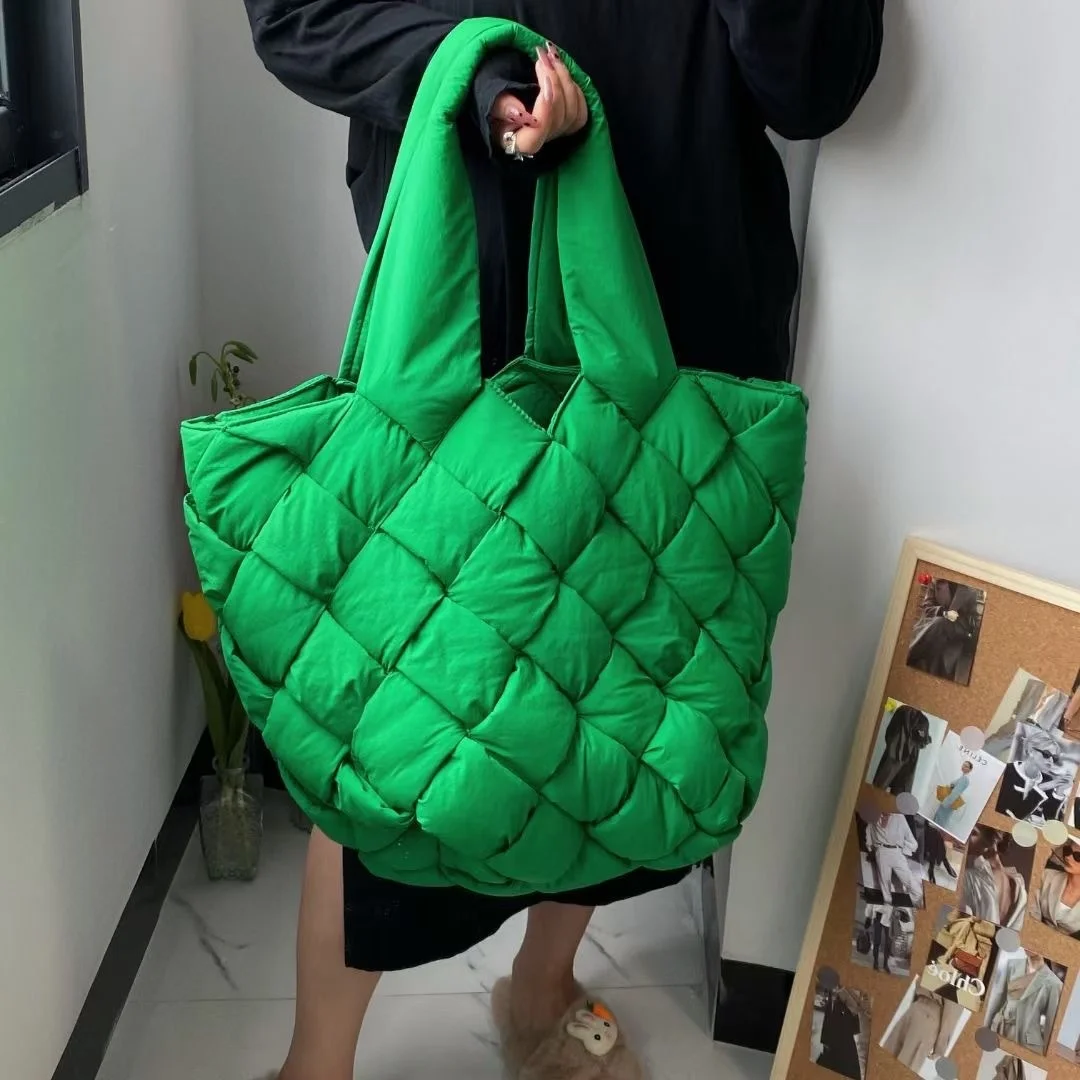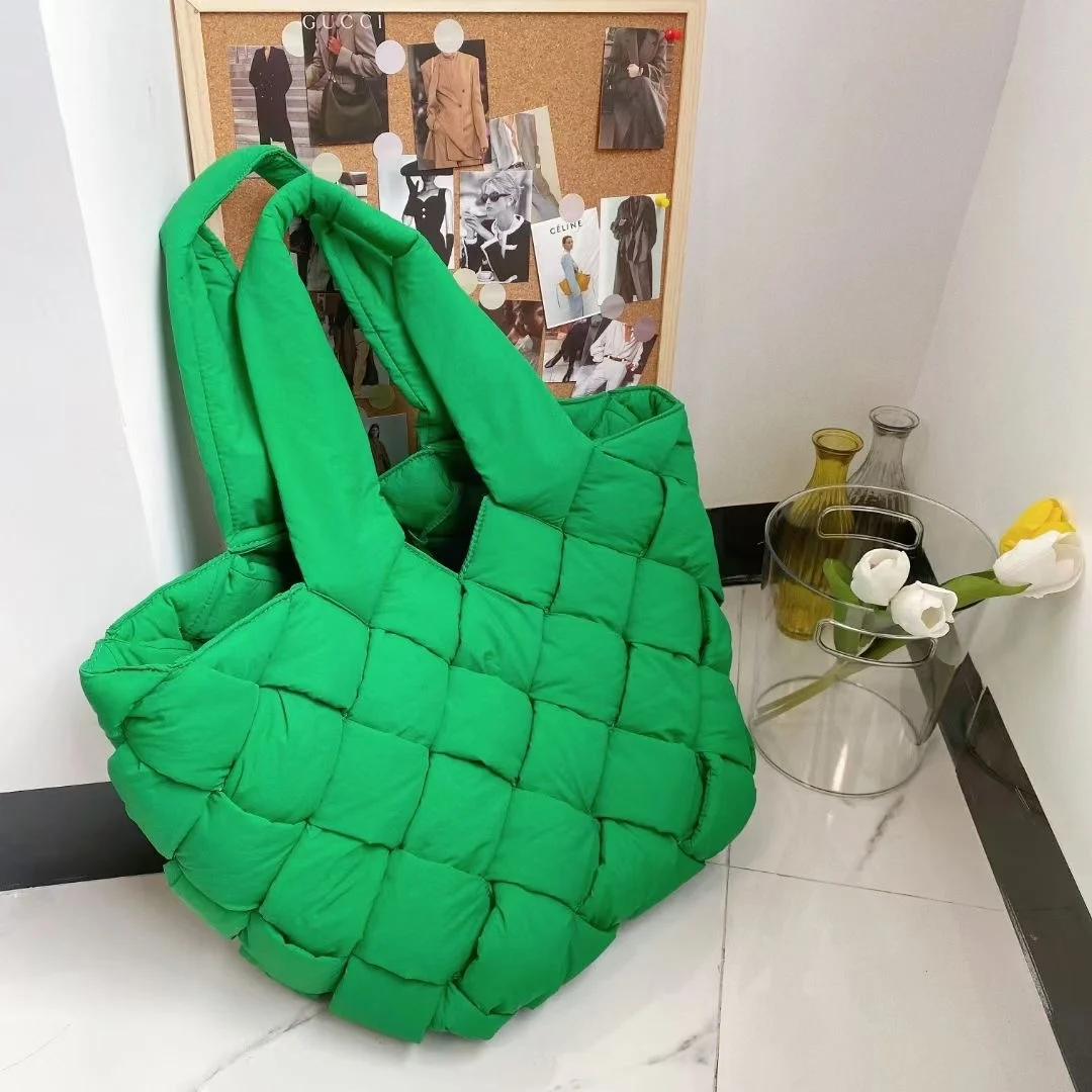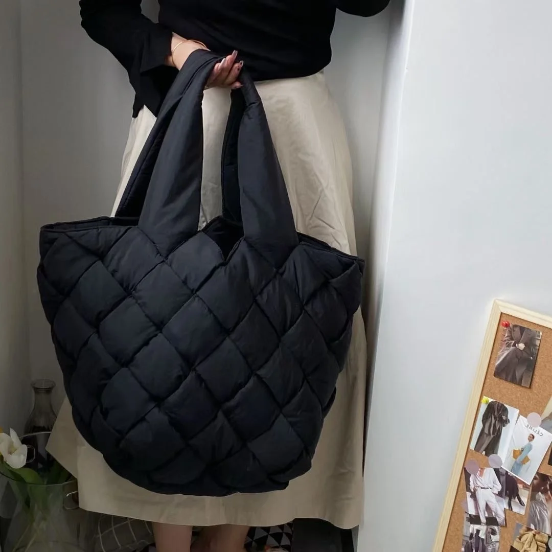 Kylethomasw Autumn And Winter New Down Filled Woven One Shoulder High Capacity Stitching Tote Minority Design Women's Nylon Bag