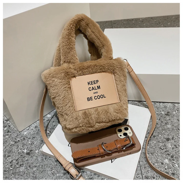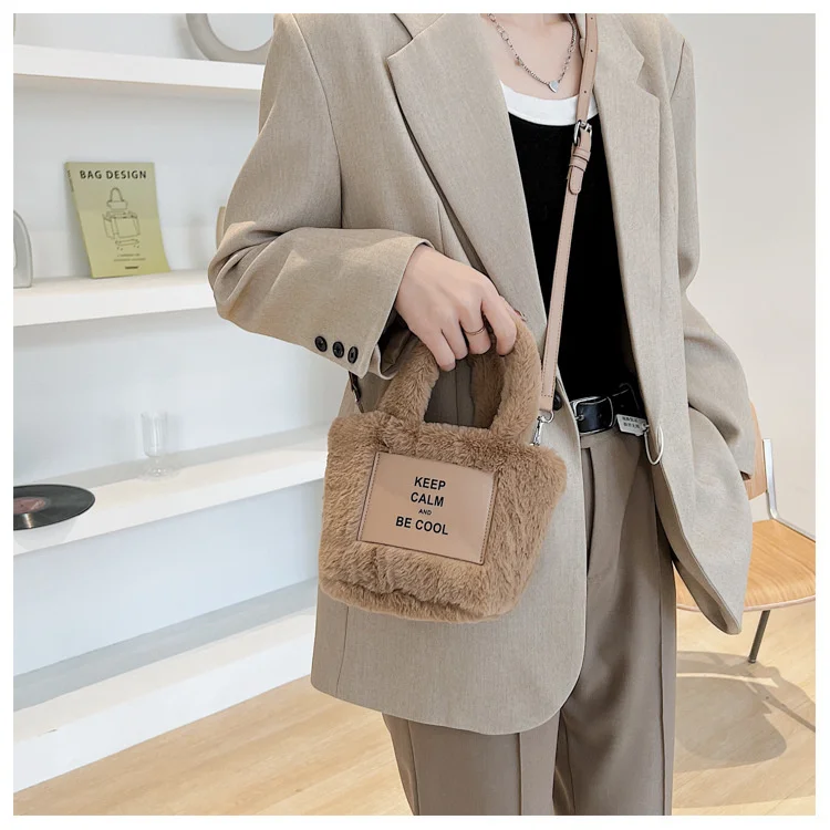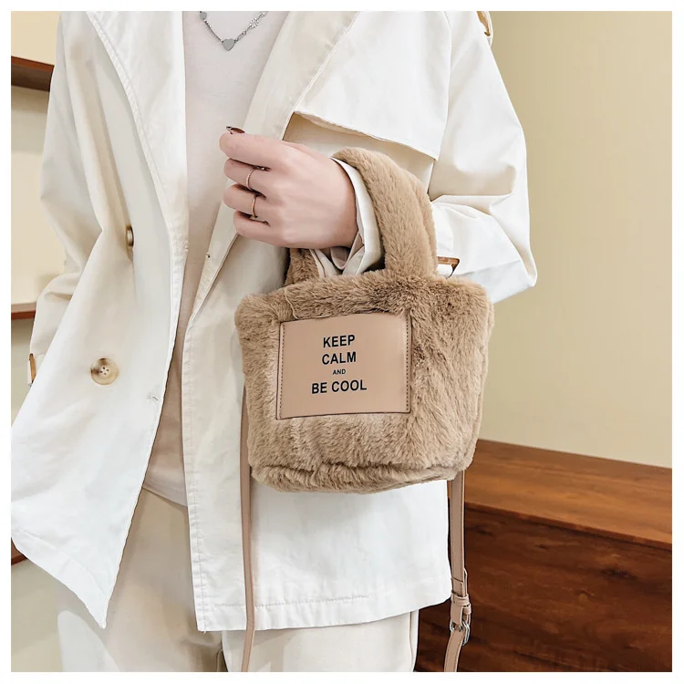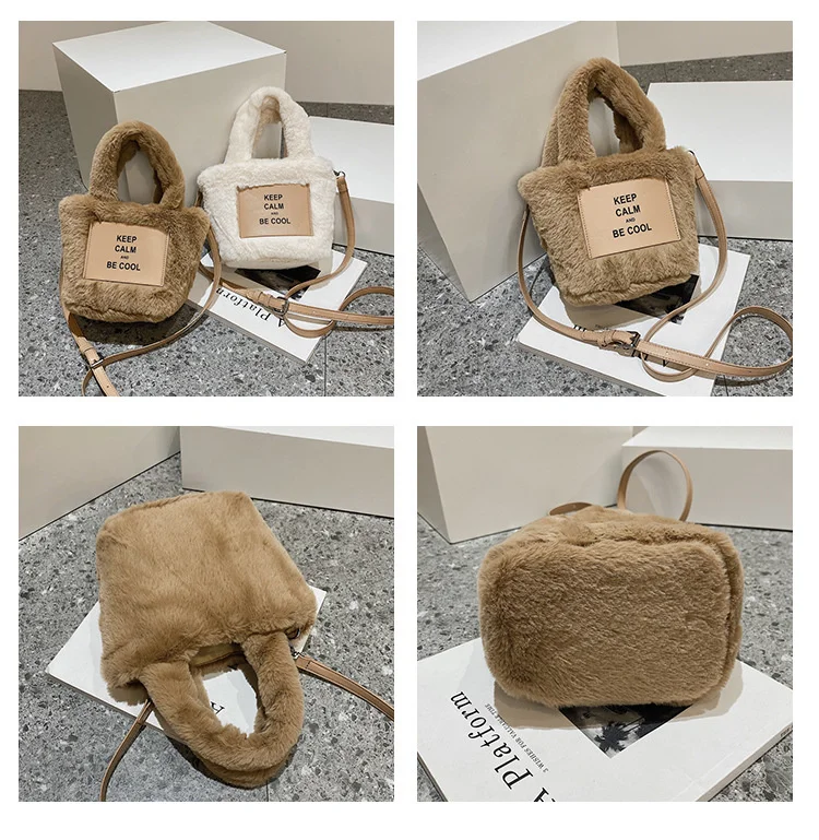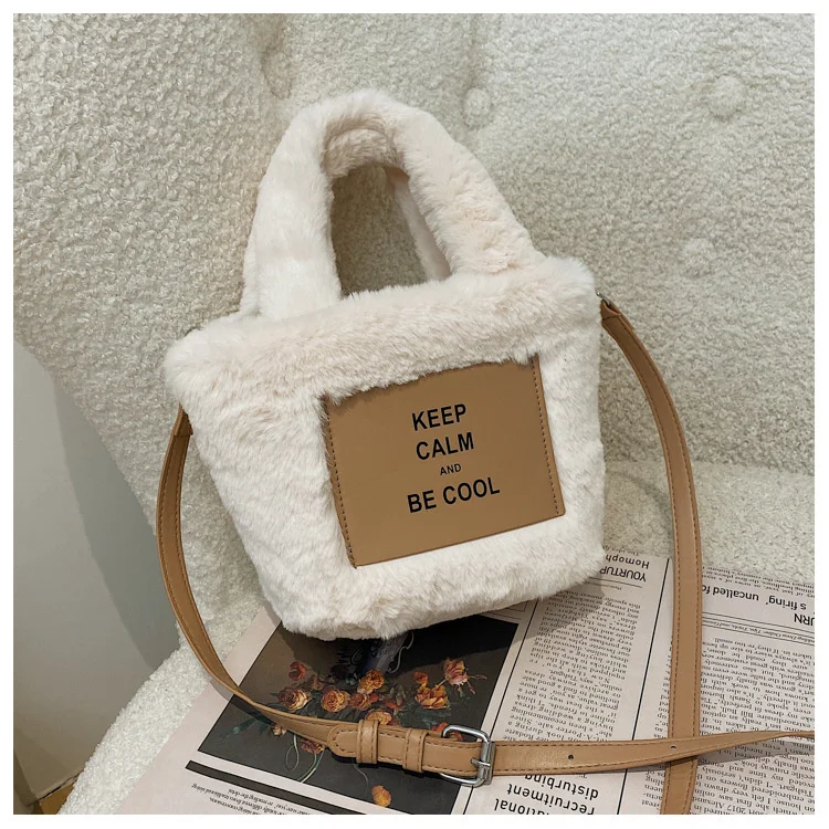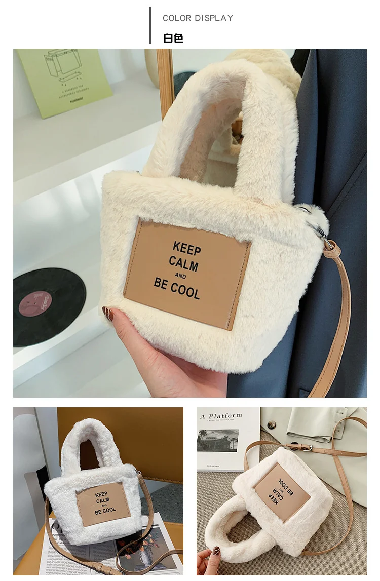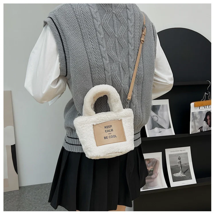 Kylethomasw Autumn And Winter Plush Hand Bag Woman New Fashion Portable Single Shoulder Cross Small Square Solid Japan Style Girls