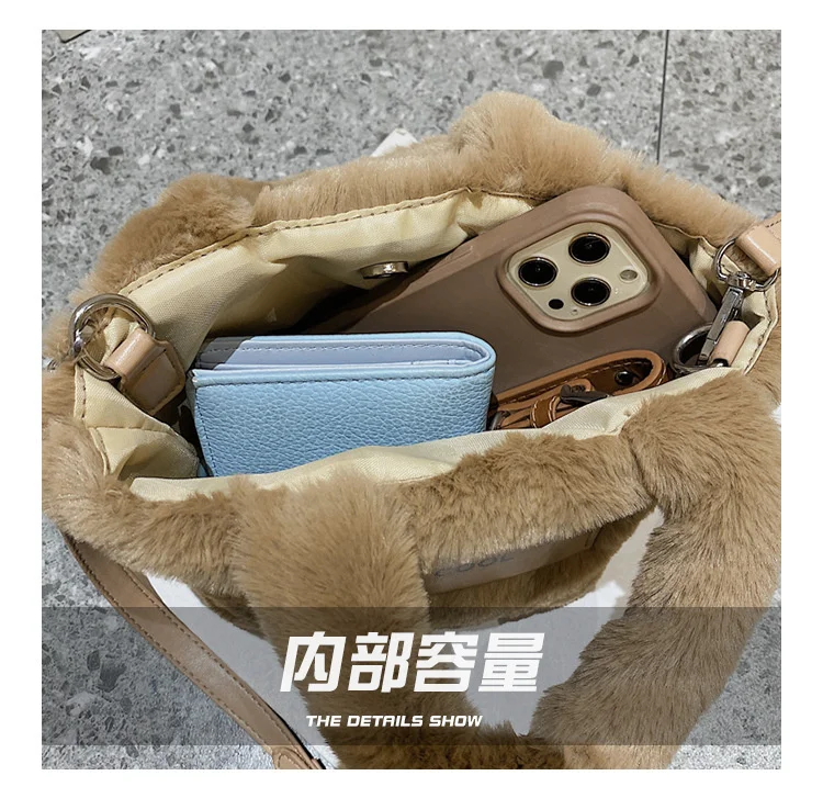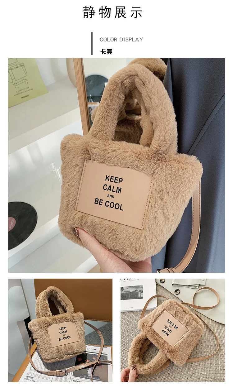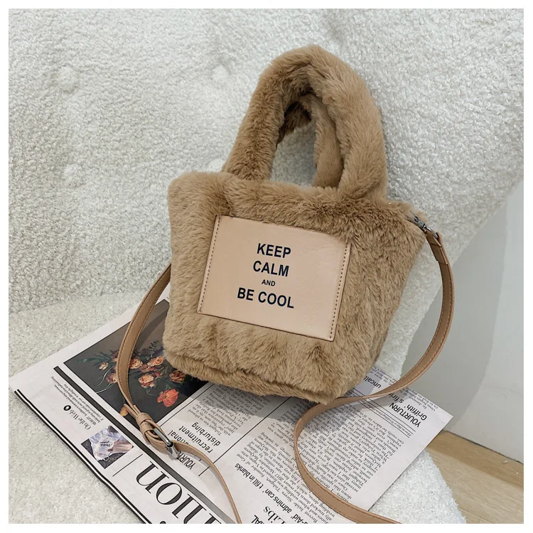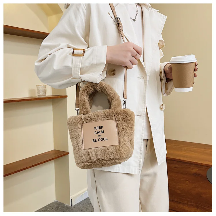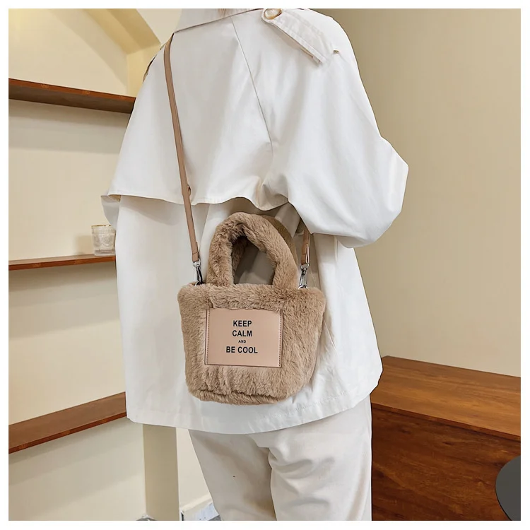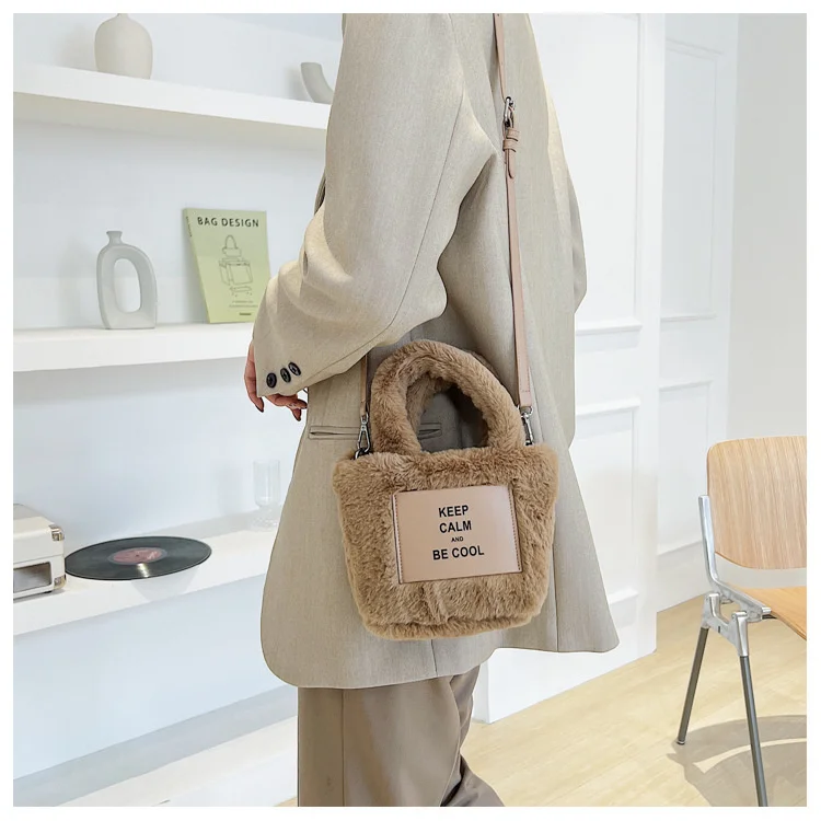 Kylethomasw Autumn And Winter Plush Hand Bag Woman New Fashion Portable Single Shoulder Cross Small Square Solid Japan Style Girls
