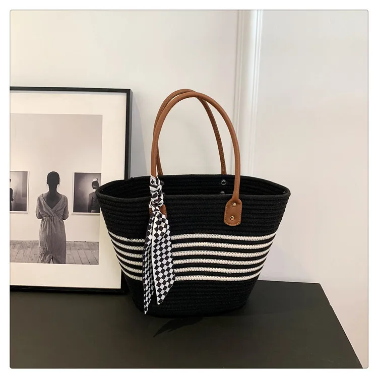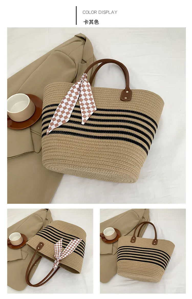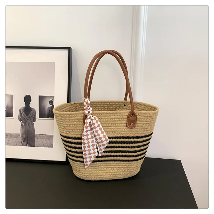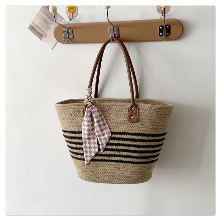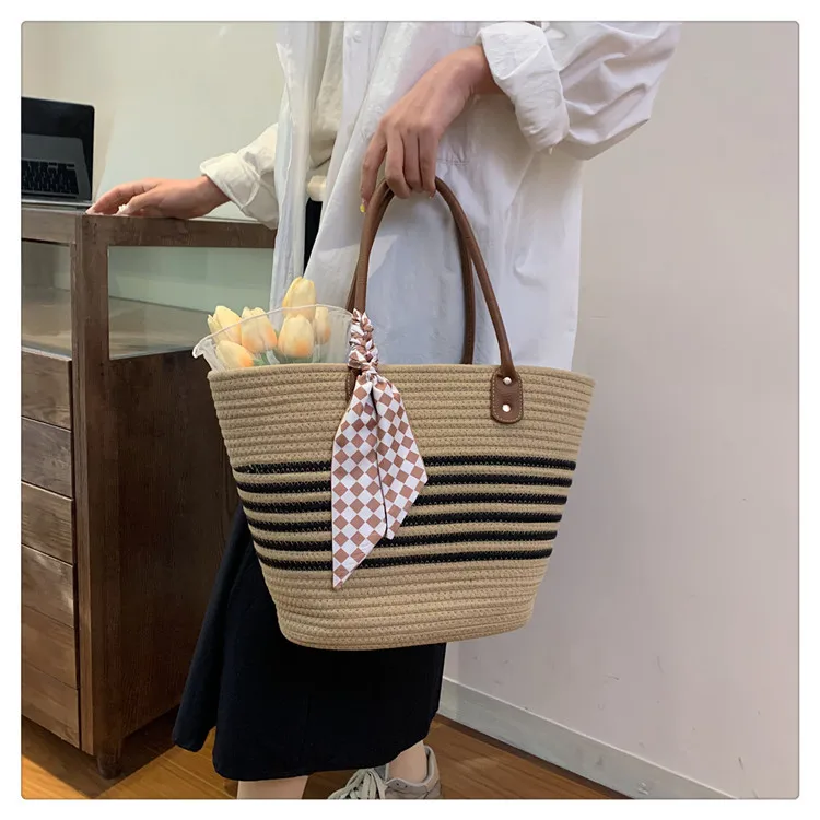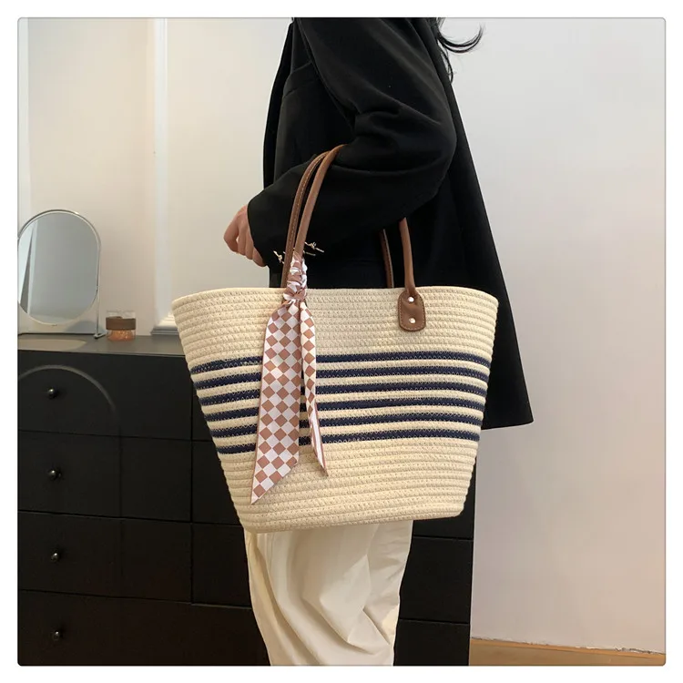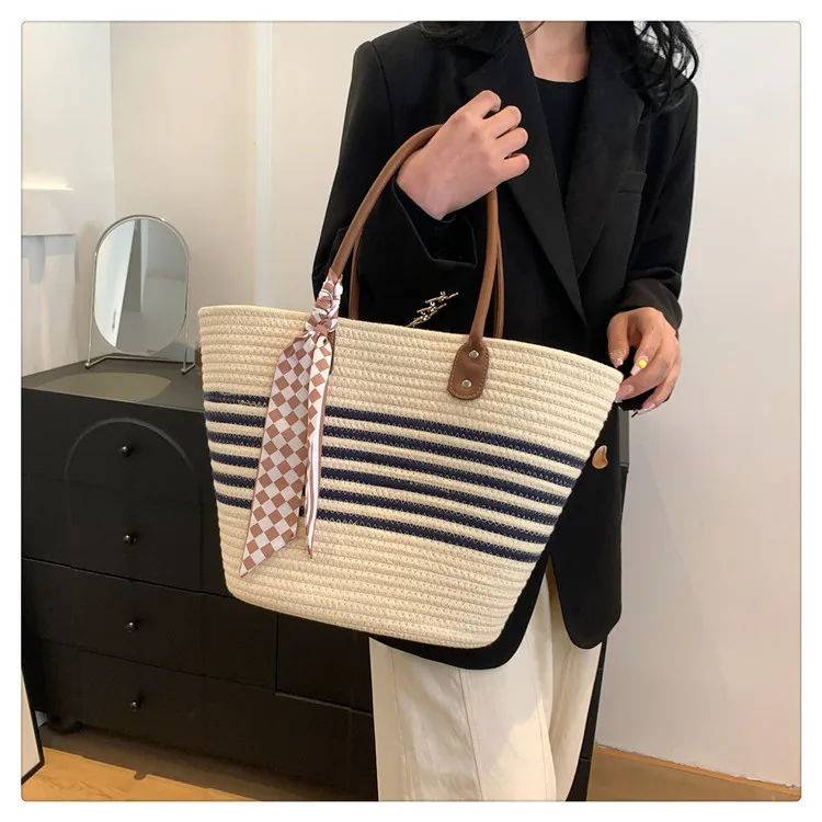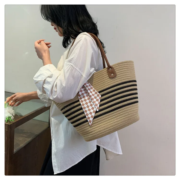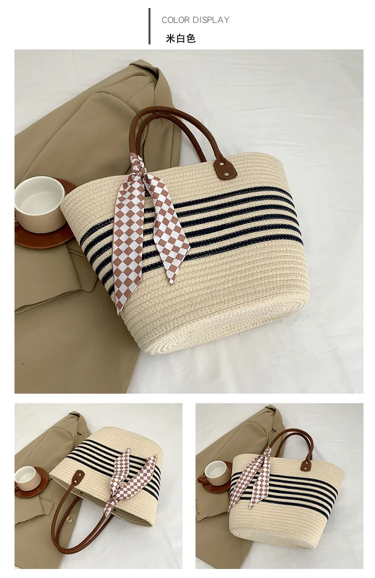 Kylethomasw Cross Border Scarf Straw Woven Shoulder Bag 2024 New Summer French Commuter Shoulder Bag Leisure Large Capacity Woven Bucket Bag