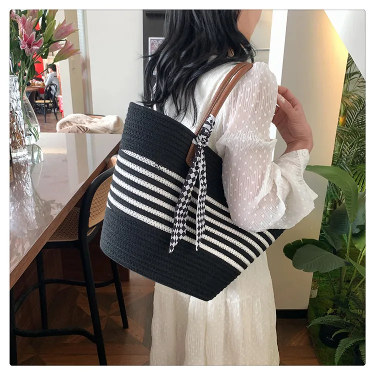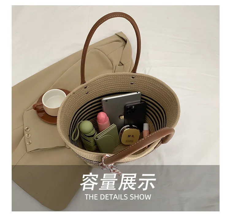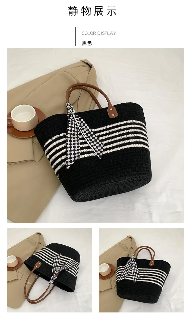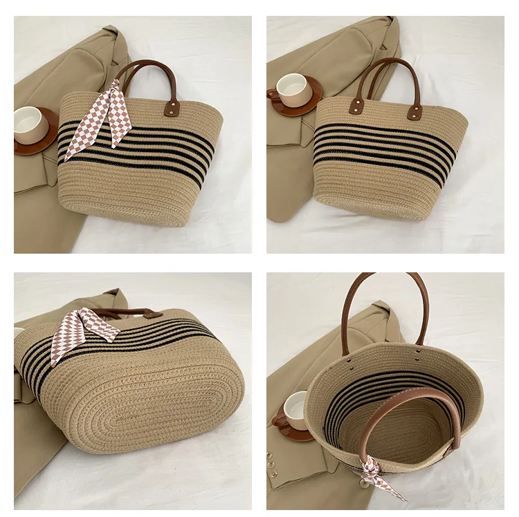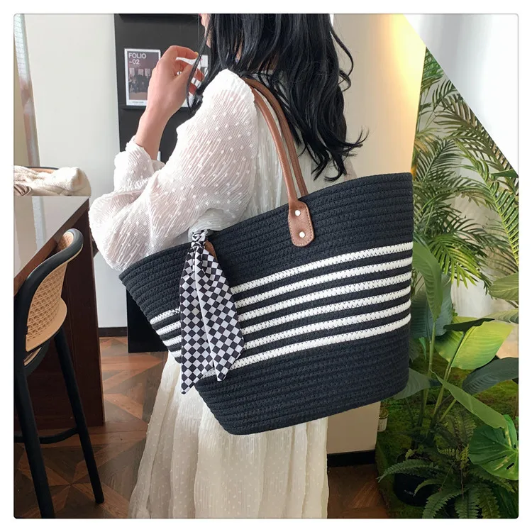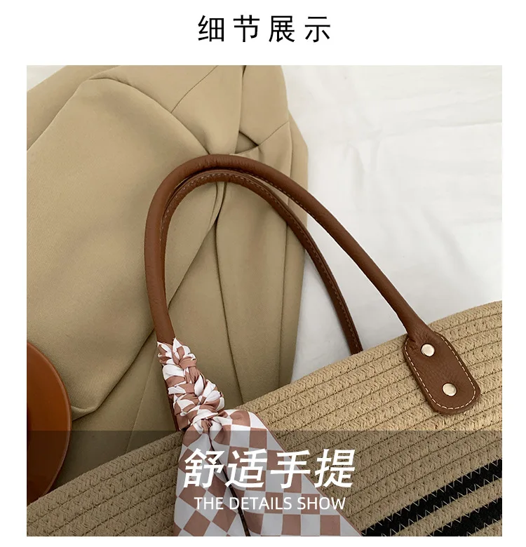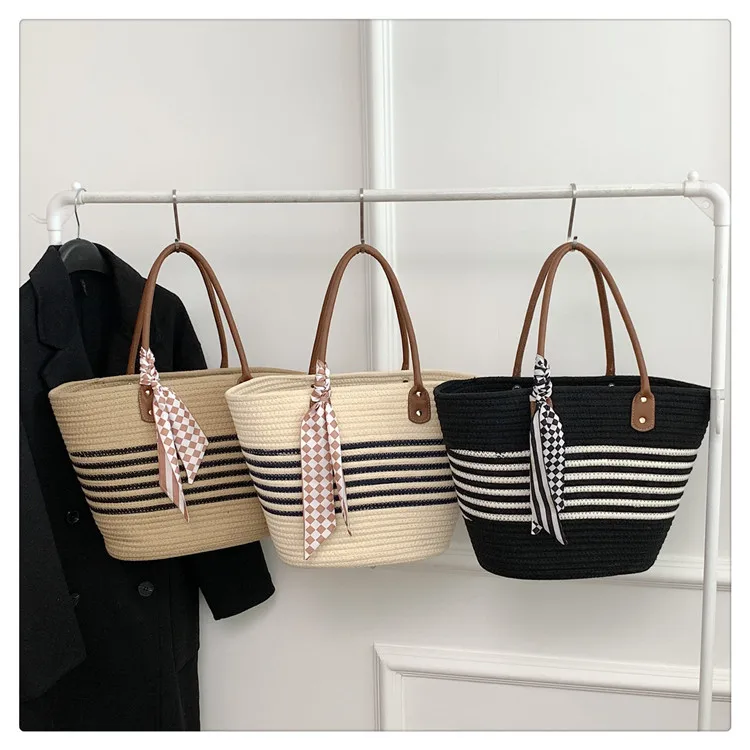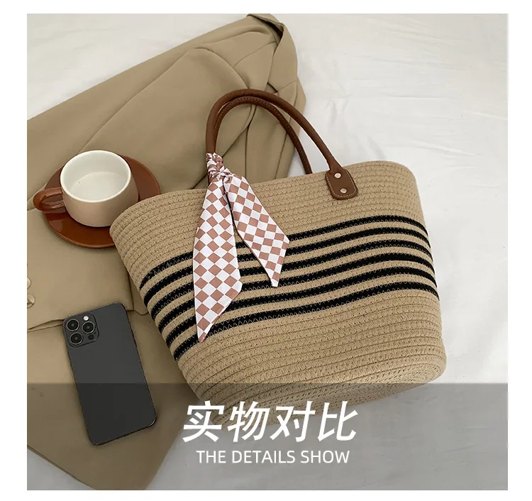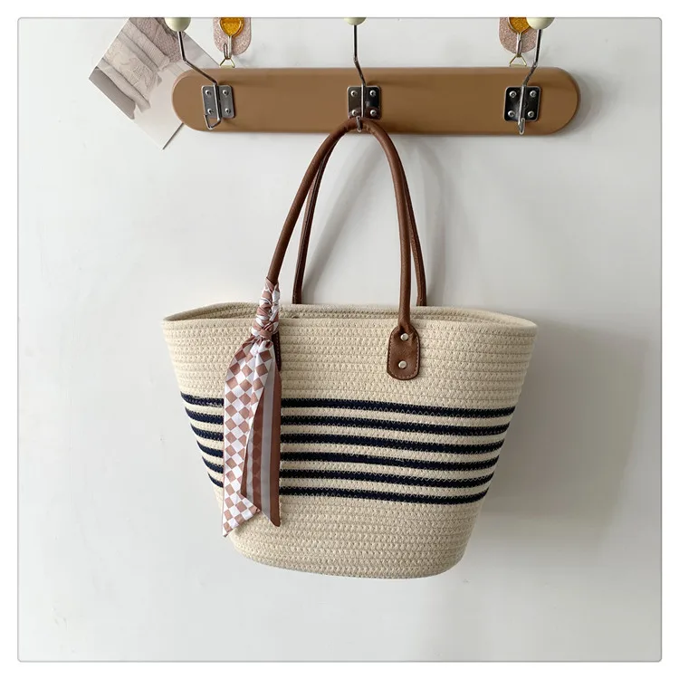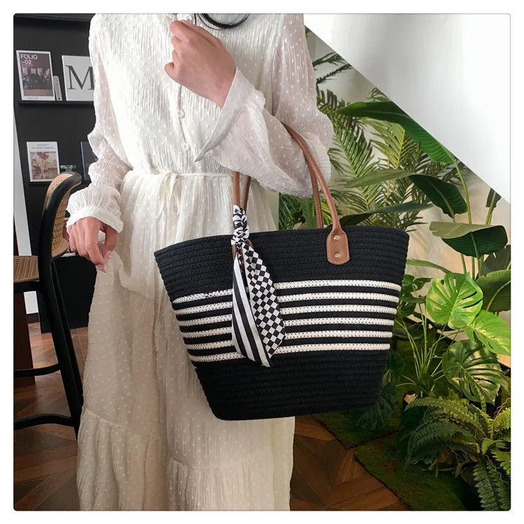 Kylethomasw Cross Border Scarf Straw Woven Shoulder Bag 2024 New Summer French Commuter Shoulder Bag Leisure Large Capacity Woven Bucket Bag
