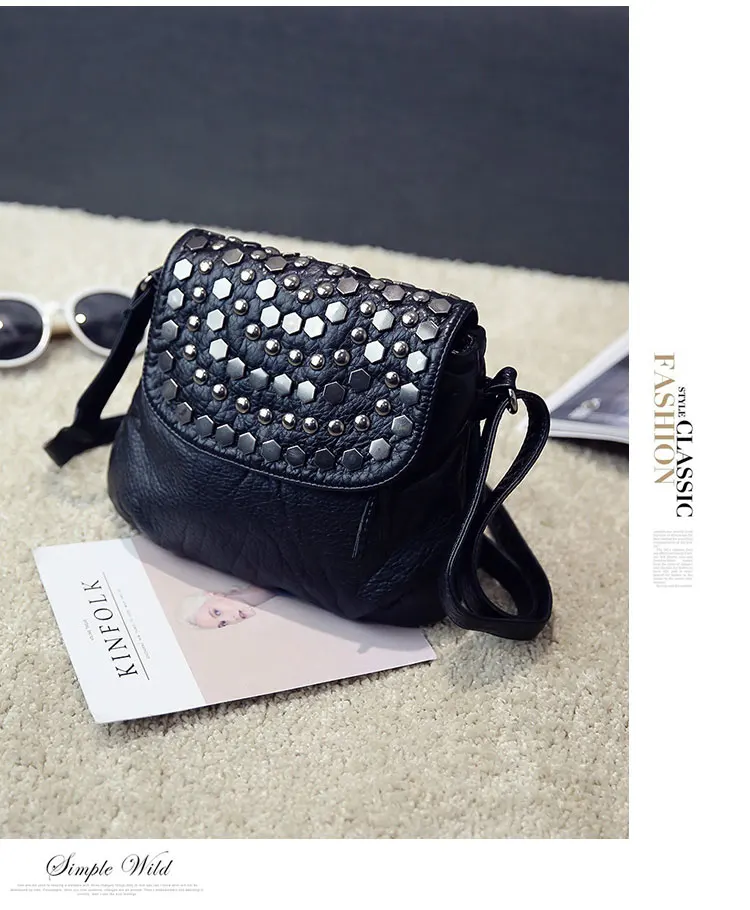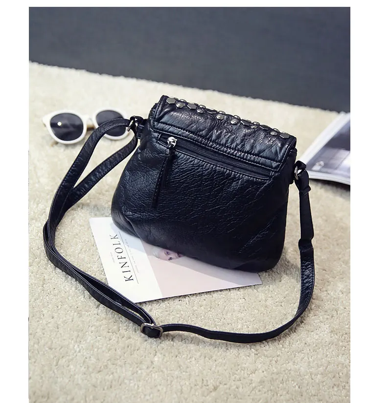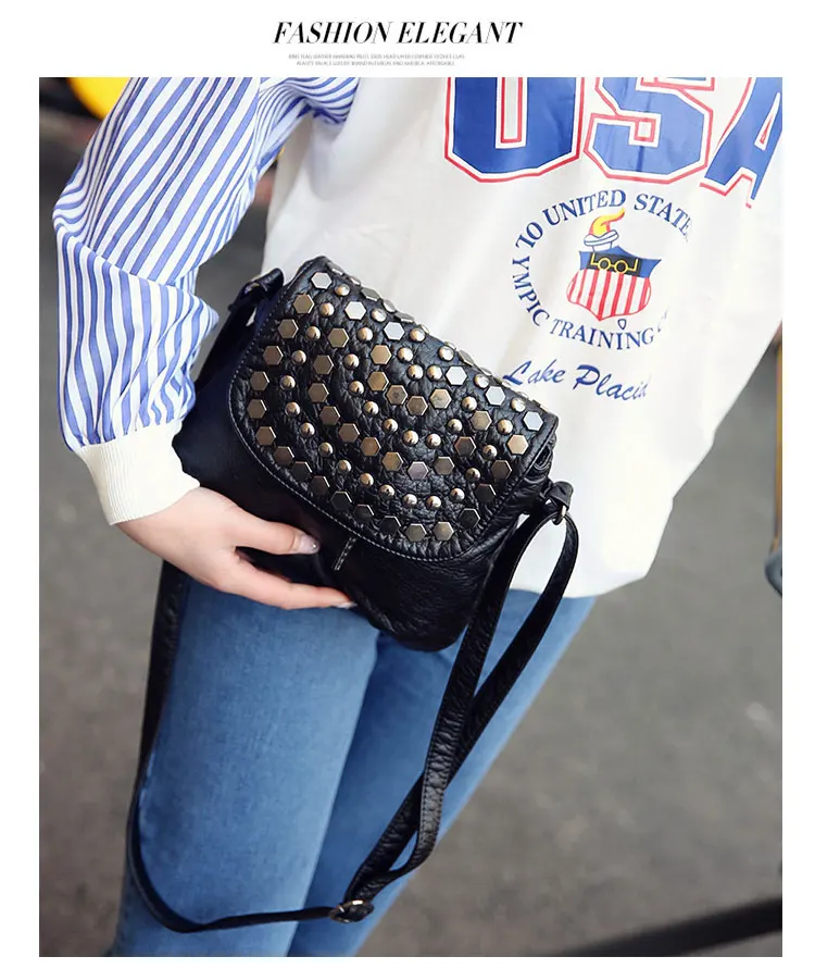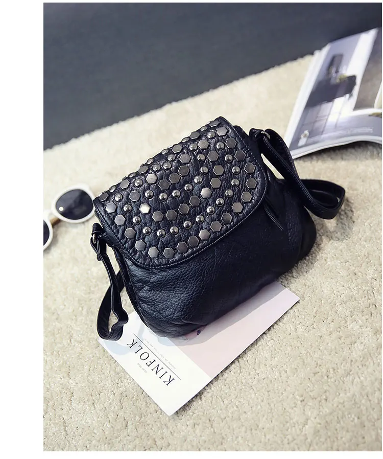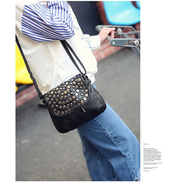 Kylethomasw Daily Fashion Commuting Bag Women's New Wash Leather Double Layer Korean Fashion Rivet Single Shoulder Messenger Soft