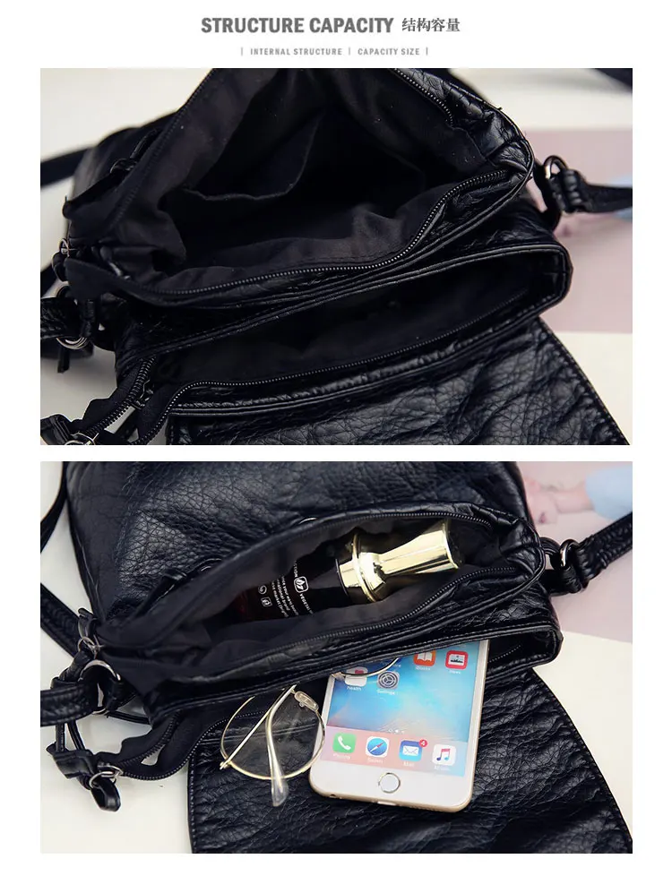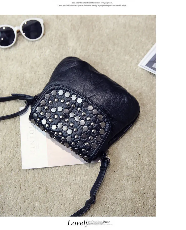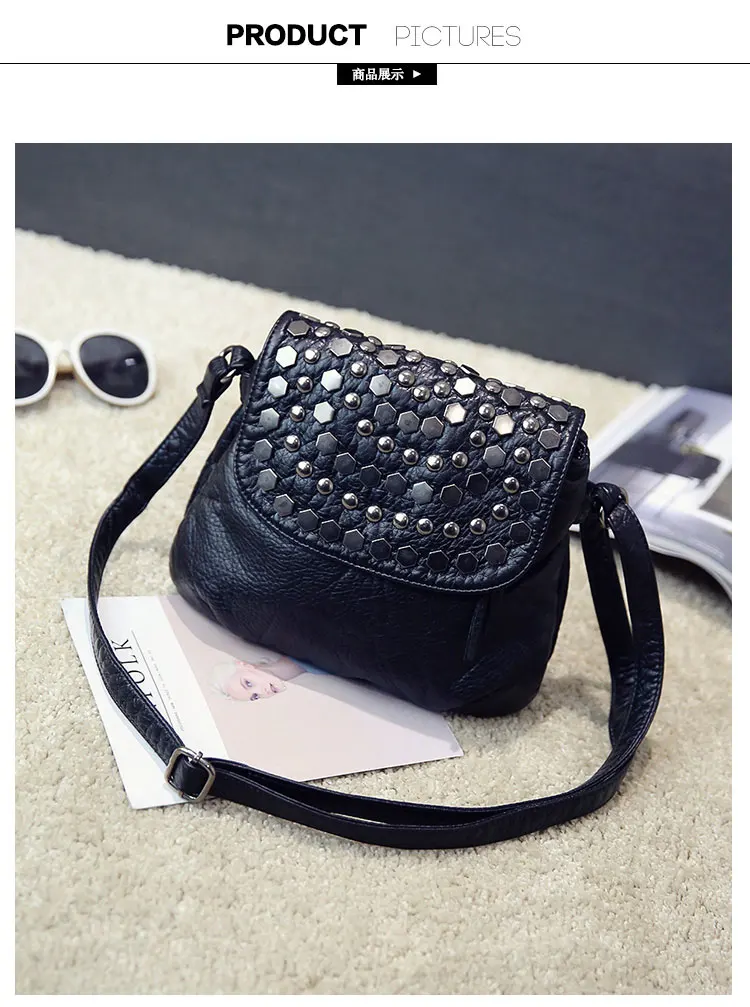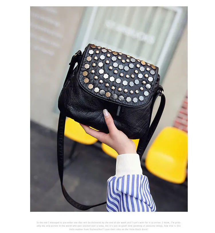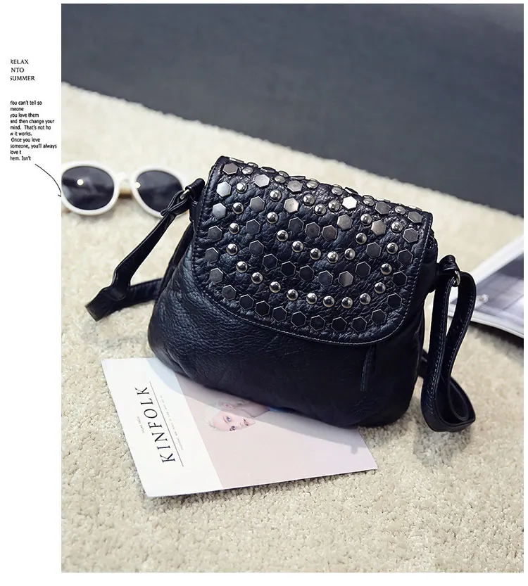 Kylethomasw Daily Fashion Commuting Bag Women's New Wash Leather Double Layer Korean Fashion Rivet Single Shoulder Messenger Soft
