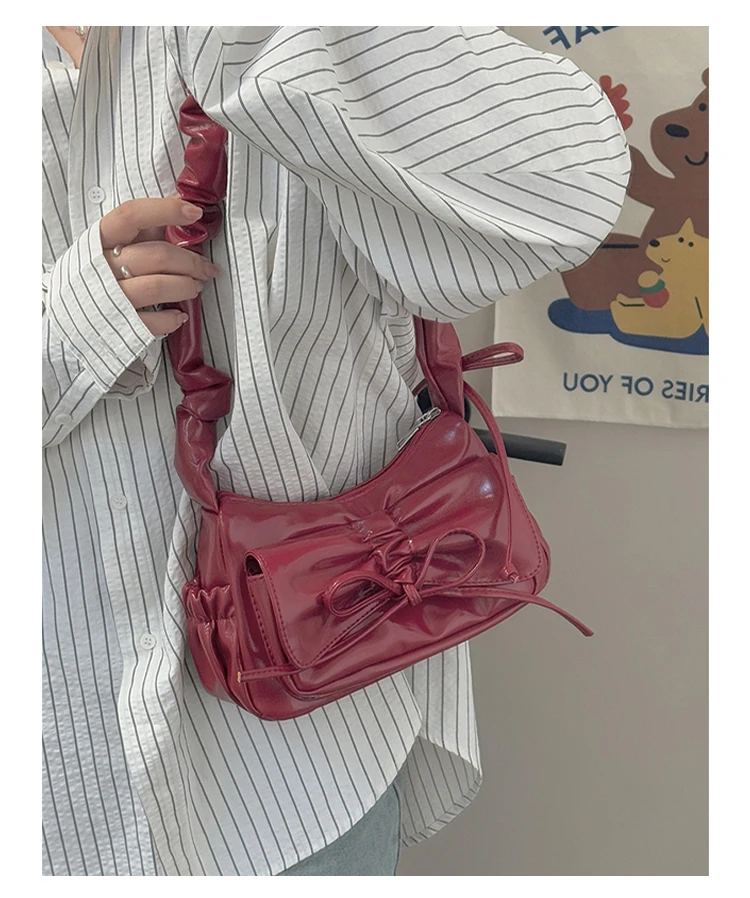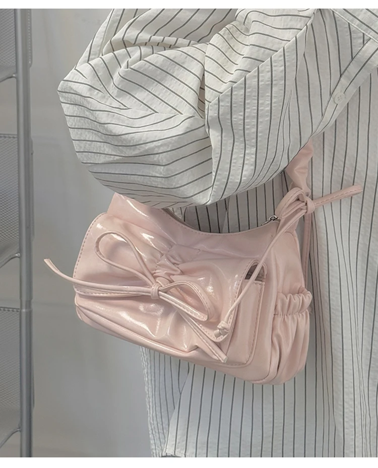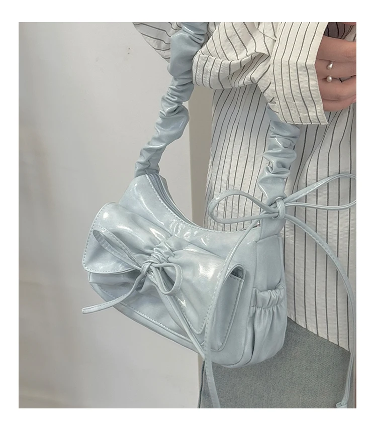 KYLETHOMASW  -  Fashion Bow Women's Bag 2025 Summer New Single Shoulder Underarm Drawstring Pleated Crossbody Square Bags