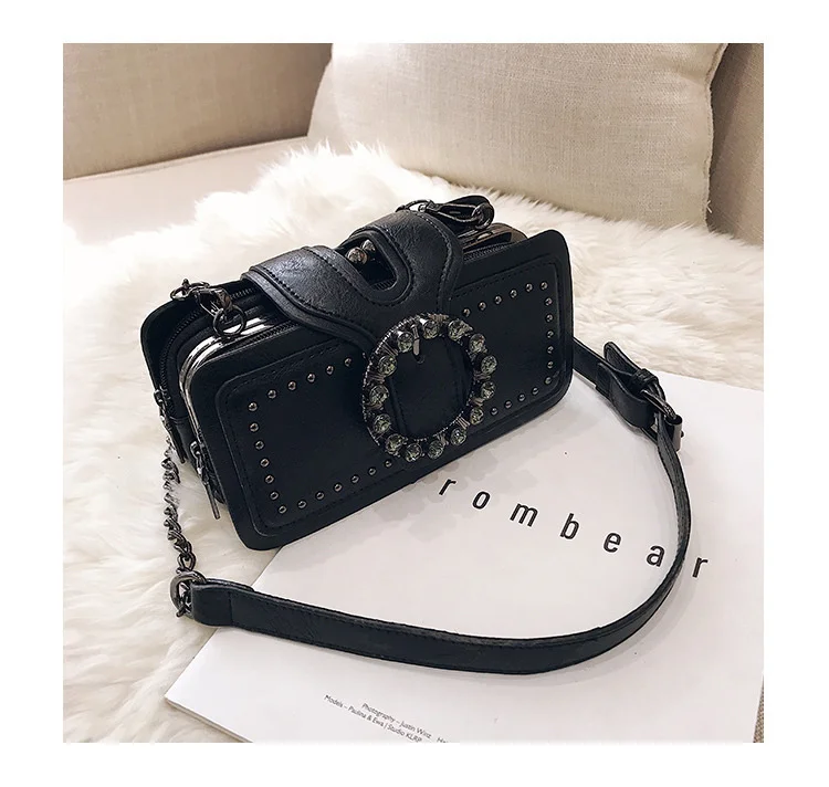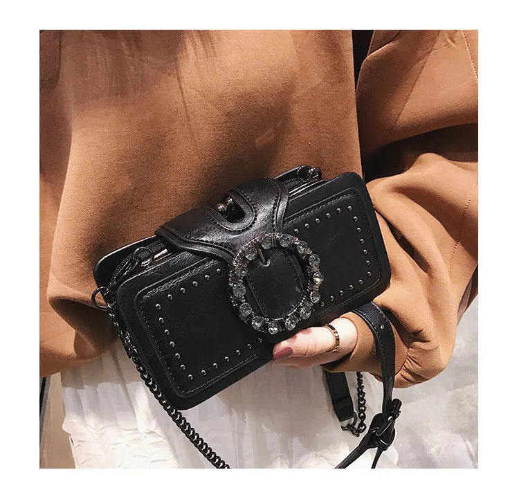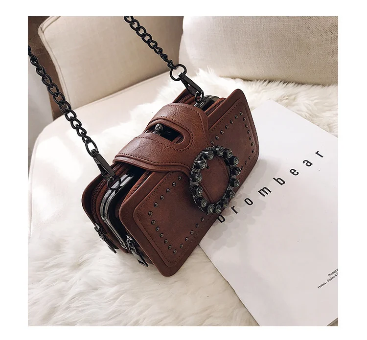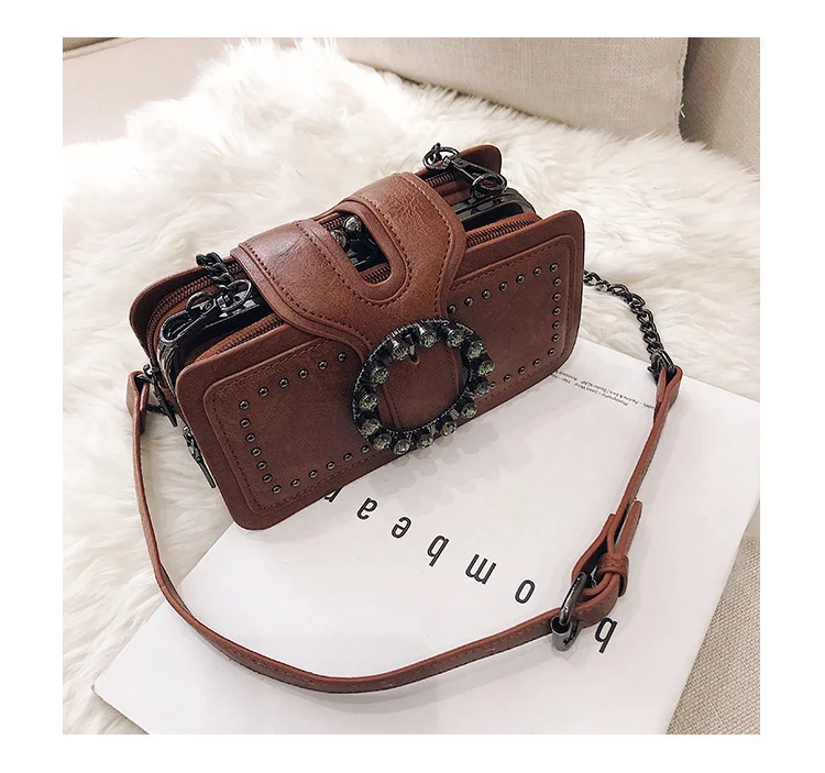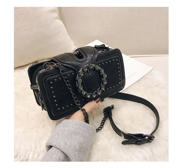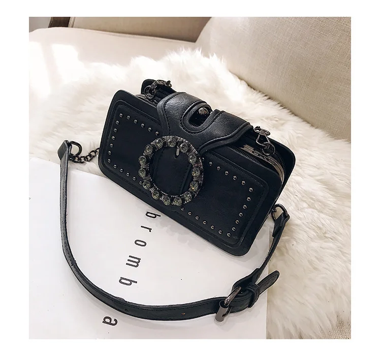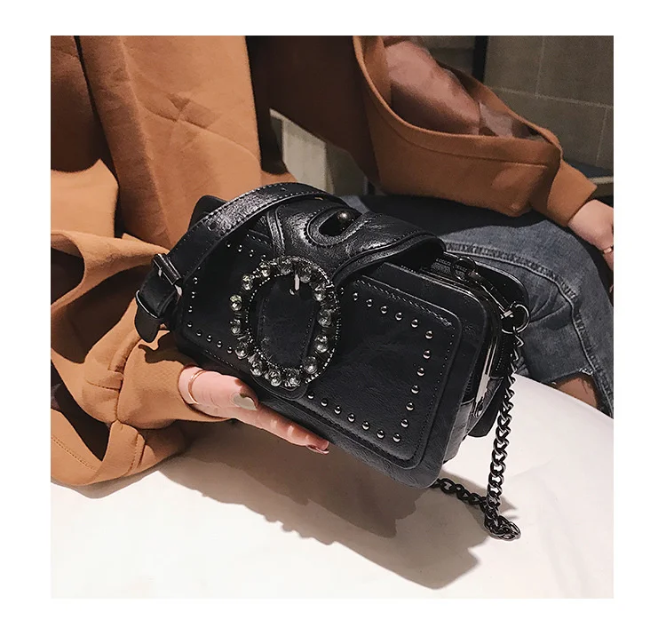 Kylethomasw Heavy Metal Fashion - Retro Women Shoulder Bags Diamond Flap Cross-body Bag Machine Punk Style All-match Messenger Bags
