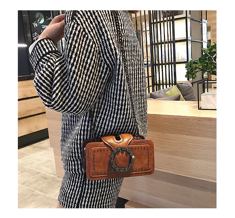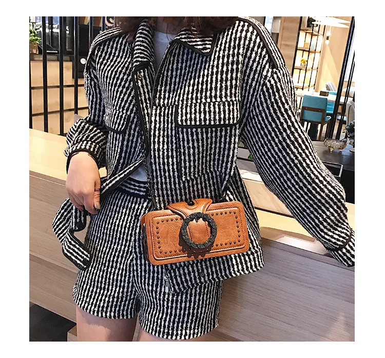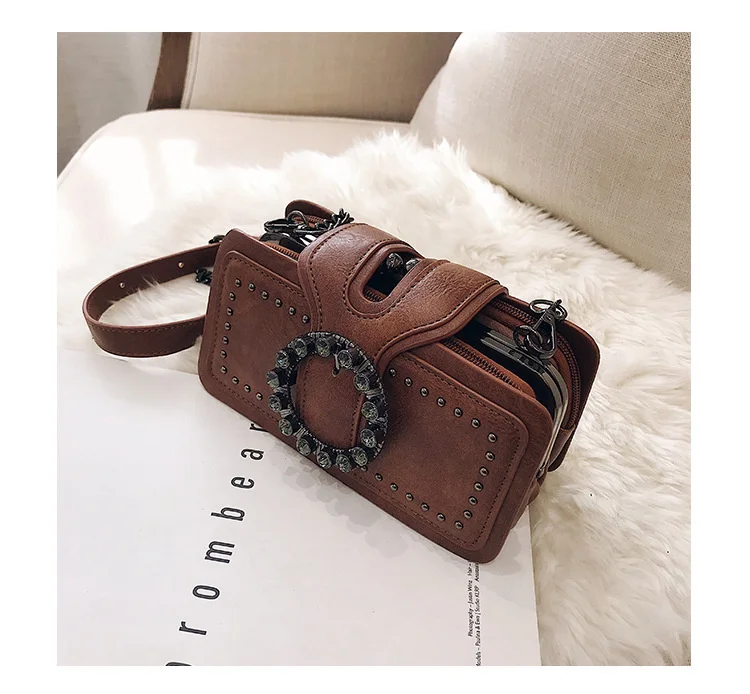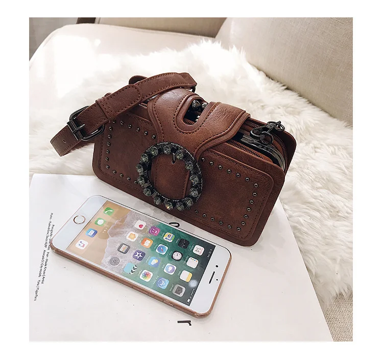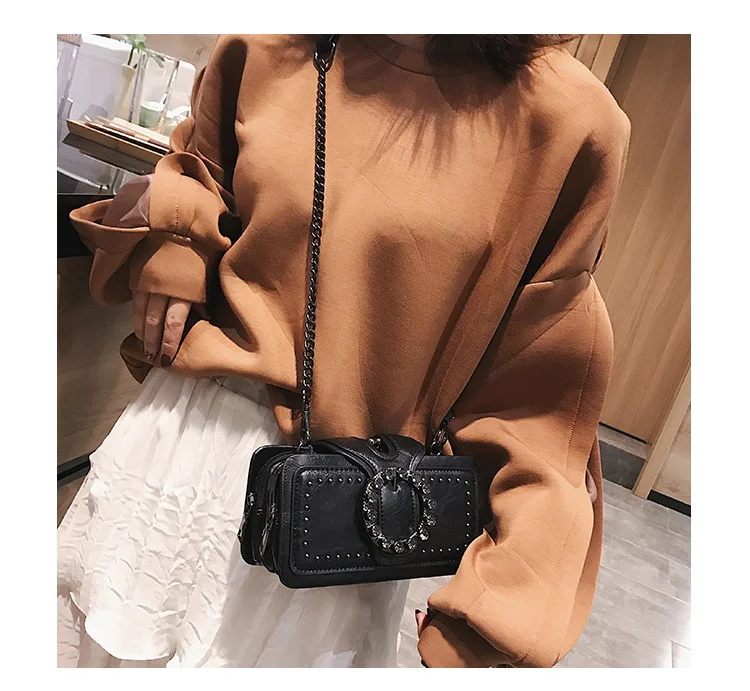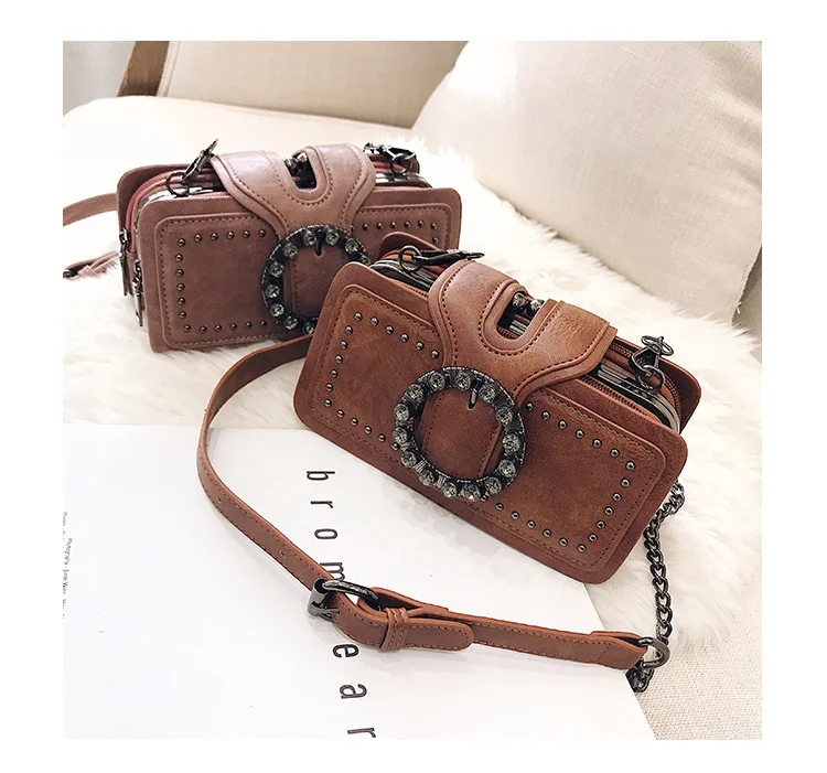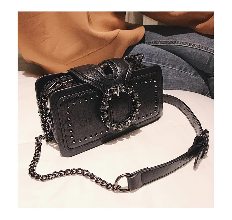 Kylethomasw Heavy Metal Fashion - Retro Women Shoulder Bags Diamond Flap Cross-body Bag Machine Punk Style All-match Messenger Bags