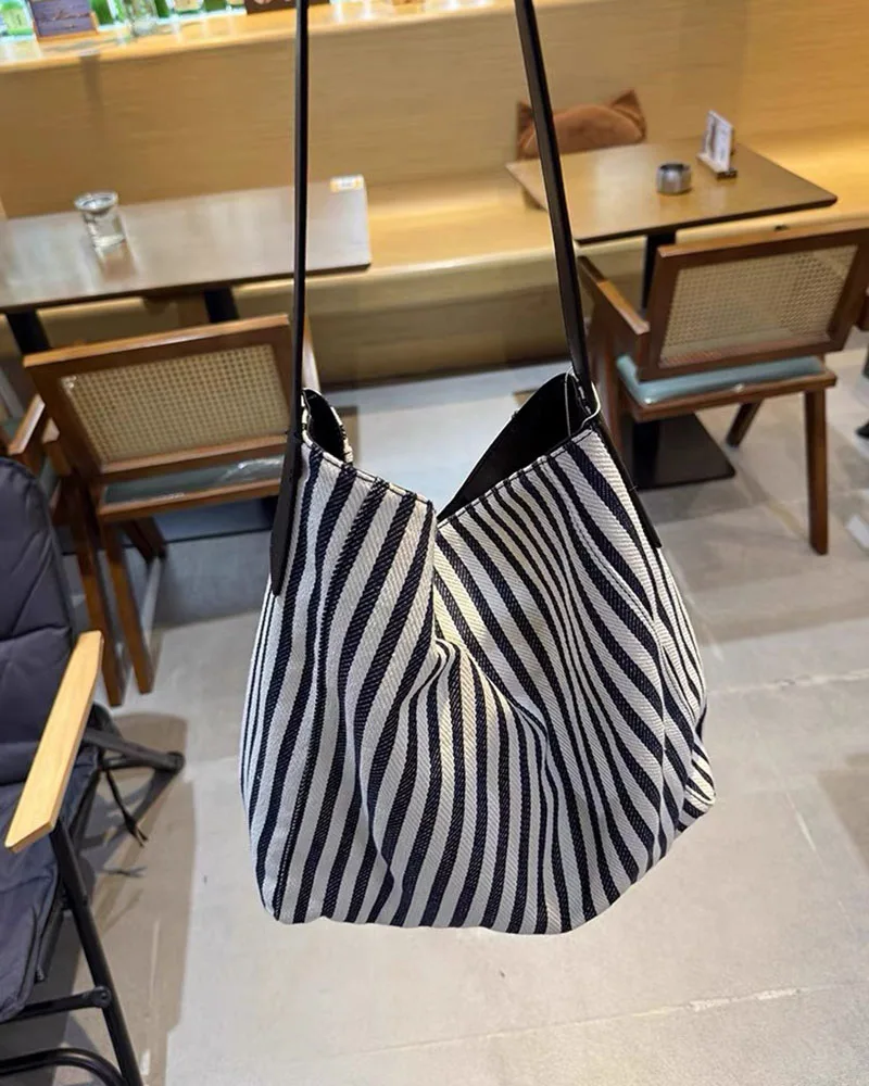 KYLETHOMASW - Ins Striped Canvas Tote Bag 2025 Summer New Large Capacity Casual Versatile Single Shoulder Underarm Bags