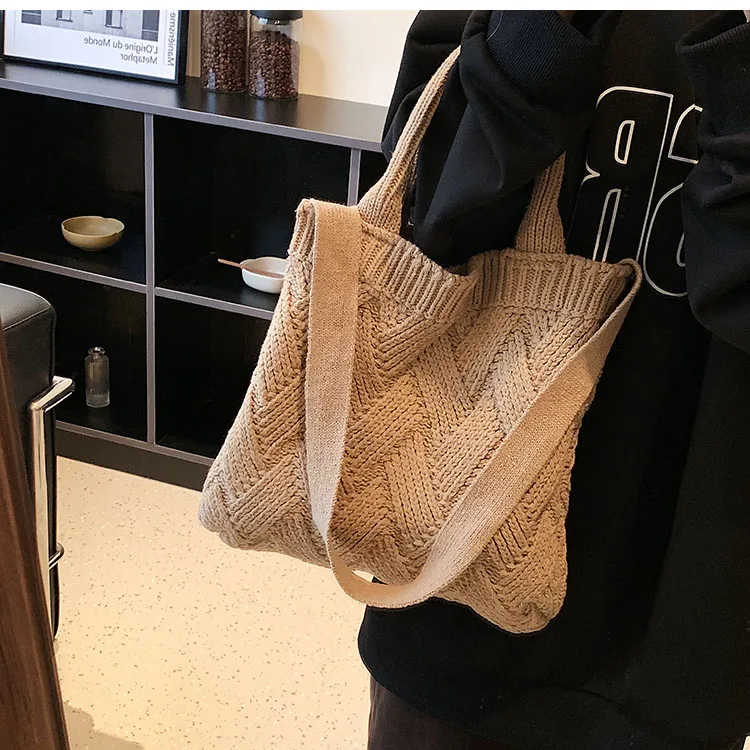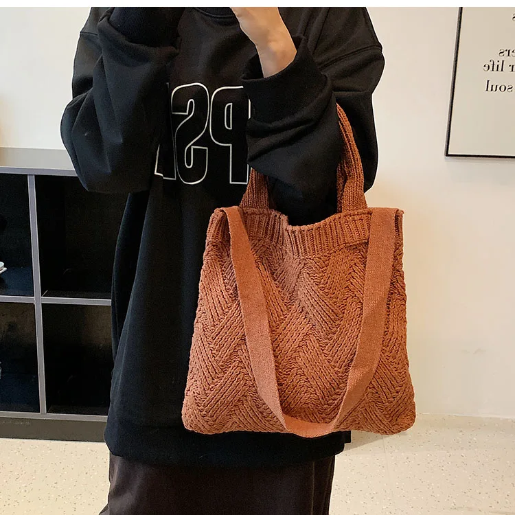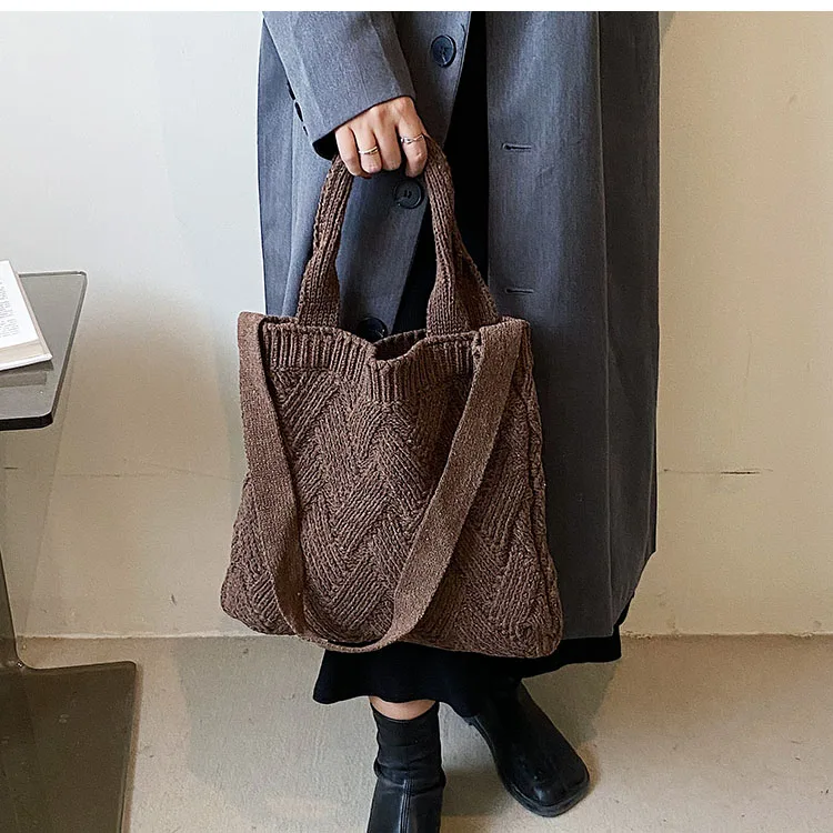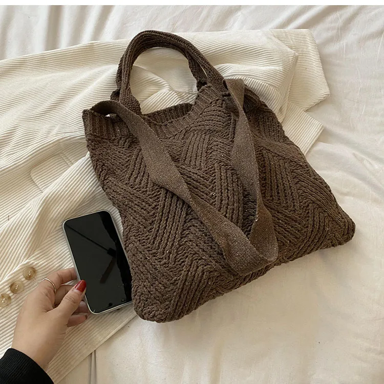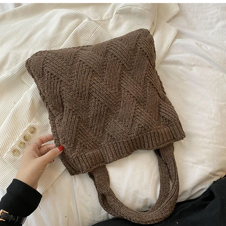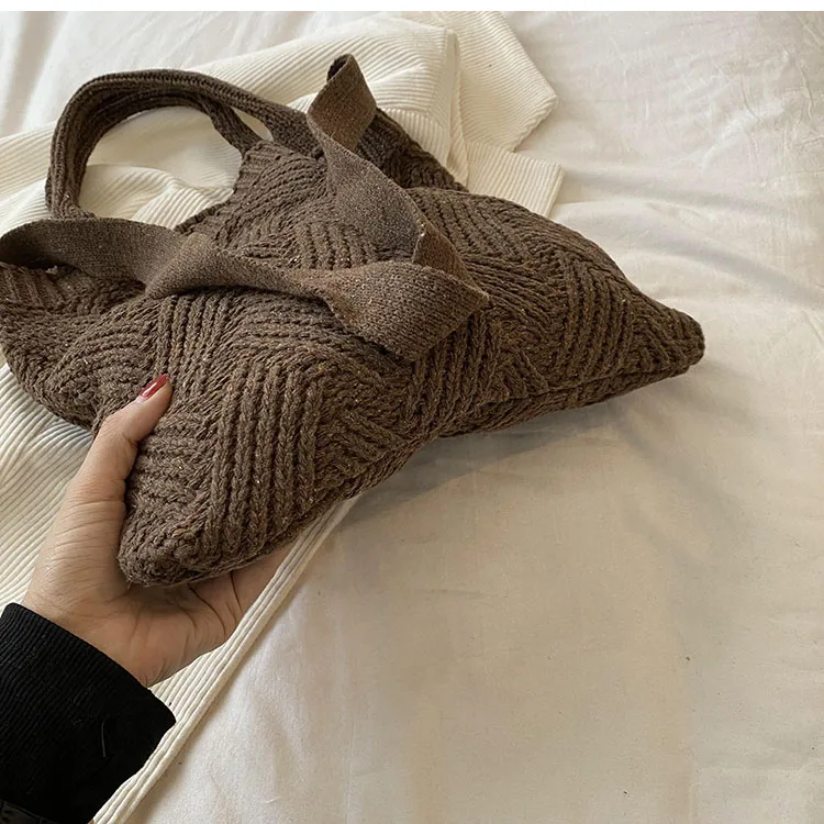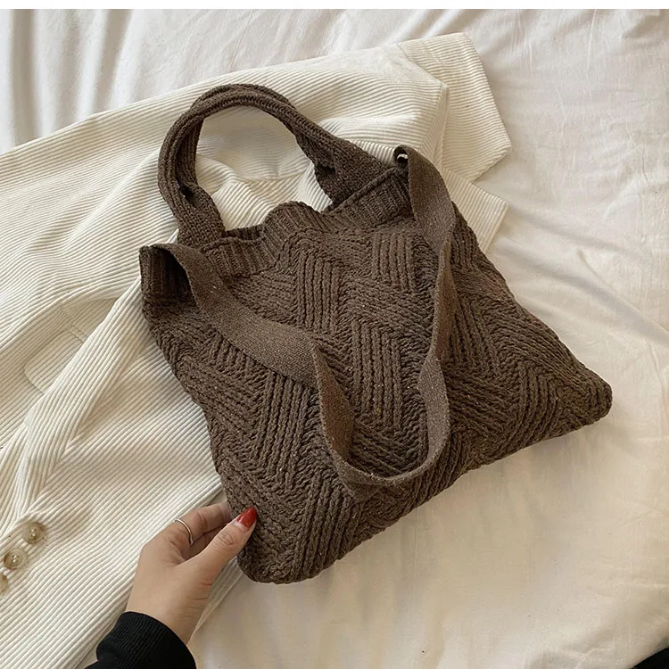 Kylethomasw - Luxury design handbags for women winter wool knitting the tote bag Fashion Shoulder Female bag Women's purses messenger bag