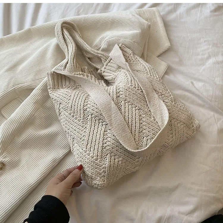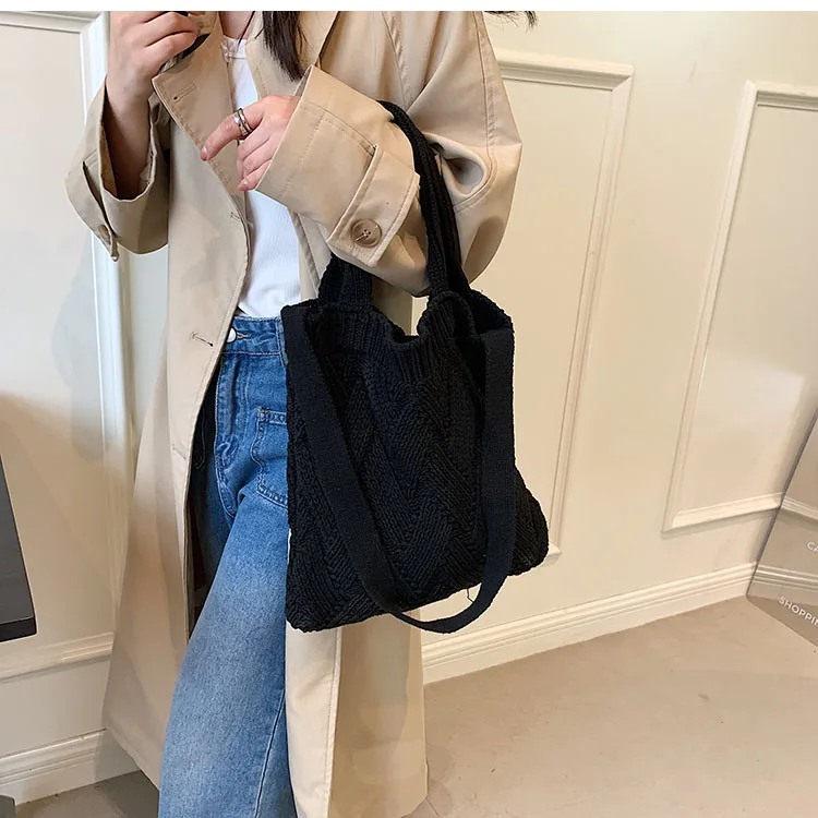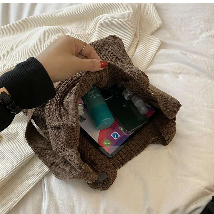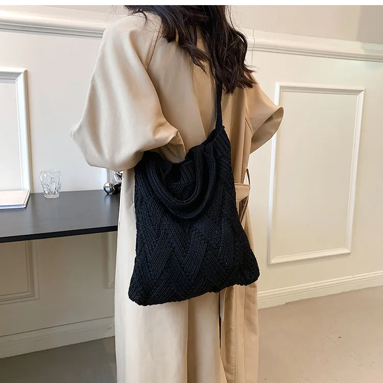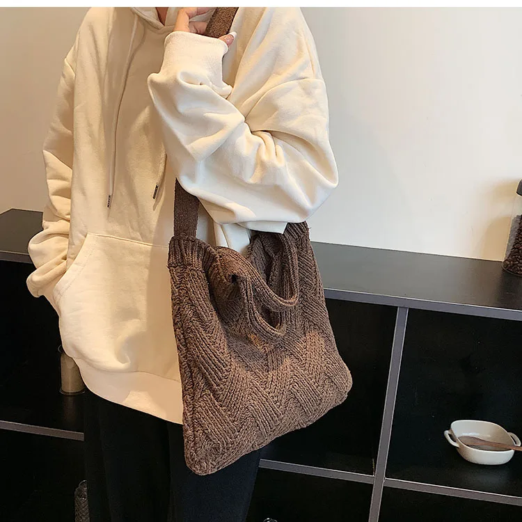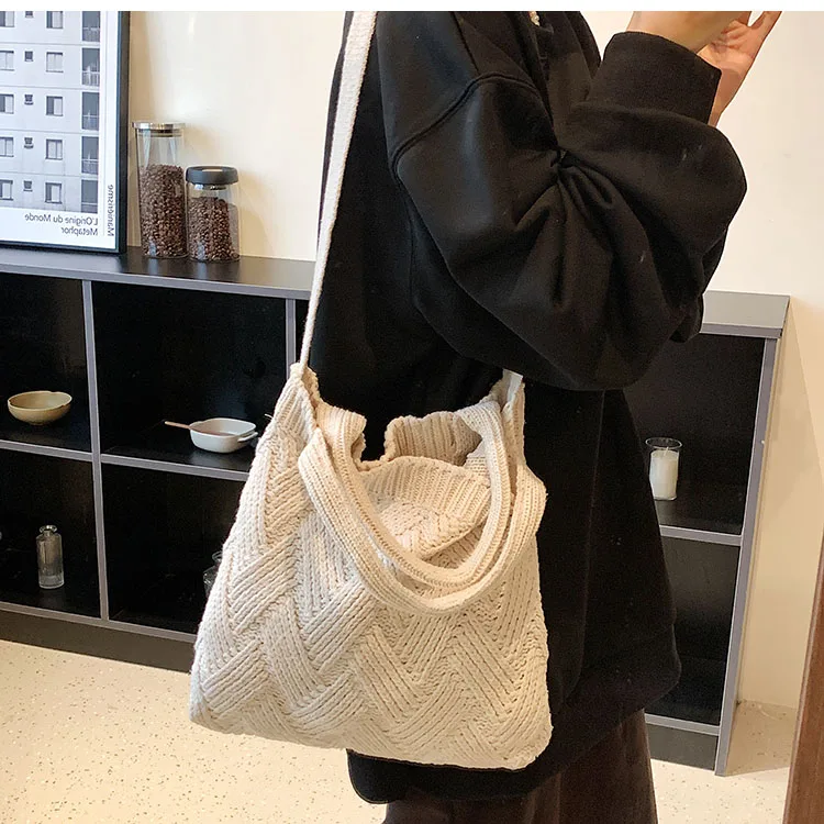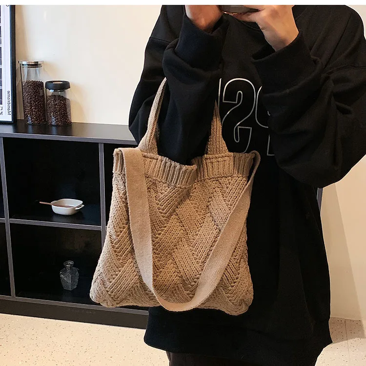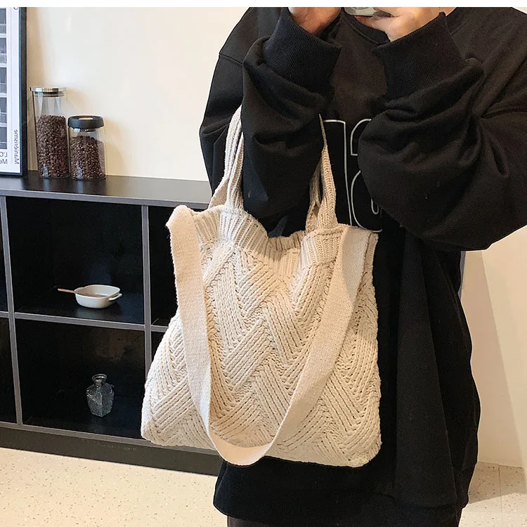 Kylethomasw - Luxury design handbags for women winter wool knitting the tote bag Fashion Shoulder Female bag Women's purses messenger bag