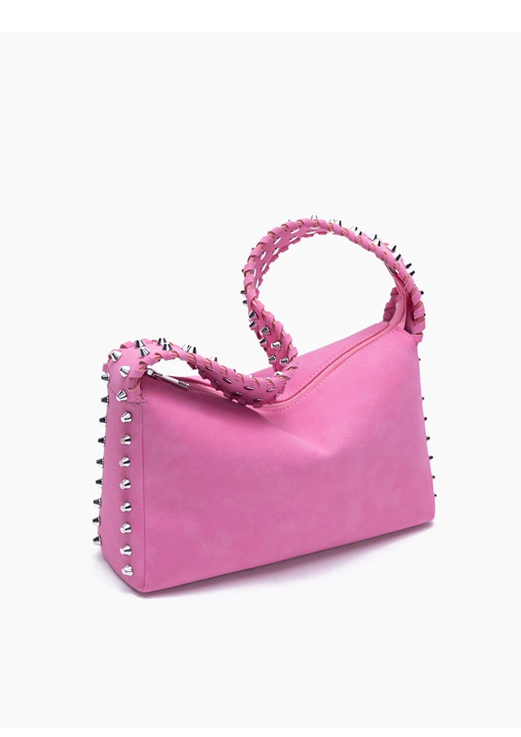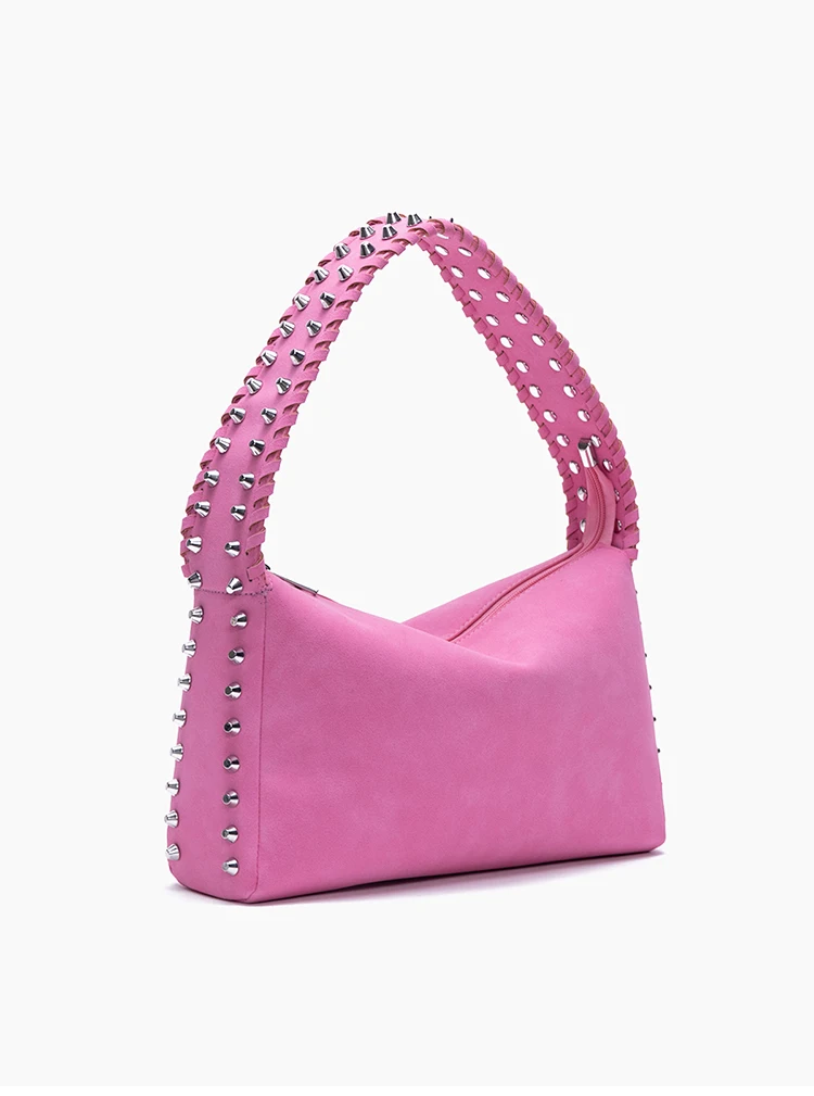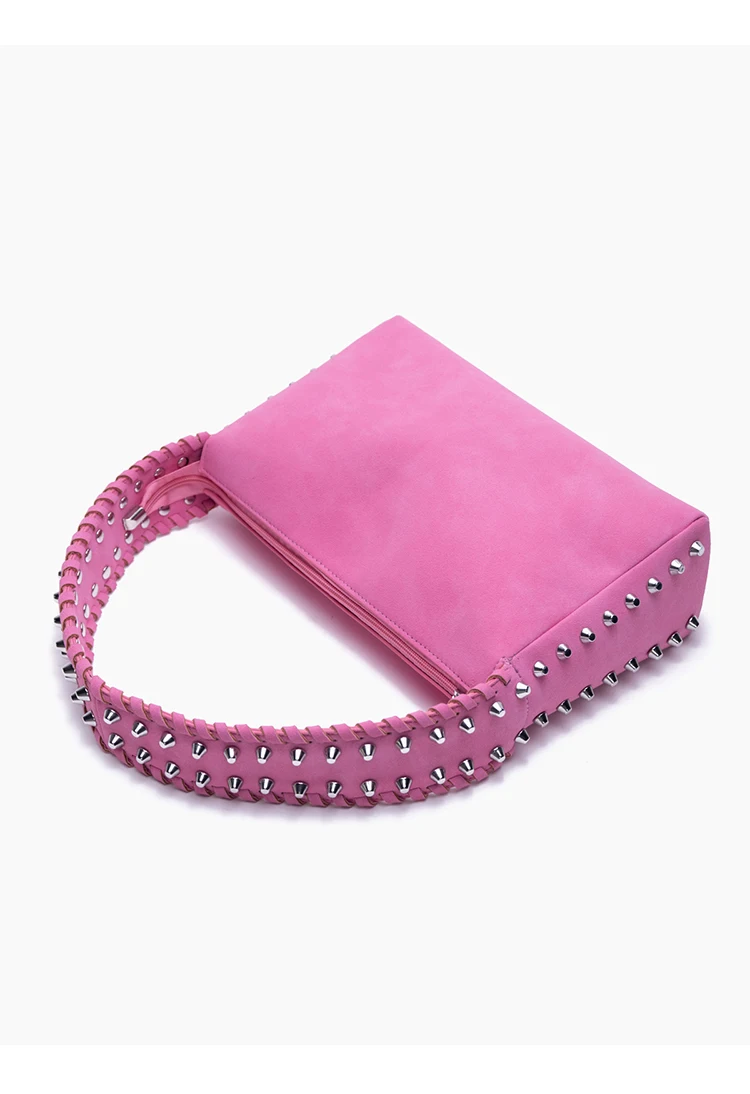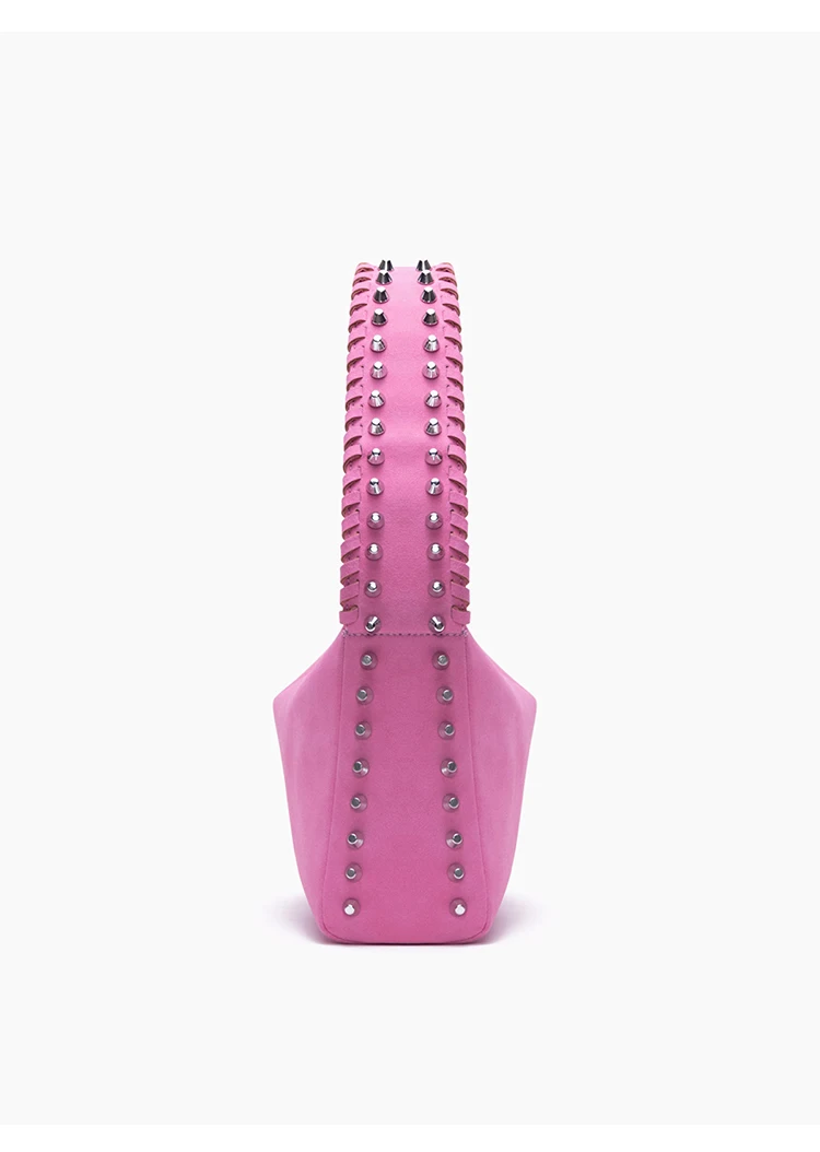 KYLETHOMASW - Niche design rivet braided rope wide shoulder strap matte fleece underarm locomotive bag bright hobo tote bag