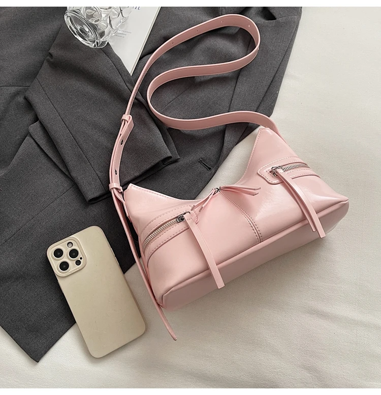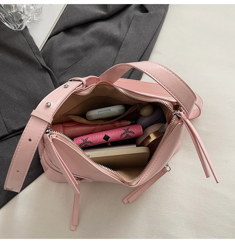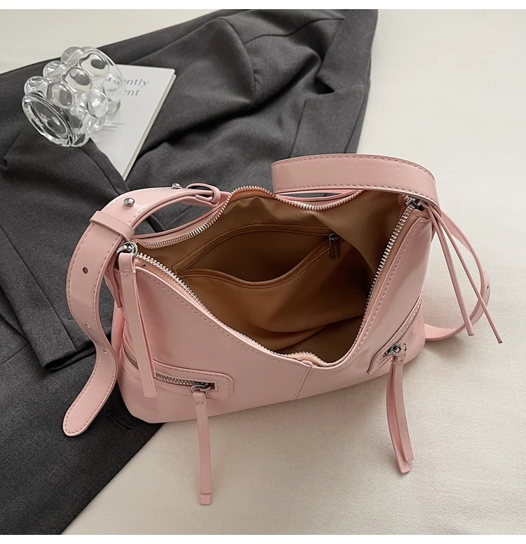 KYLETHOMASW - Niche Soft Leather Motorcycle Bag for Women 2025 New Trendy Style Single Shoulder Armpit Bag Korean Fashion Sexy Baguette Bag