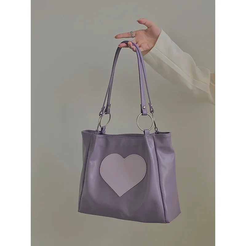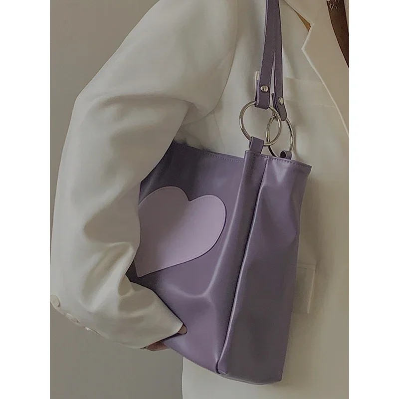 Kylethomasw PU Fashion Design New Women's Shoulder Bag, Heart-shaped, Women's Underarm Bag, Women's Small Handbag, Cool Girl, Purple Bags