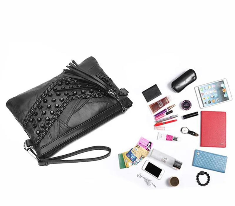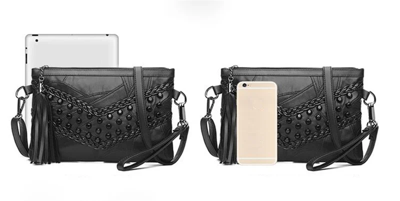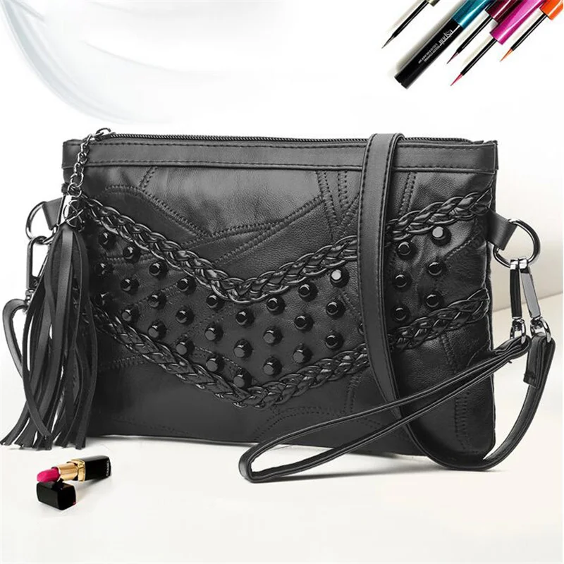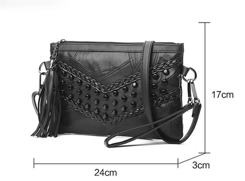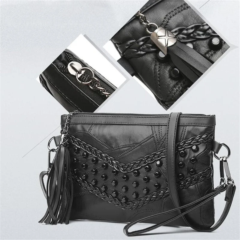Kylethomasw Retro Rivet Envelope Shoulder Bags for Women Small Messenger Bag PU Leather Lady Pouch Bag Black bolsos mujer Purse