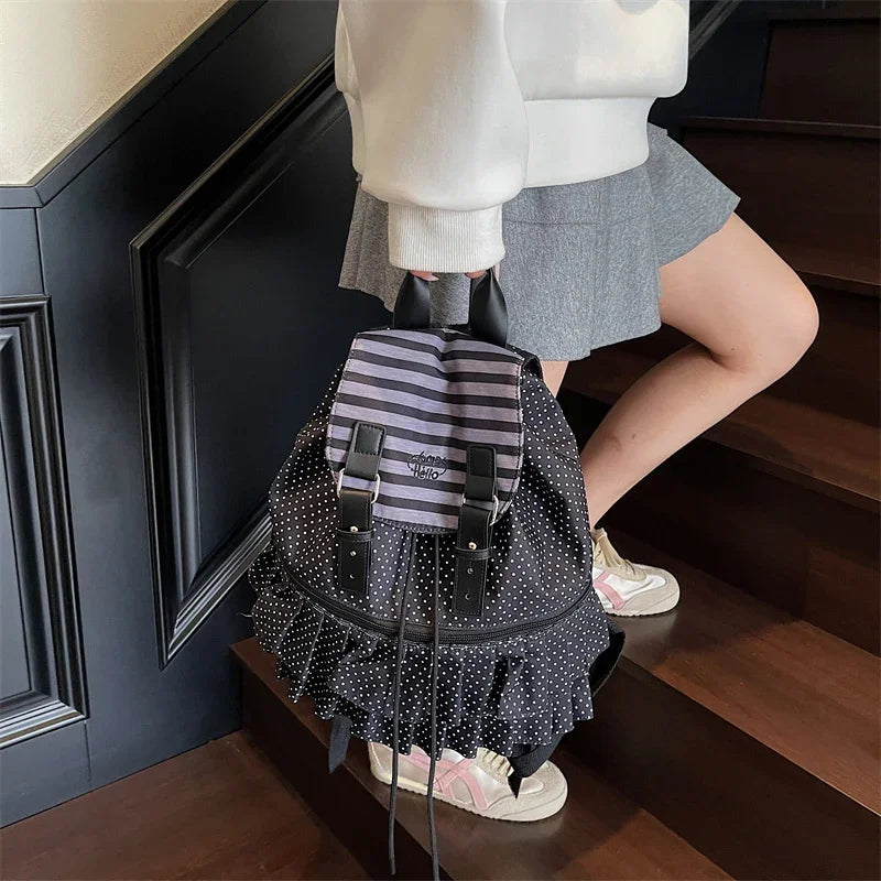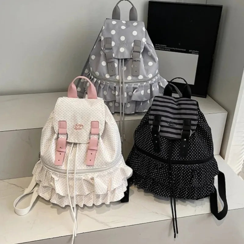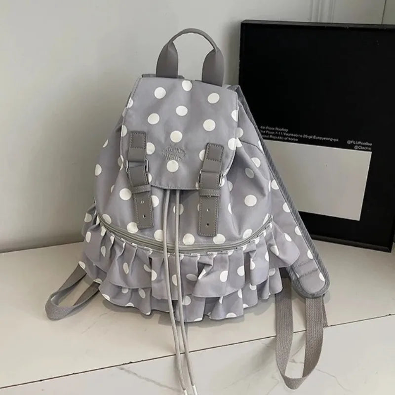 KYLETHOMASW - Ruffles Spliced Mochilas Mujer Polka Dot Print Mochila High Capacity Bag Holiday Travel Backpack New Canvas Bags for Woman