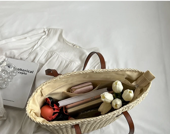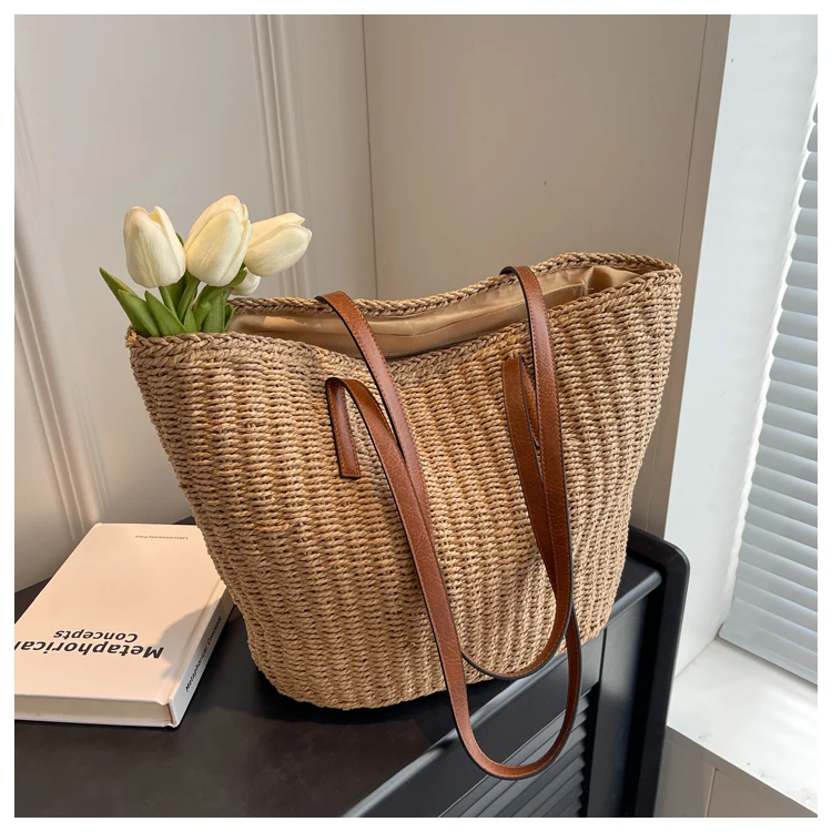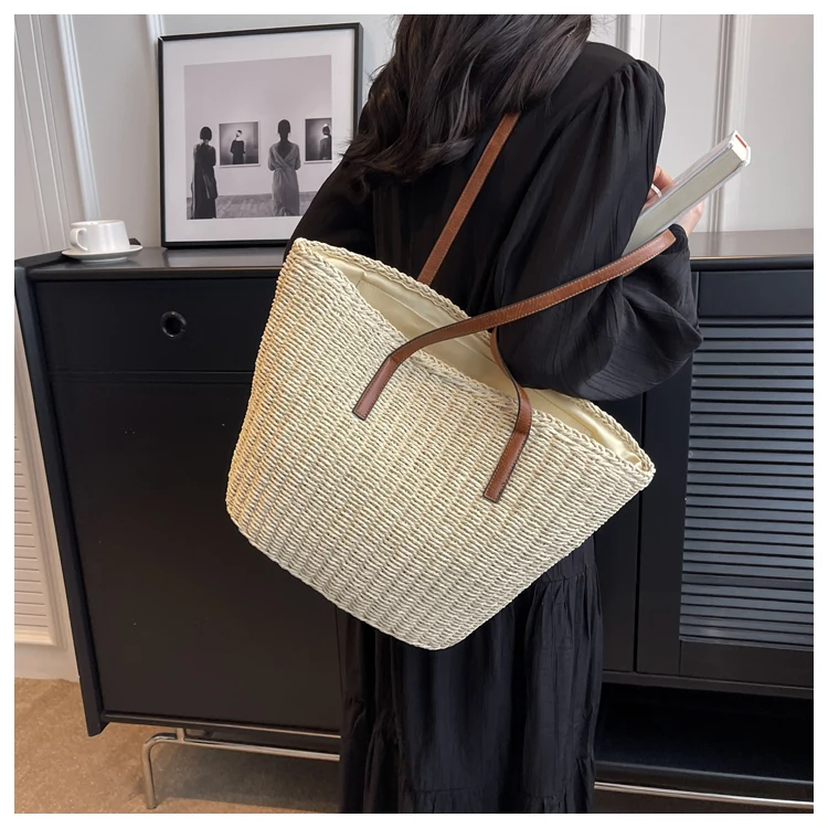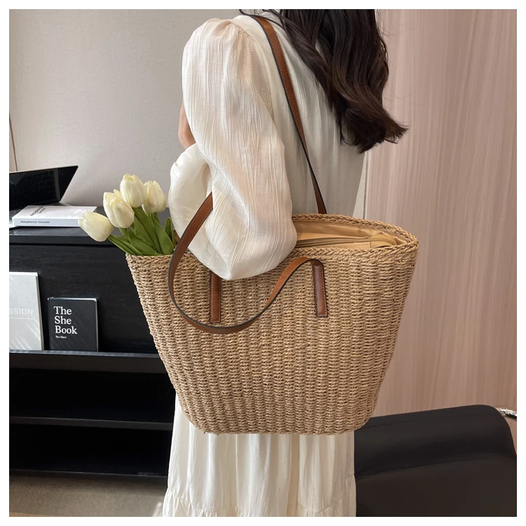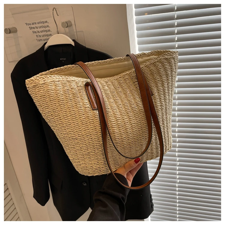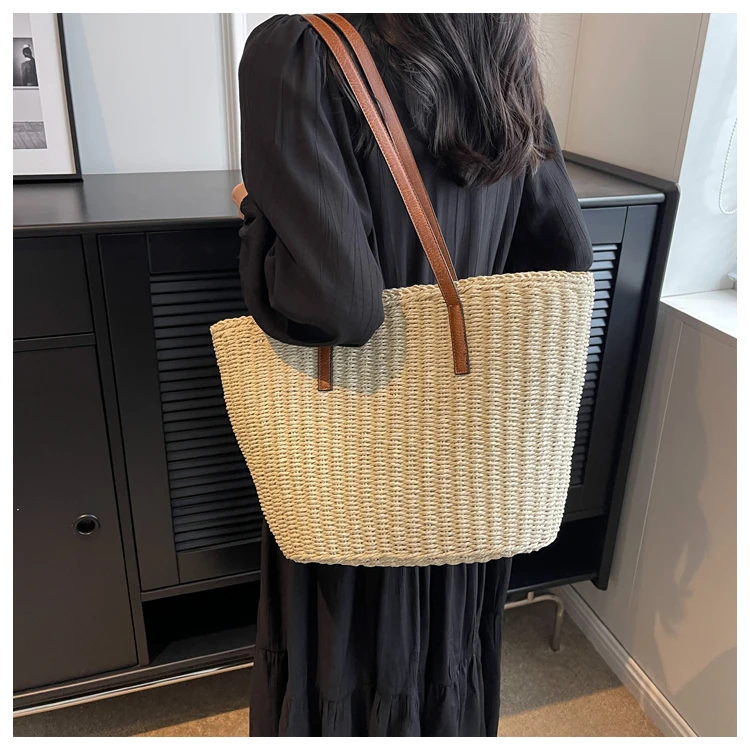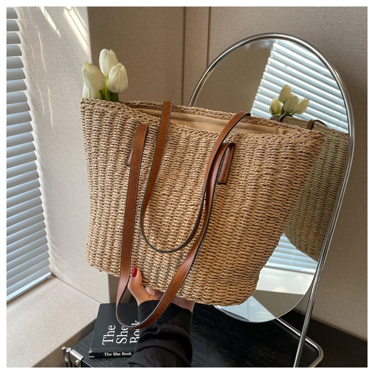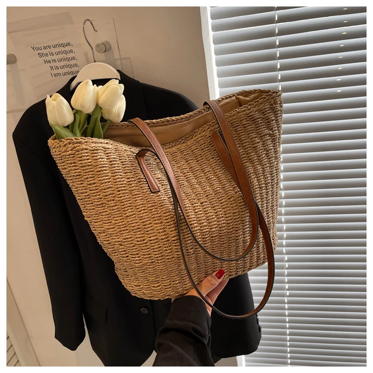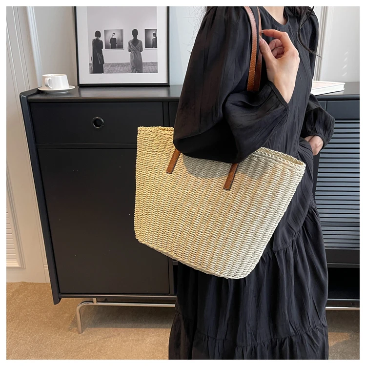 Kylethomasw Straw Shopping Tote Bags Beach Woven Purses And Handbags Luxury Designer Large Capacity Shoulder Travel Bag Ladies Work 2023
