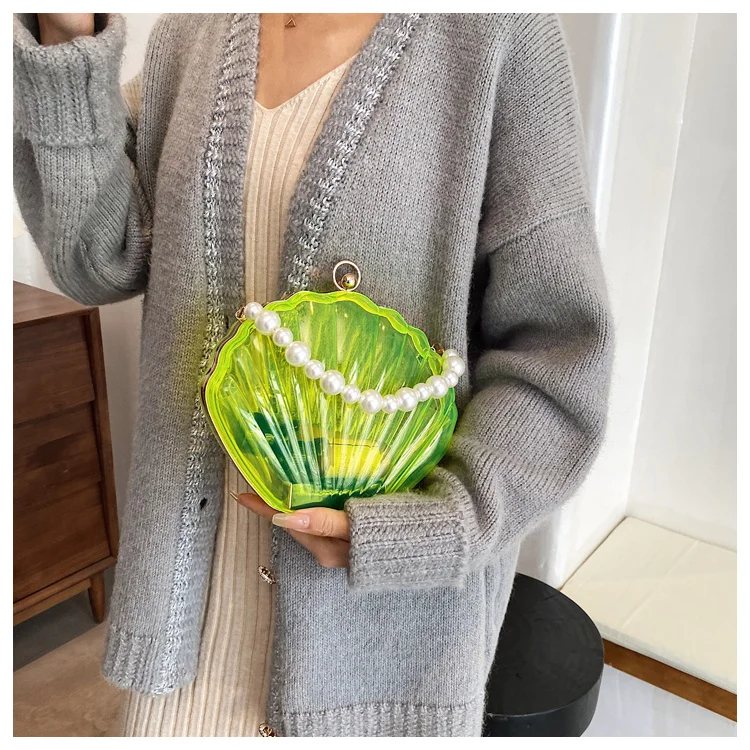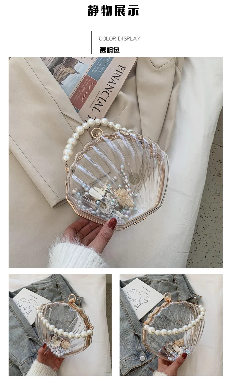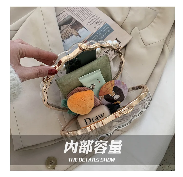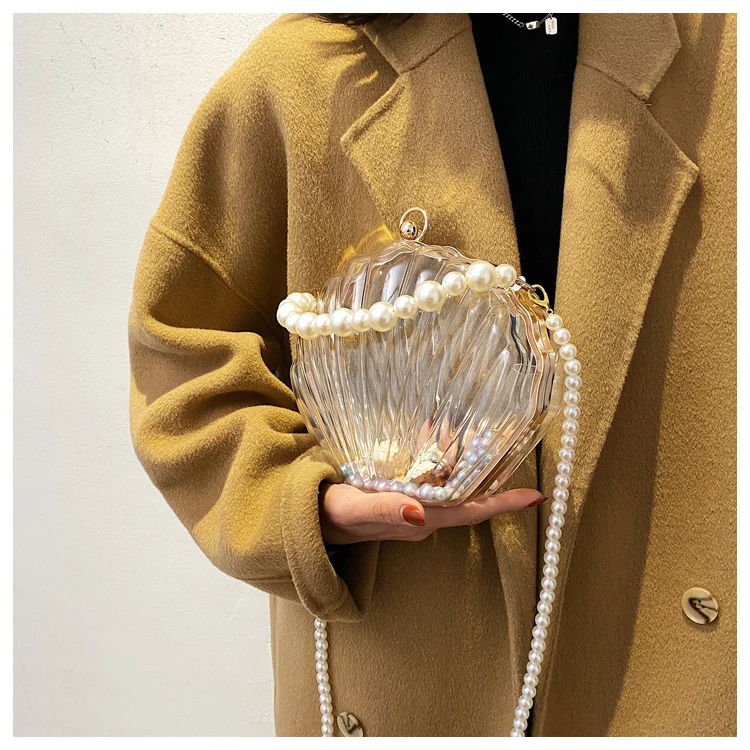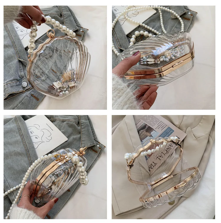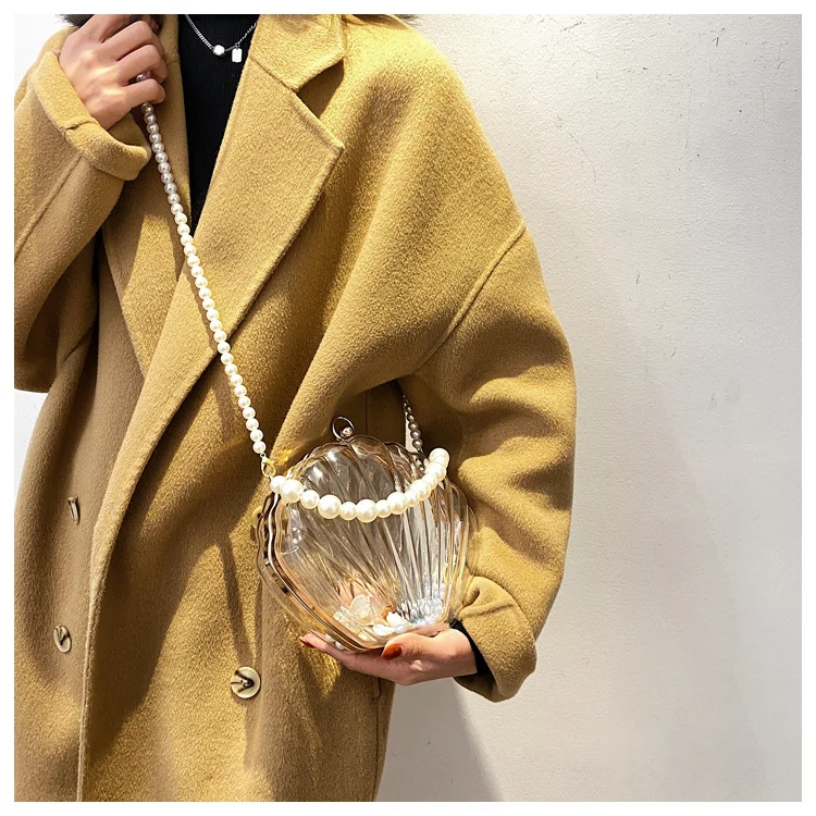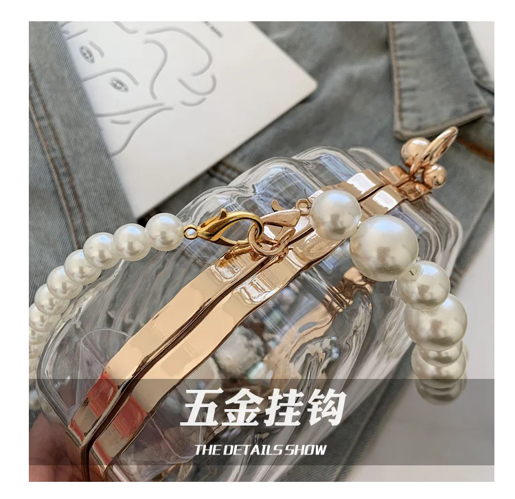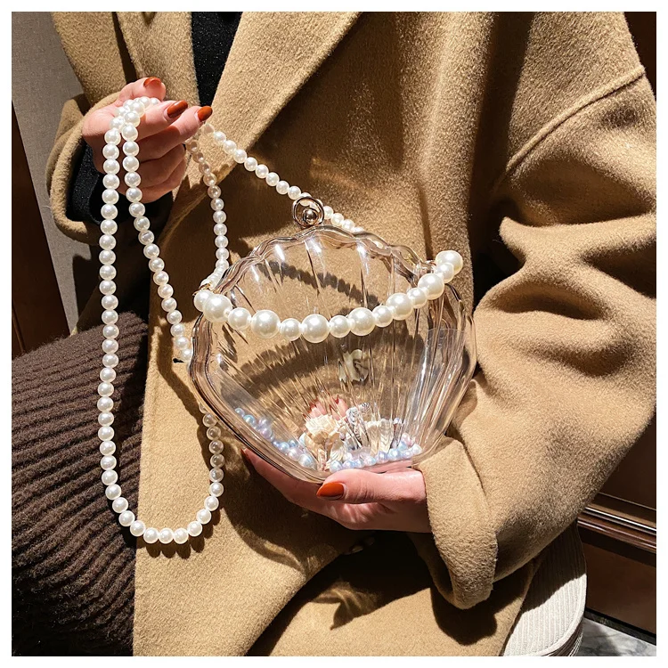 Kylethomasw Transparent Acrylic Tote Shell bag Fashion New High quality PVC Women's Designer Handbag Pearl strap Shoulder Messenger Bag