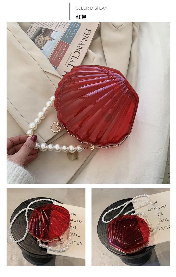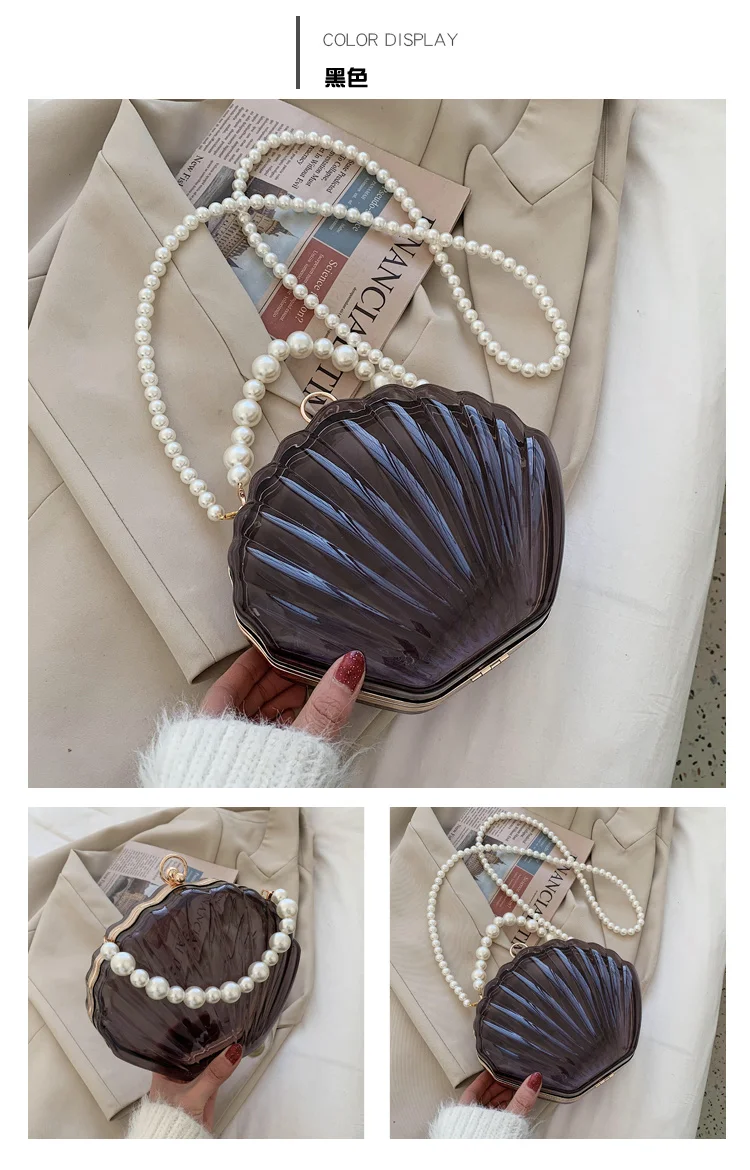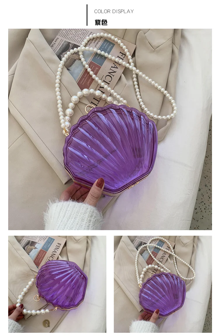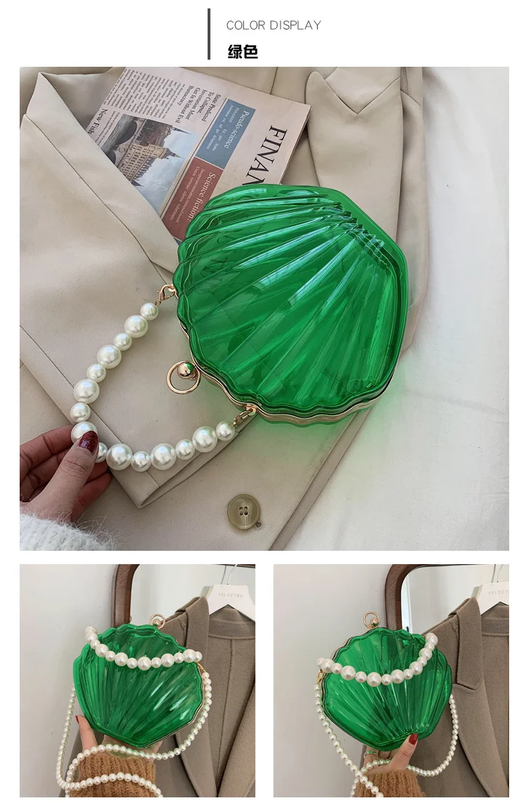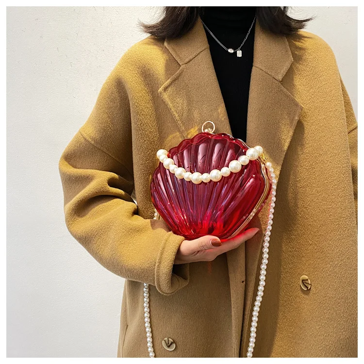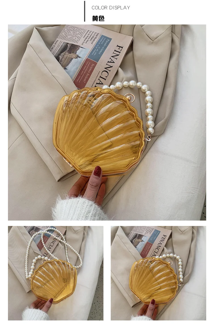 Kylethomasw Transparent Acrylic Tote Shell bag Fashion New High quality PVC Women's Designer Handbag Pearl strap Shoulder Messenger Bag