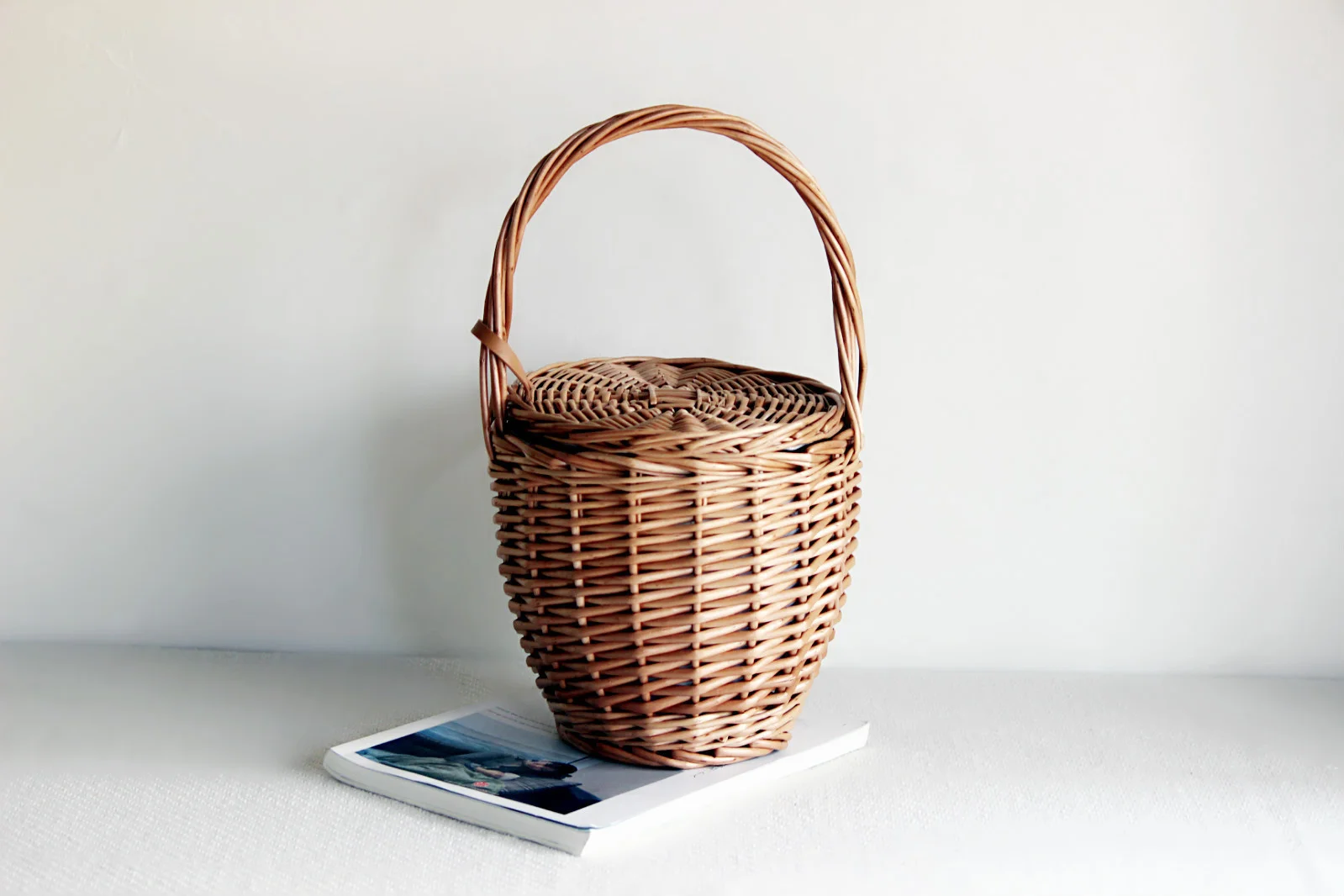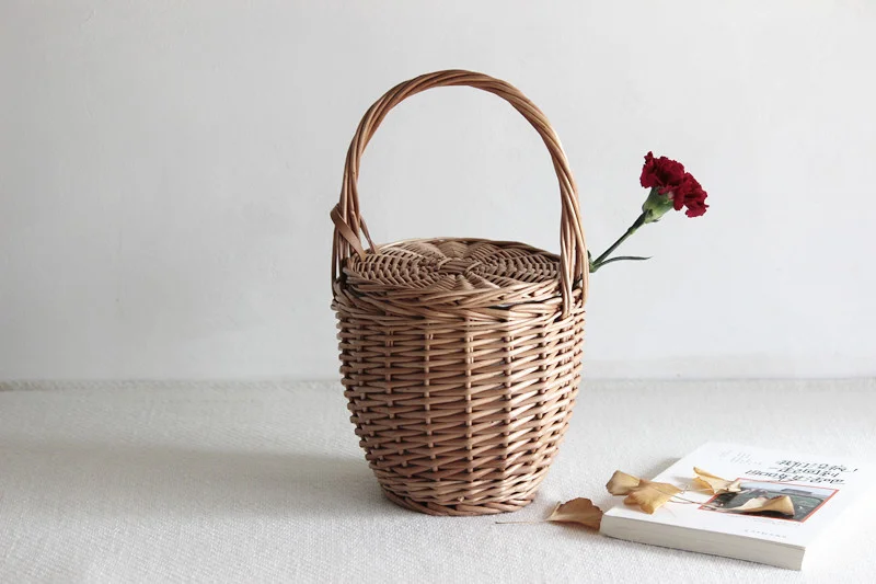Kylethomasw Women Beach Handbag Basket Straw Hand Bag Cover Fashion Summer New Wicker Small Retro Rattan Tote Travel Clutch Bag Handmade