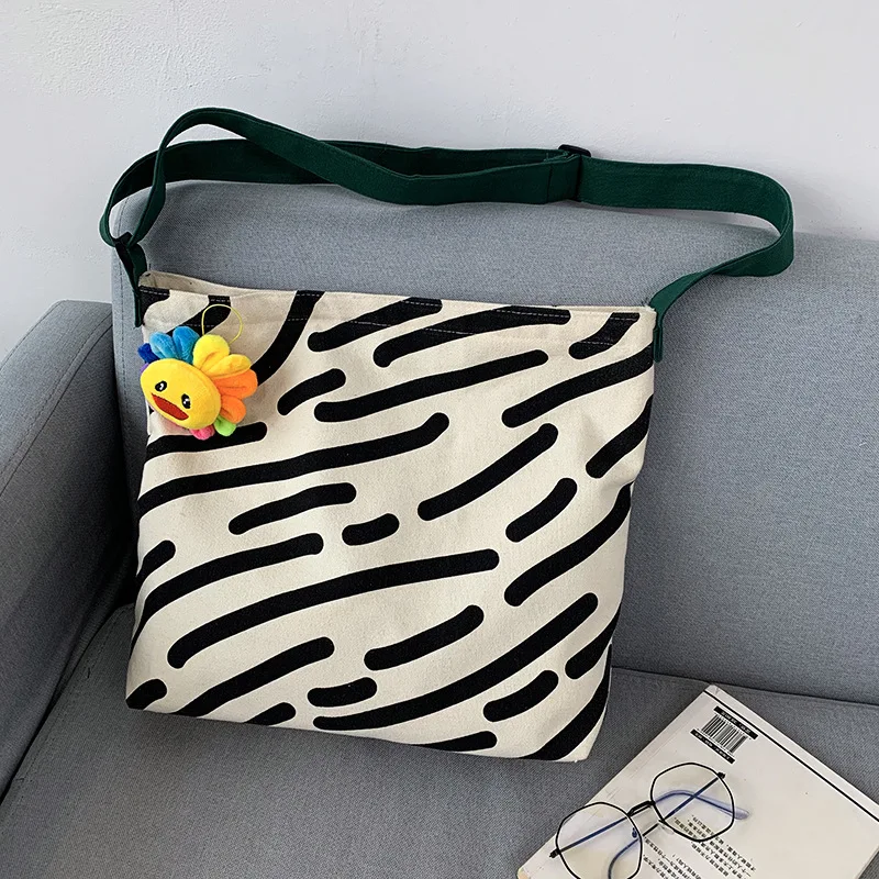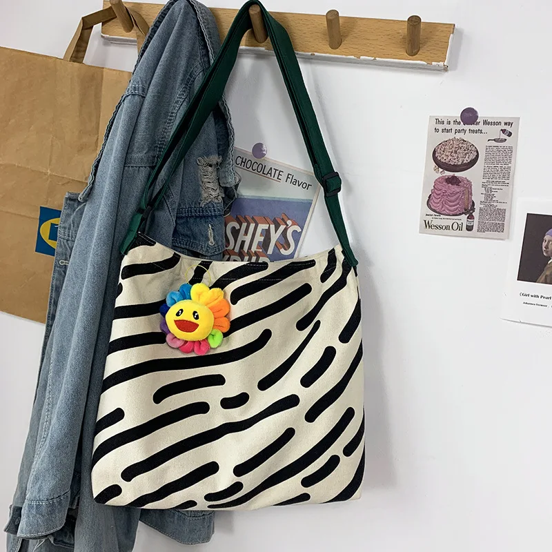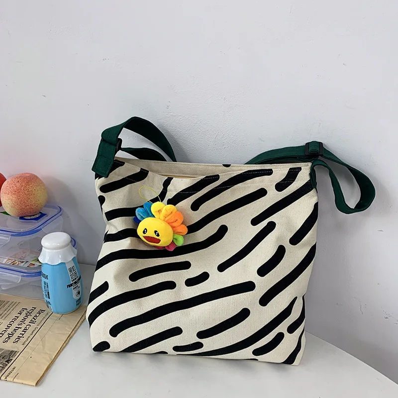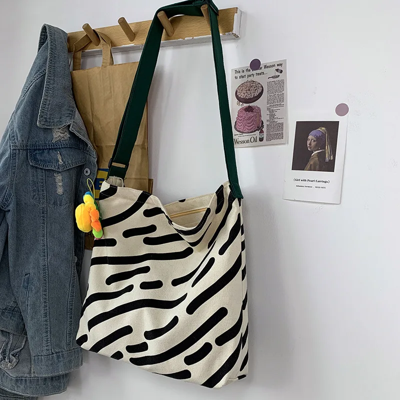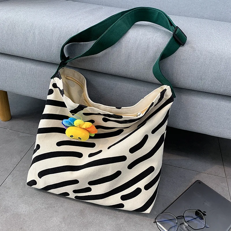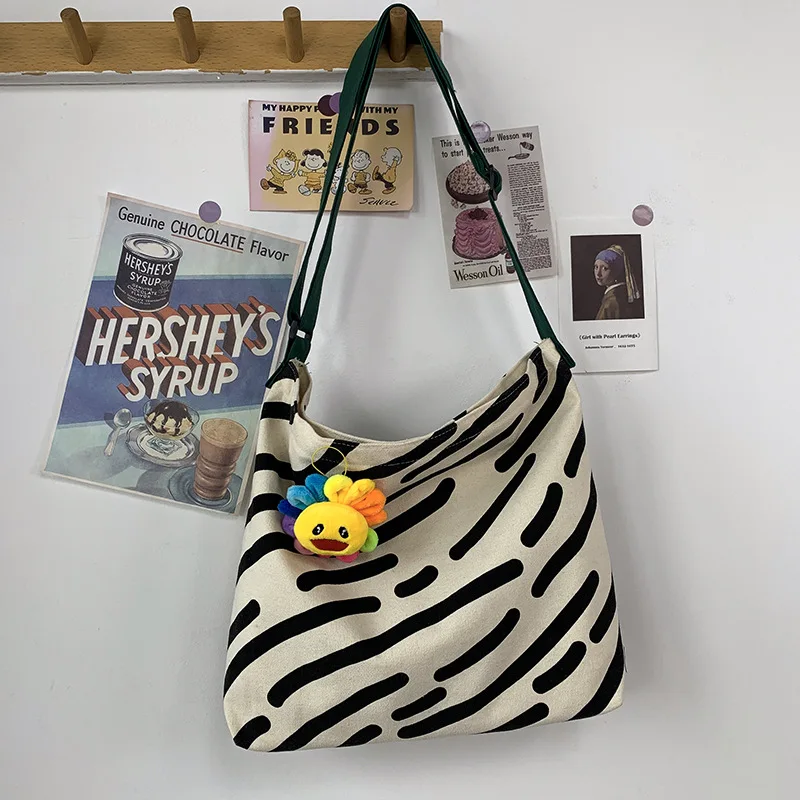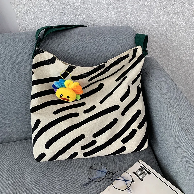 Kylethomasw Women Canvas Shoulder Bag Zebra Stripes Print Ladies Casual Handbag Tote bag Large Capacity Cotton Reusable Shopping Beach Bag