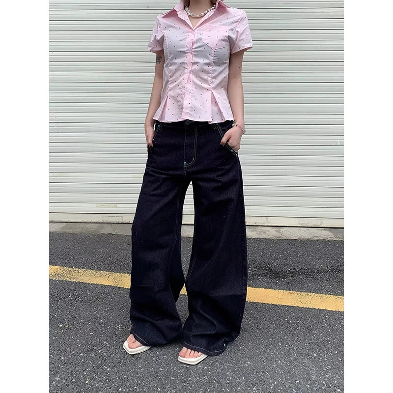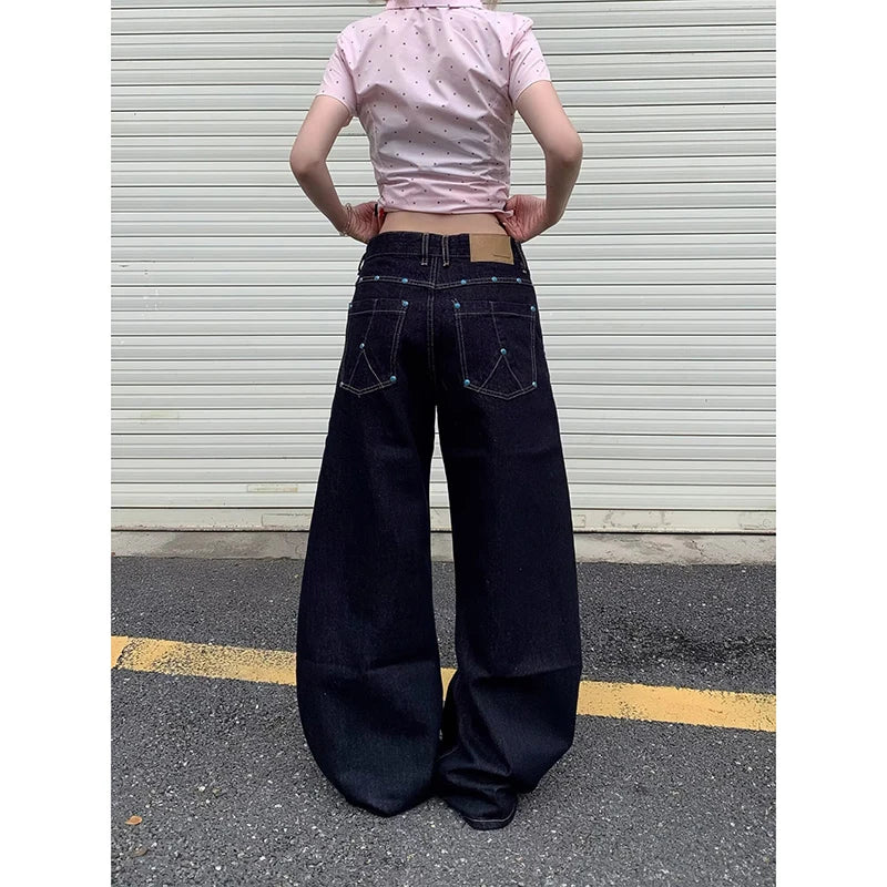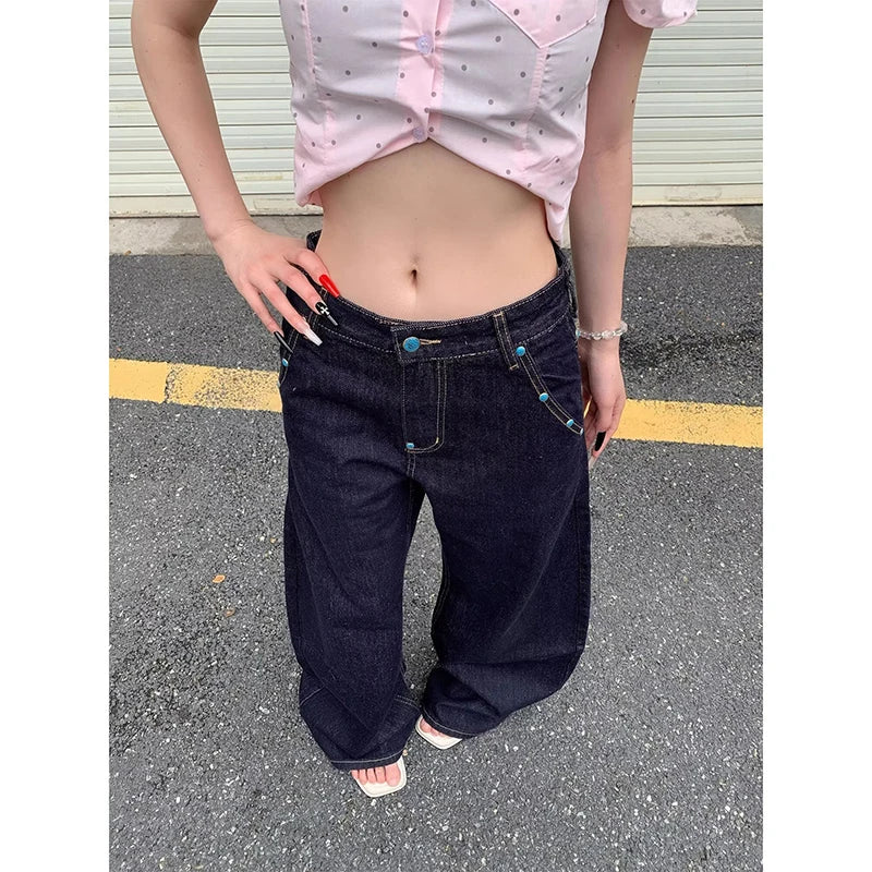 KYLETHOMASW - Blue Women's Jeans Hip-hop Fashion Vintage Streetwear Y2K Wide Leg Straight Jean High Waist Trouser Classic Baggy Denim Pants