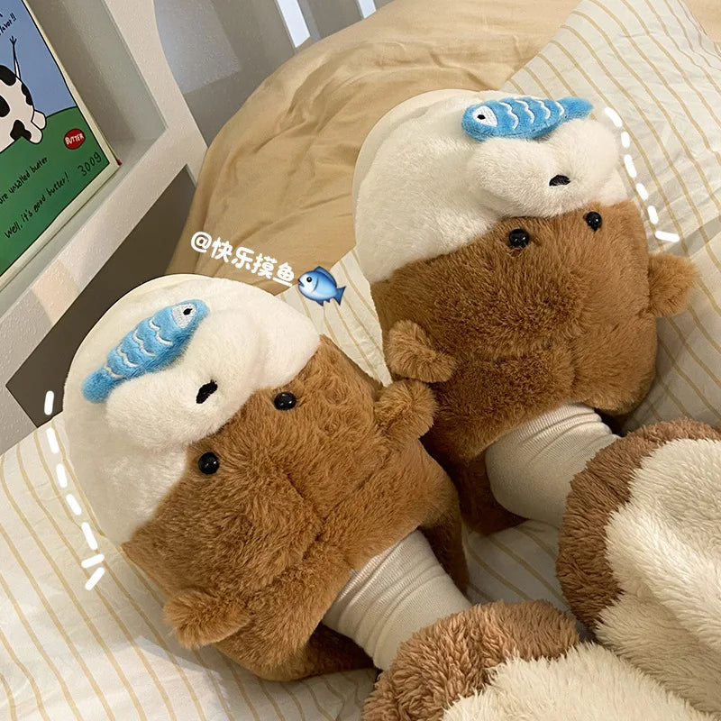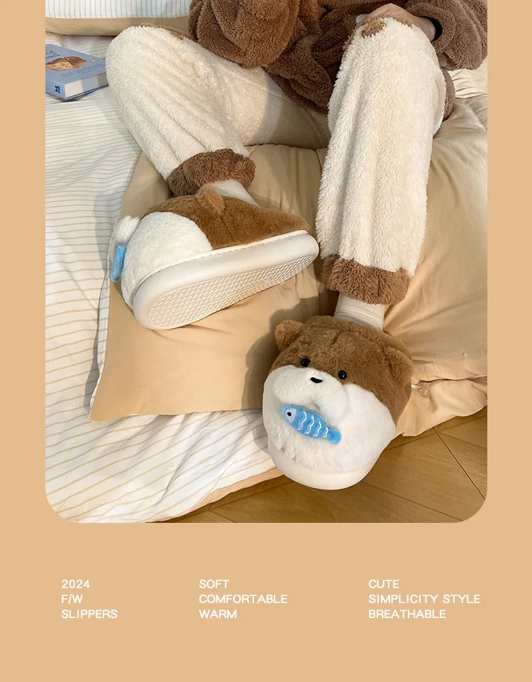 KYLETHOMASW - Cute Cotton Slippers For Women Winter Cartoon Animal Slippers Indoor Home Anti Slip Thick Bottom Warm Velvet Slippers