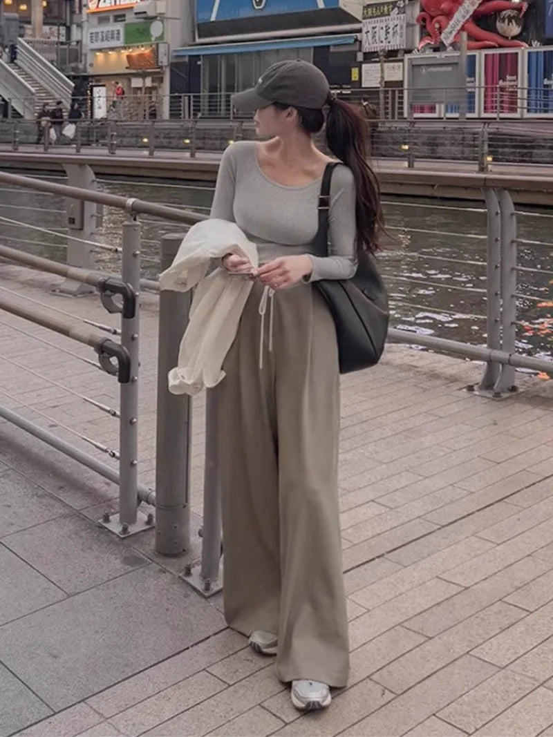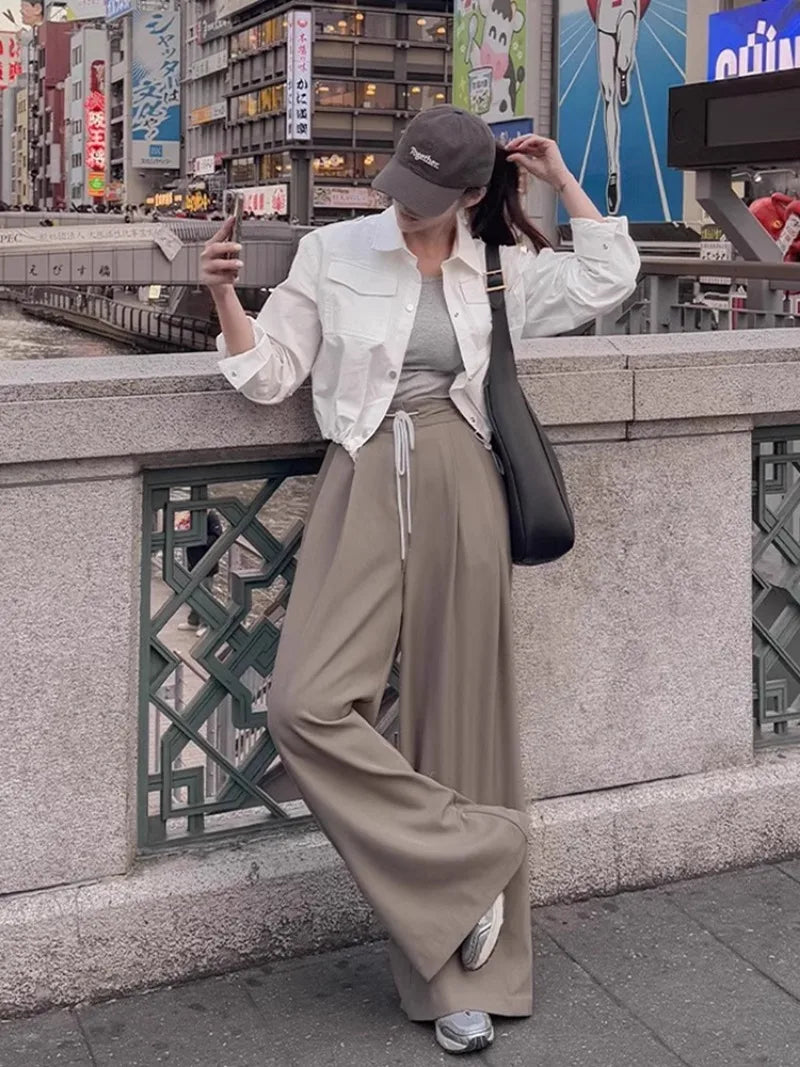 KYLETHOMASW  -  French Niche Lace Slimming Wide Leg Casual 2025 Spring Women New Casual Versatile High Waisted Loose Floor Length Pants