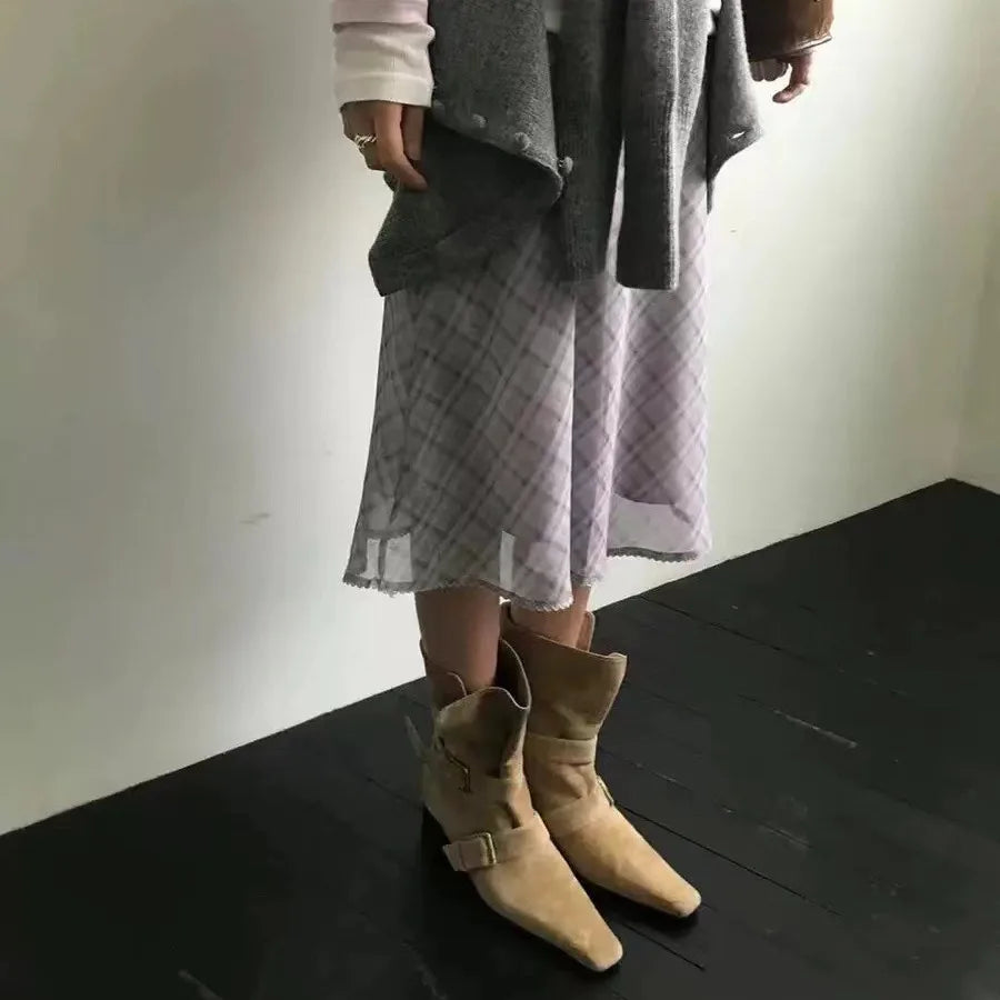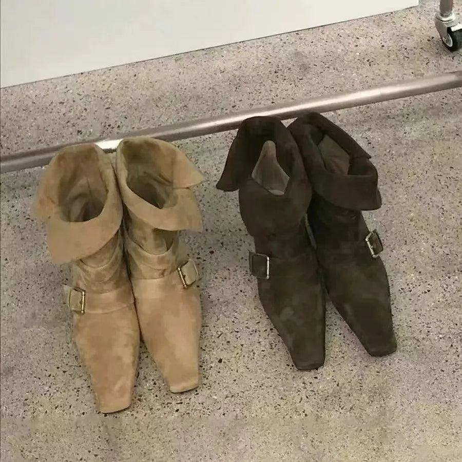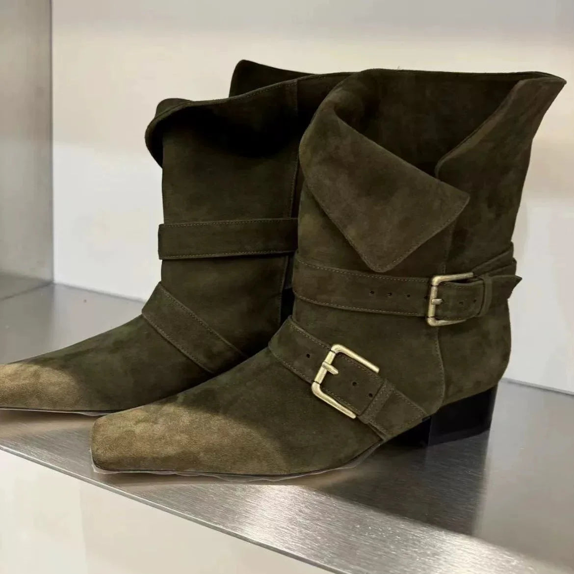 KYLETHOMASW - Genuine Leather Butterfly Knot Wrapped Strap Short Ankle Boots Women Polished Color Distressed Flat Bottomed Bare Shoes Female