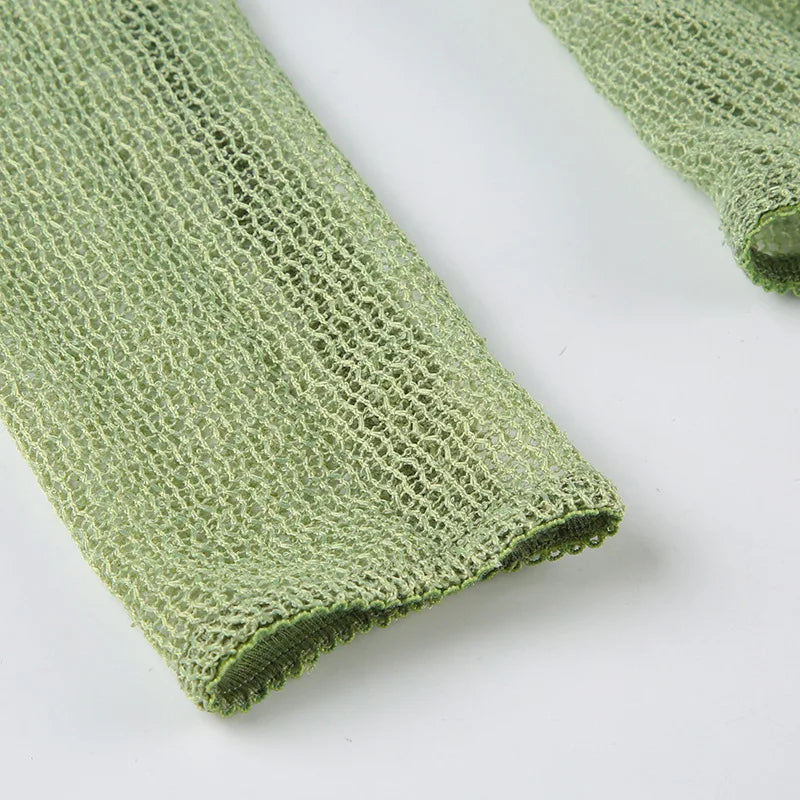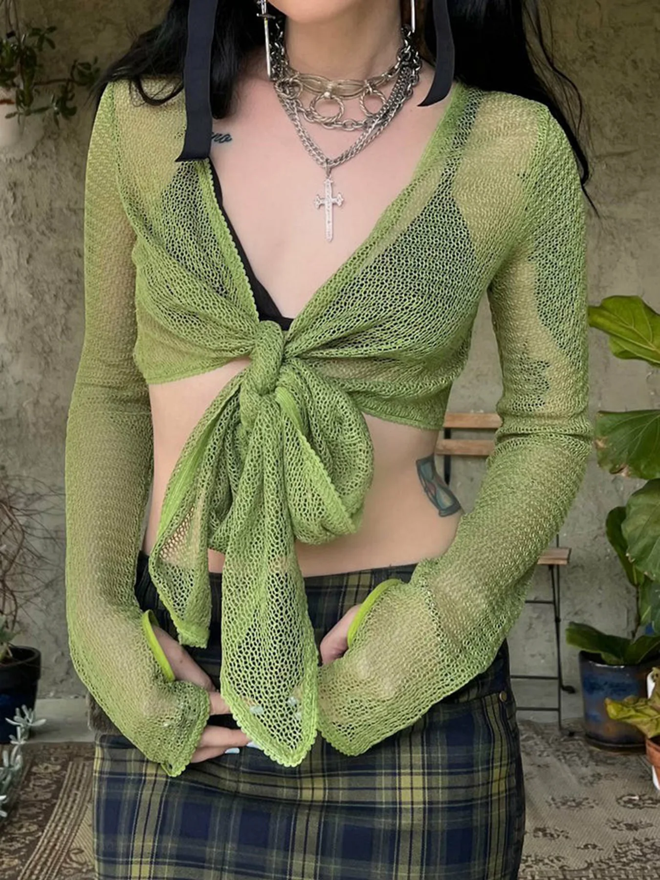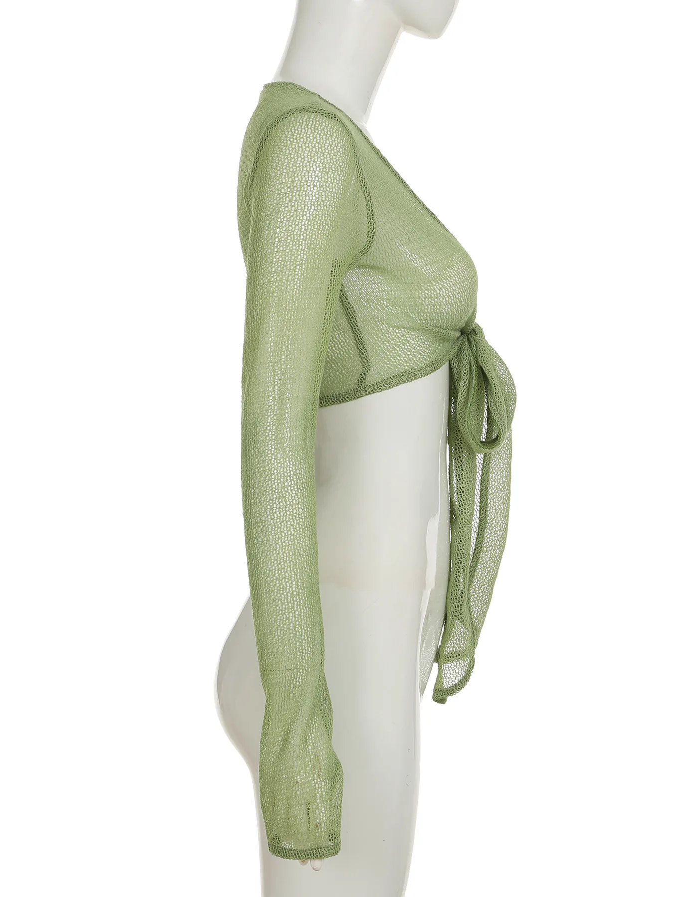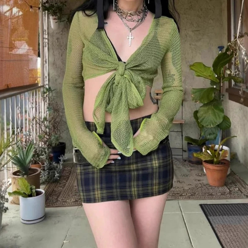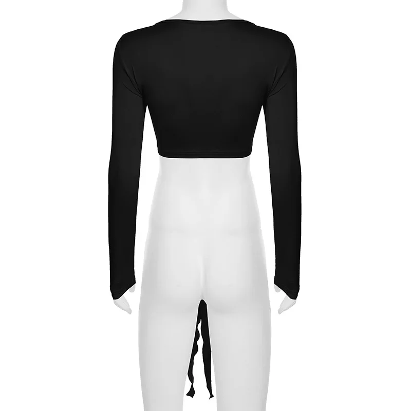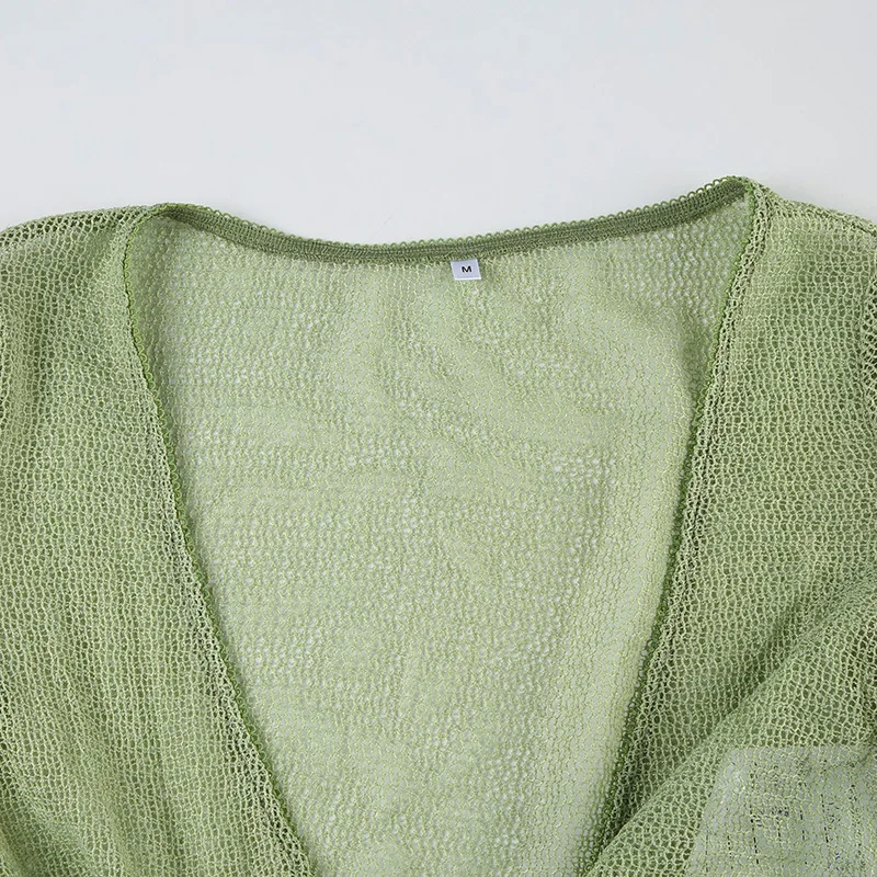 KYLETHOMASW - Ins niche design irregular deep V-knot tied long sleeved cover shirt solid color basic versatile temperament short cardigan