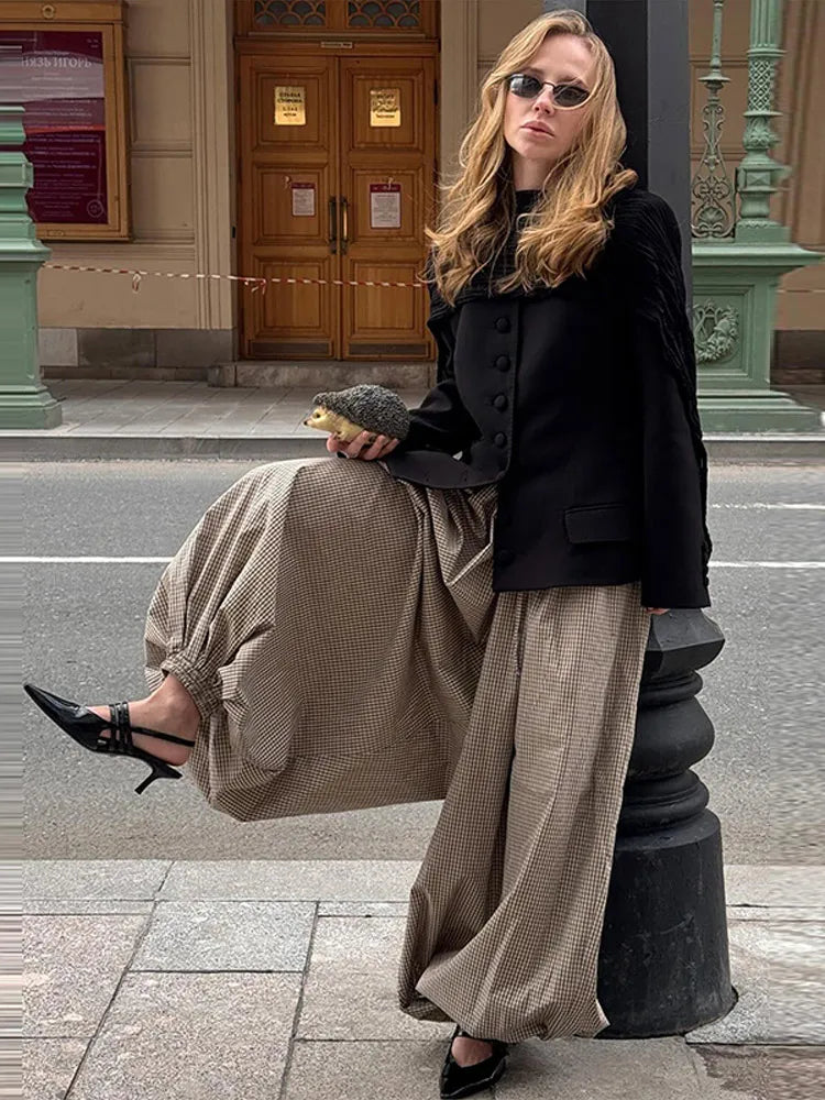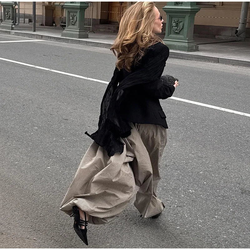 KYLETHOMASW - Plaid Wide Leg Pants Women Oversized Sweatpants Streetwear Baggy Joggers Korean Lazy Fashion High Waist Full Trousers