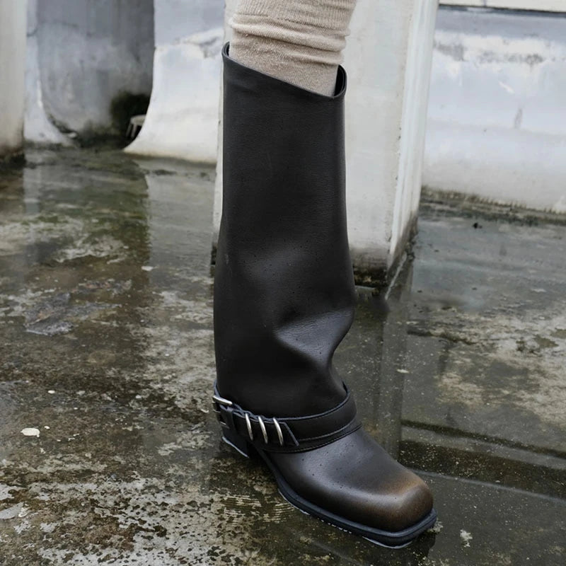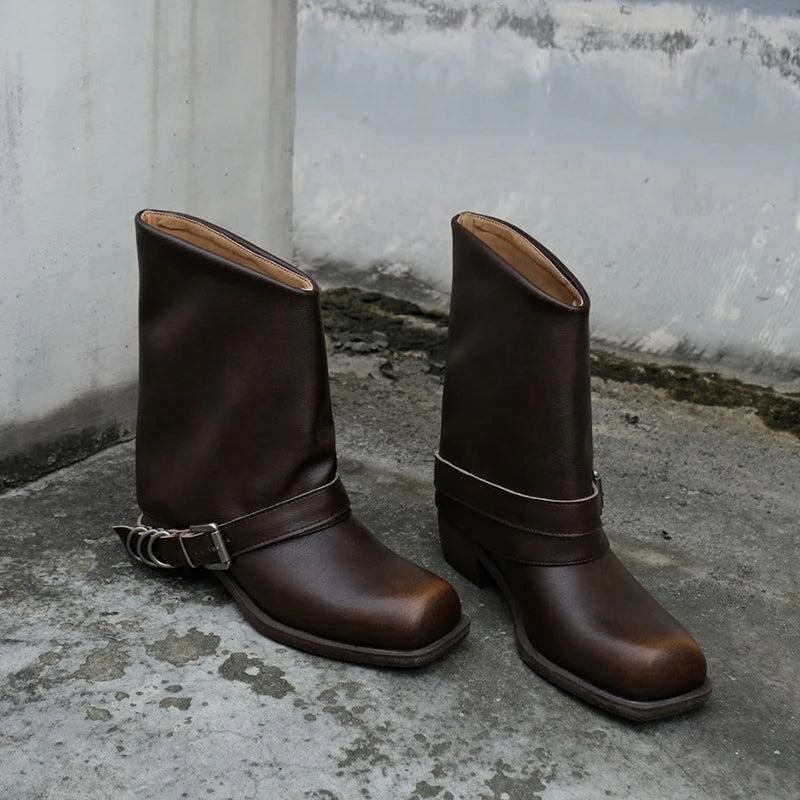 KYLETHOMASW - Retro Metal Decoration Buckle Strap Women Boots Crude Heel Square Toe Ladies Short Boots Street Style Hand-made