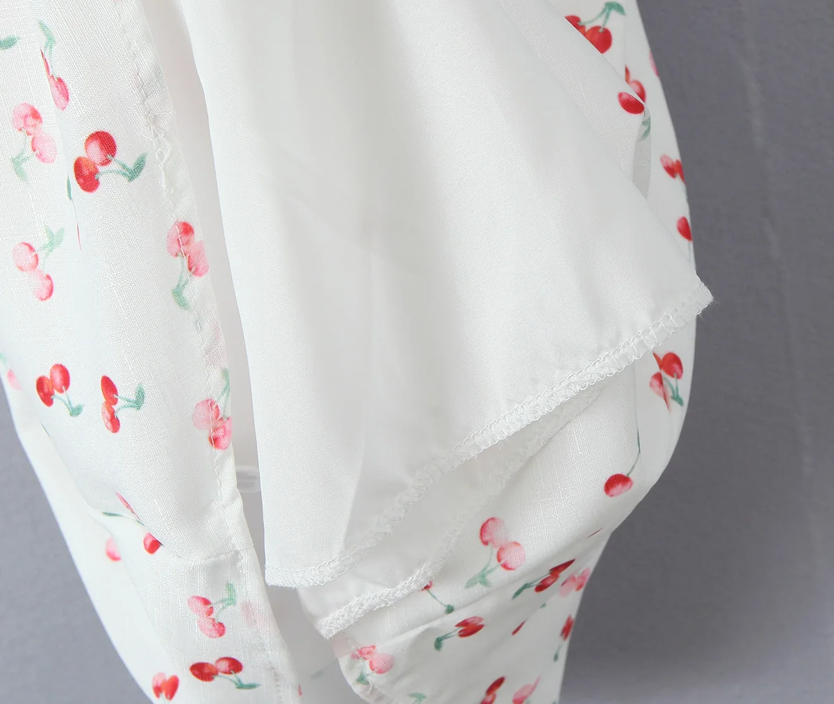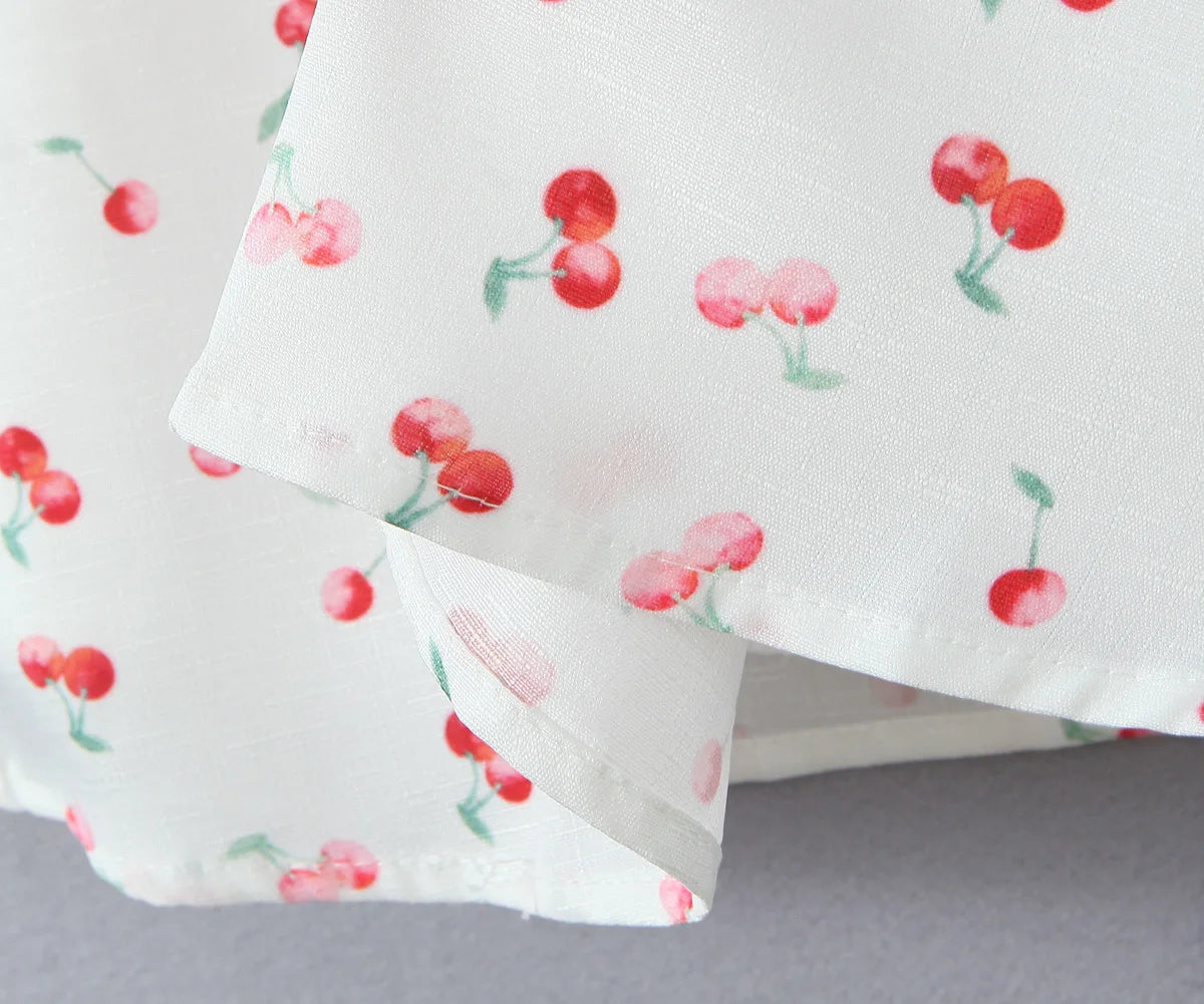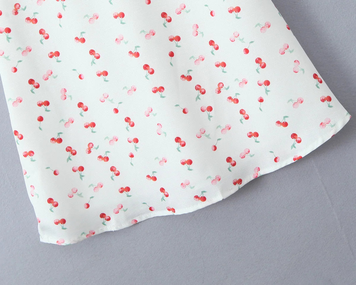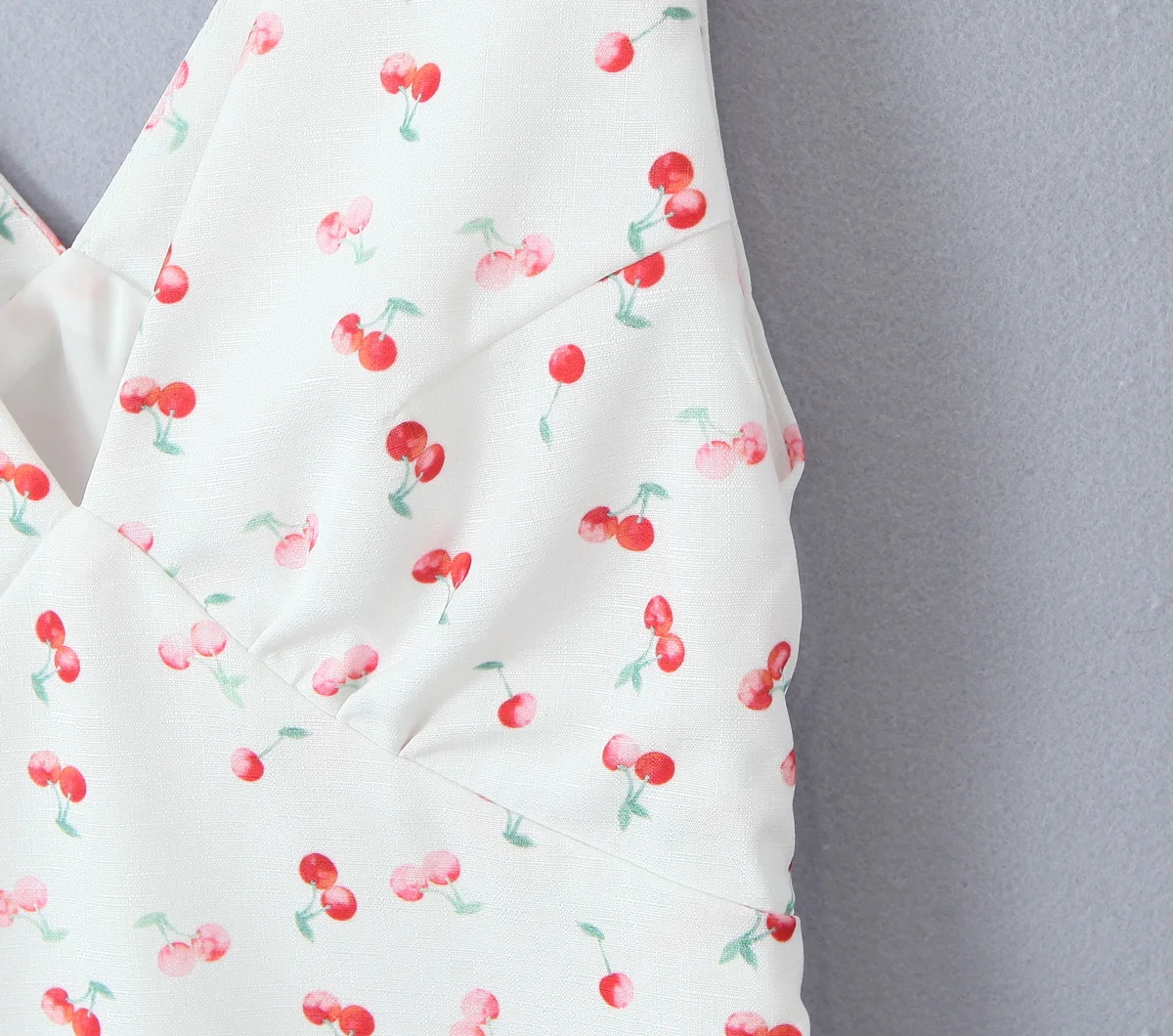 KYLETHOMASW - Sexy White With Red Cherry Print V neck Mini Tank Dress Women Slim Waist A-Lined Sleeveless Short Robe Holiday