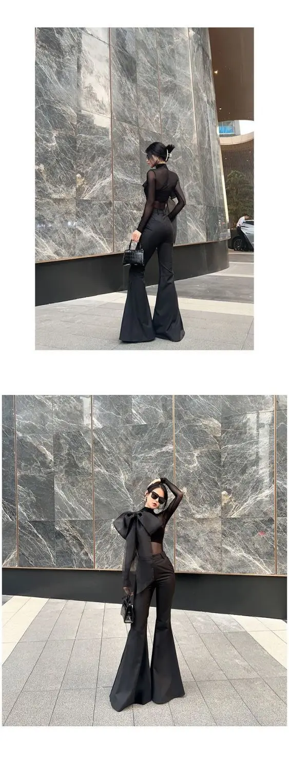 KYLETHOMASW - Spring New Elegant Women's Bell-Bottom Trousers Fashion Y2k High Street Pants Office Lady Sexy High Waist Slim Flared Pants 509P
