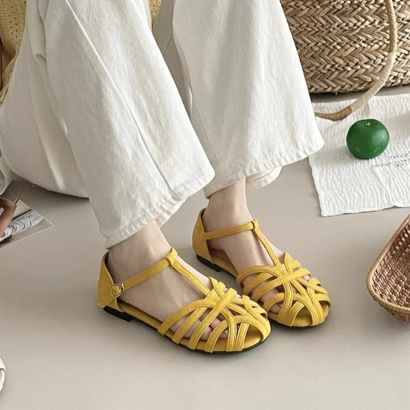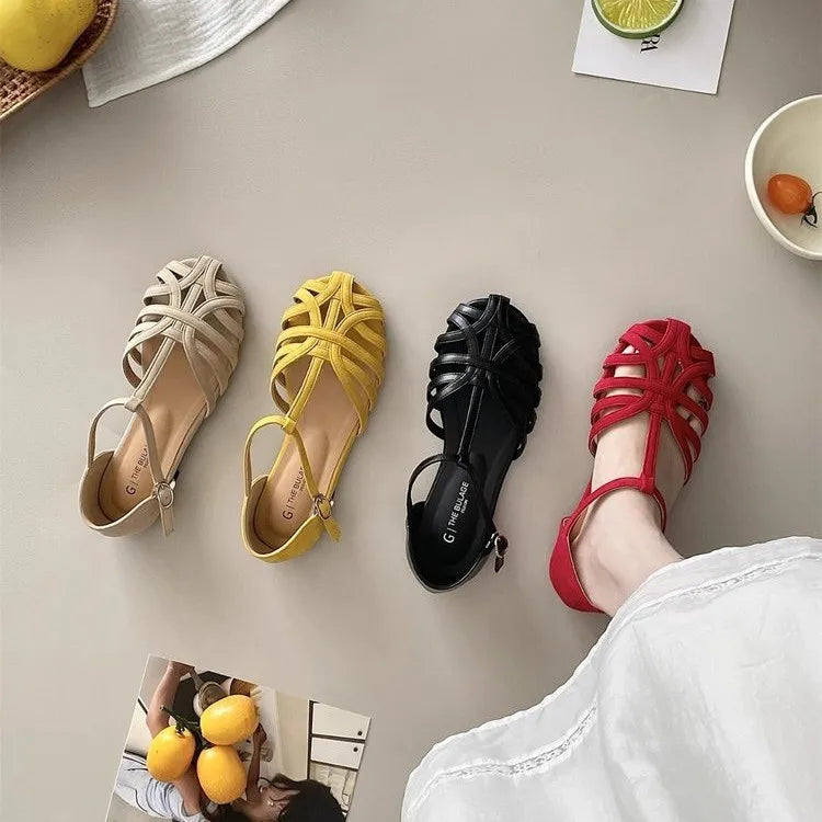 KYLETHOMASW - Summer Fashion Weaving Hollow Flat Bottom Baotou Comfortable Soft Bottom Sandals for Women's Casual Versatile Sandals