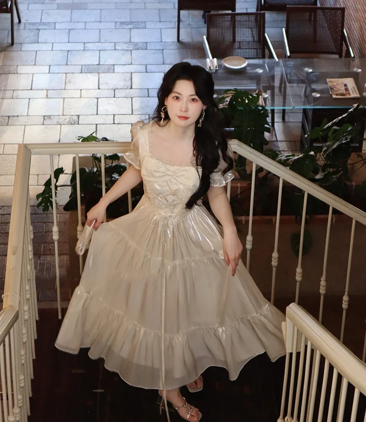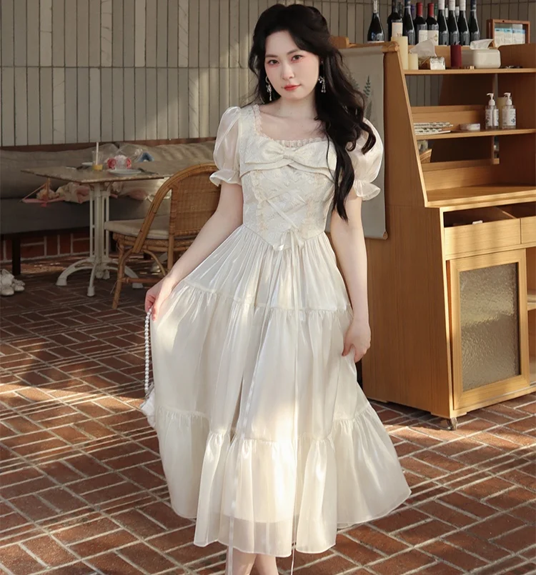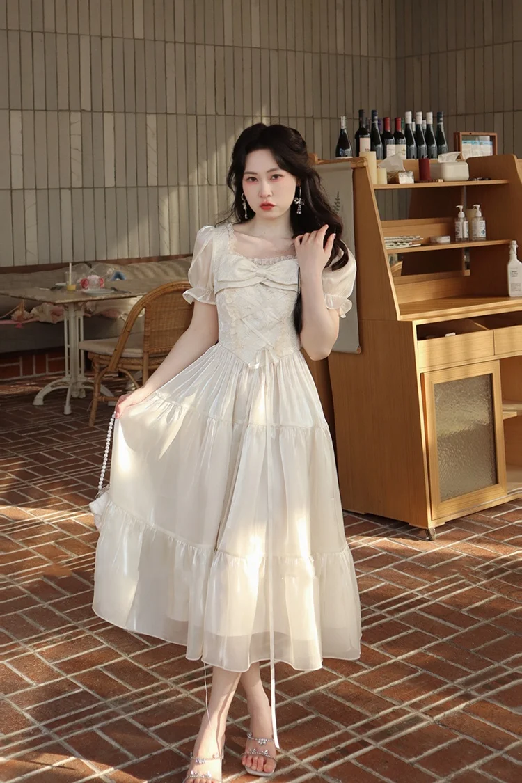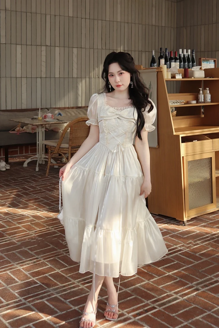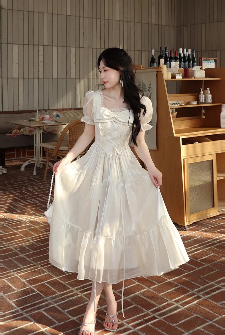 KYLETHOMASW - Sweet Party Dress for Women French Elegant Square Collar Short Sleeves Princess Evening Dresses Summer Spring Casual Vestidos