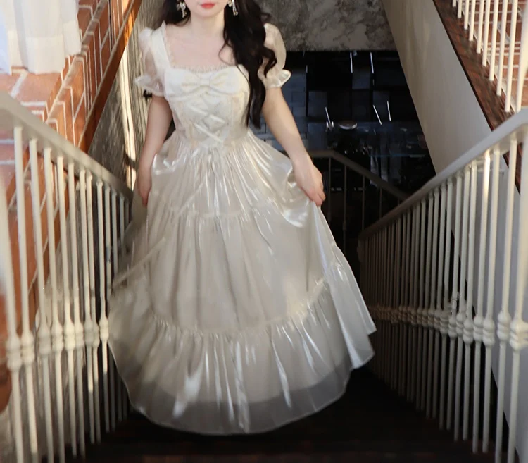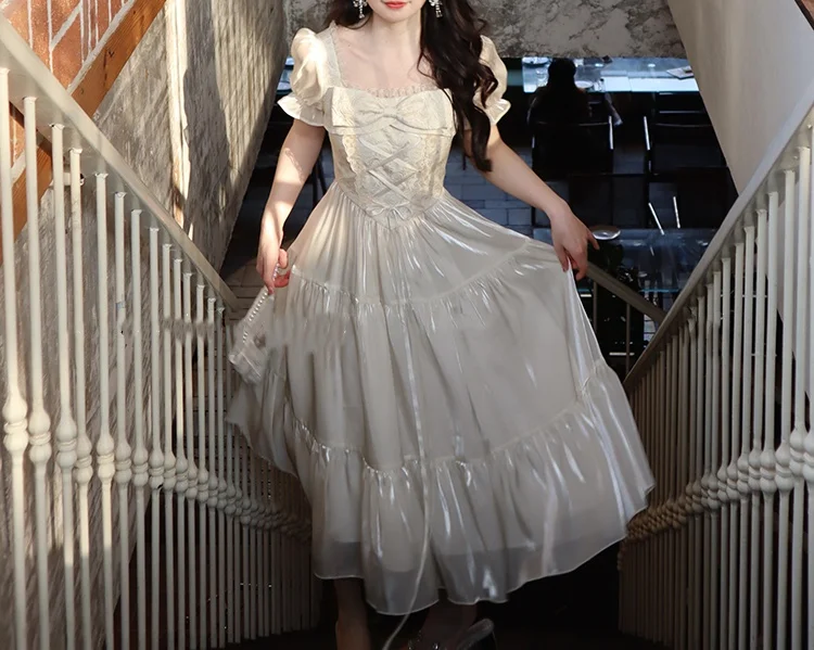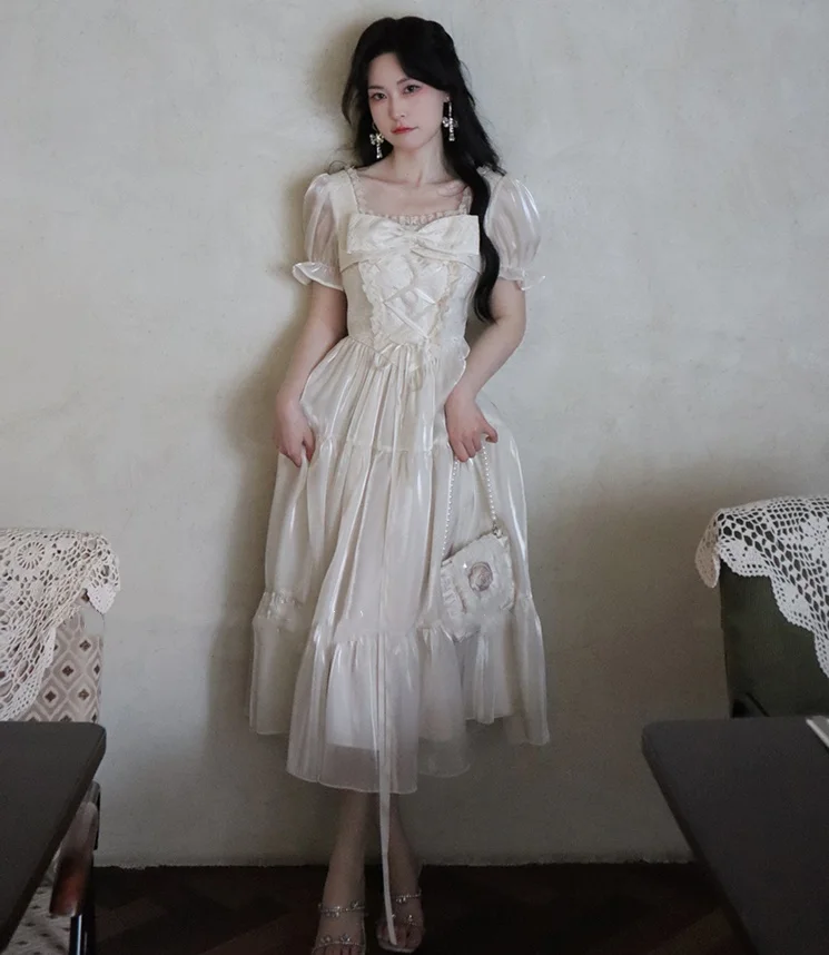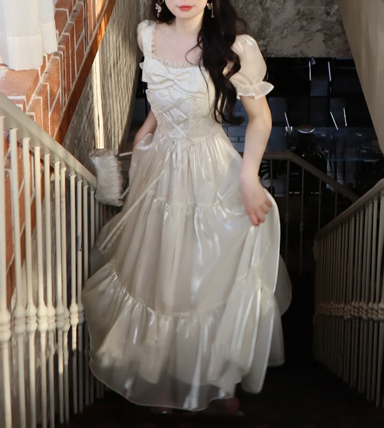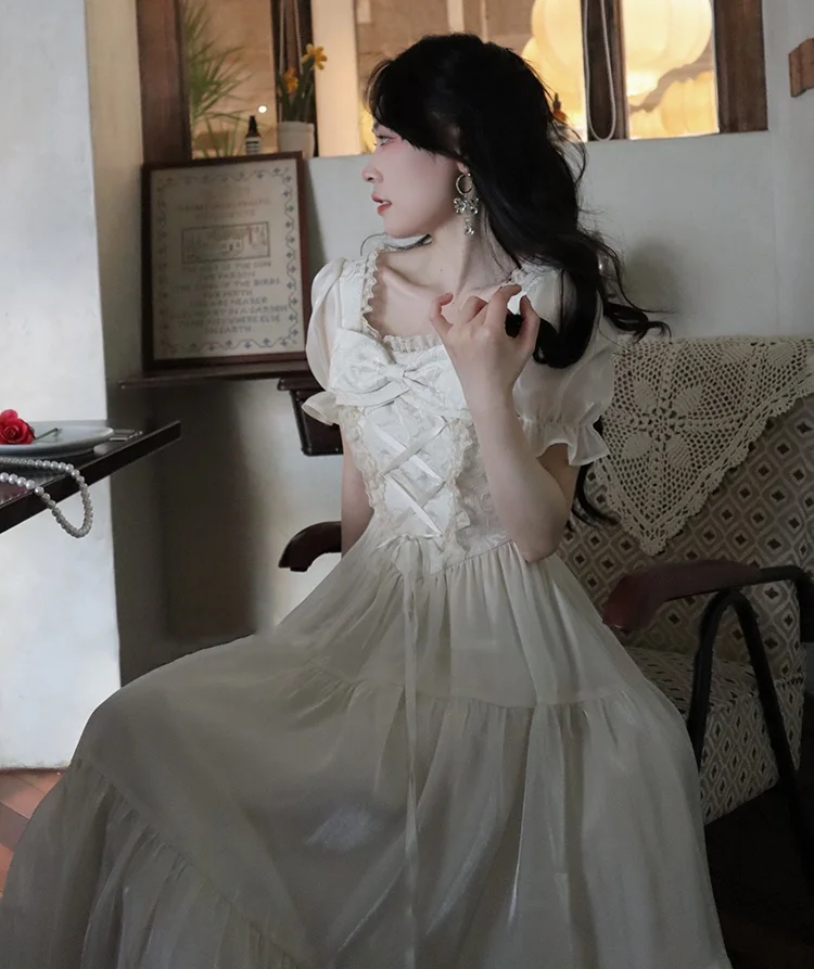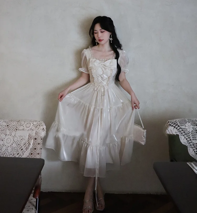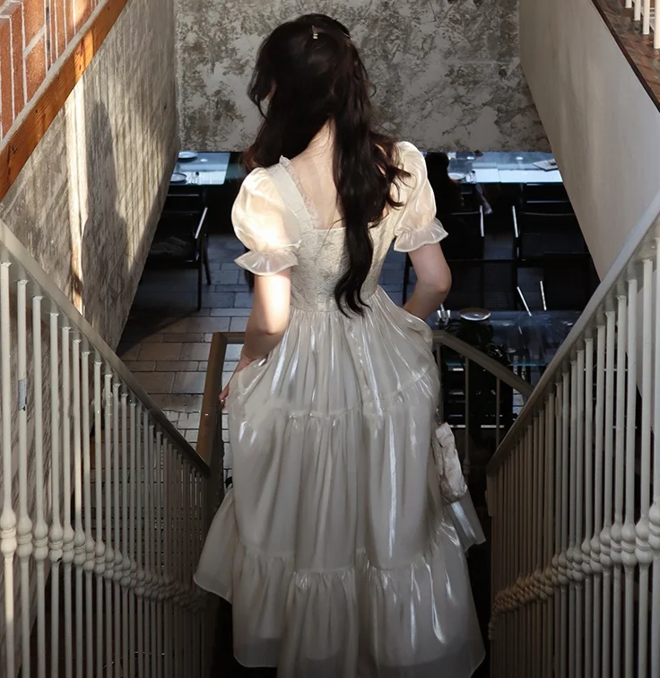 KYLETHOMASW - Sweet Party Dress for Women French Elegant Square Collar Short Sleeves Princess Evening Dresses Summer Spring Casual Vestidos